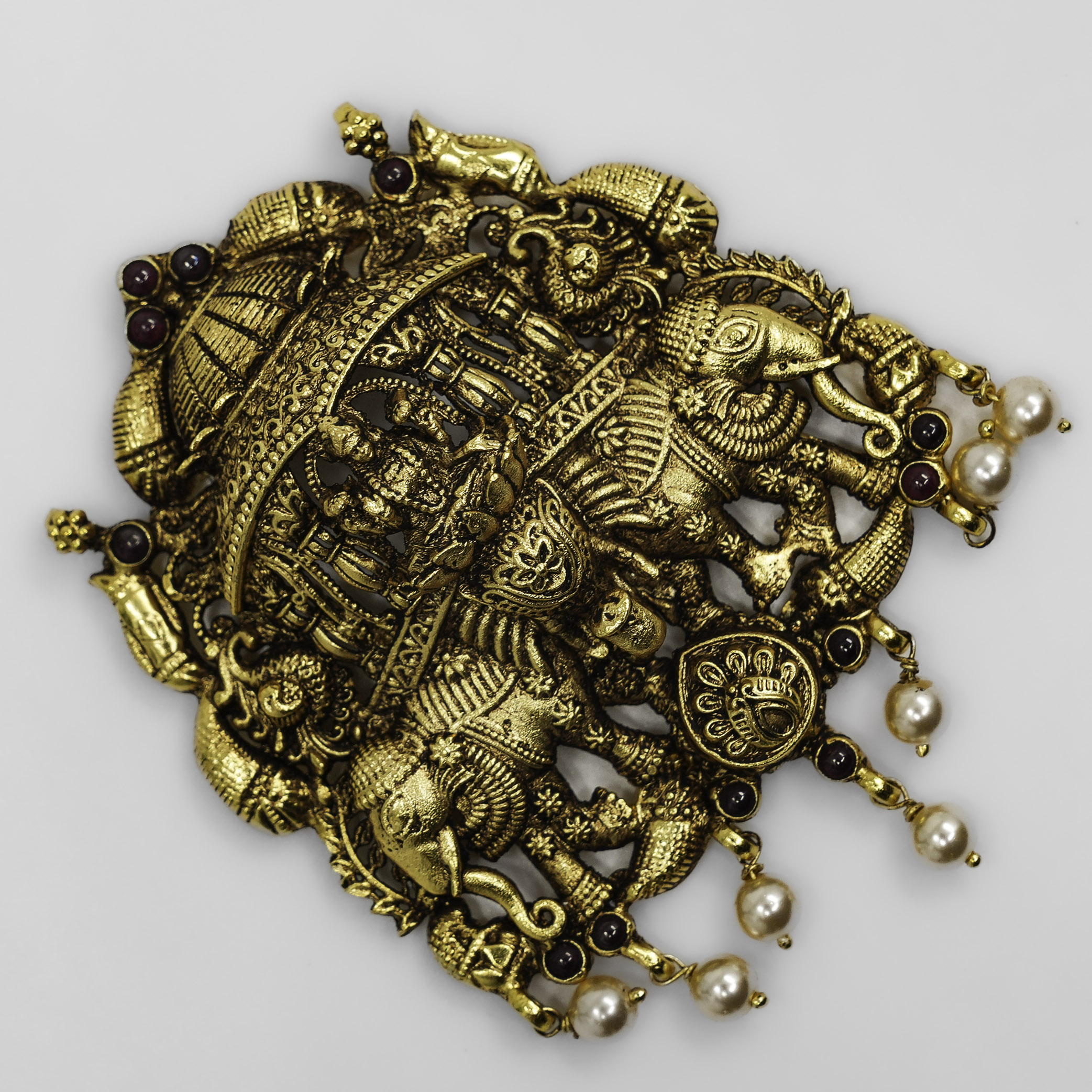 Intricate Gold Polished Silver Ganesha pendant, a symbol of wisdom, perfect for spiritual occasions. Buy Gold Polished Silver Ganesha Pendant from Raag Silver Jewellery in Hyderabad.