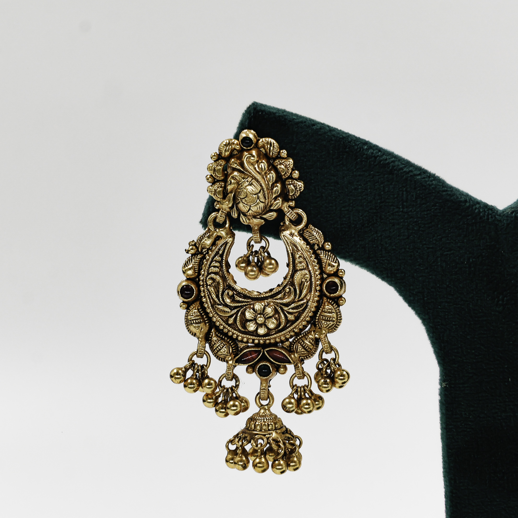 Antique Gold Polished Silver jhumka earrings, perfect for traditional occasions. Elevate your ethnic look. Buy Gold Polished Silver Jhumka Earrings from Raag Silver Jewellery in Hyderabad.