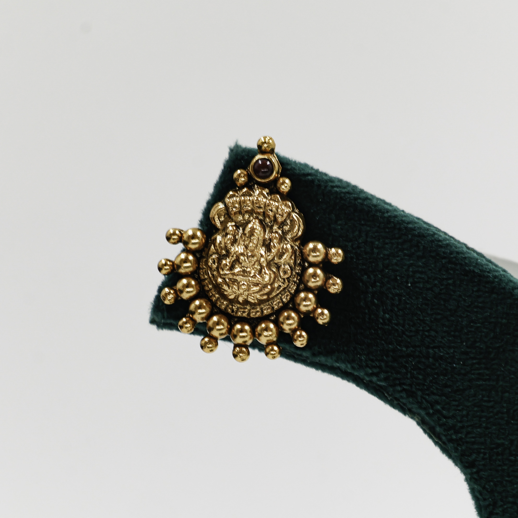 Elegant Gold Polished Silver Lakshmi earrings featuring intricate detailing, perfect for traditional occasions. Buy Gold Polished Silver Lakshmi Earrings from Raag Silver Jewellery in Hyderabad.