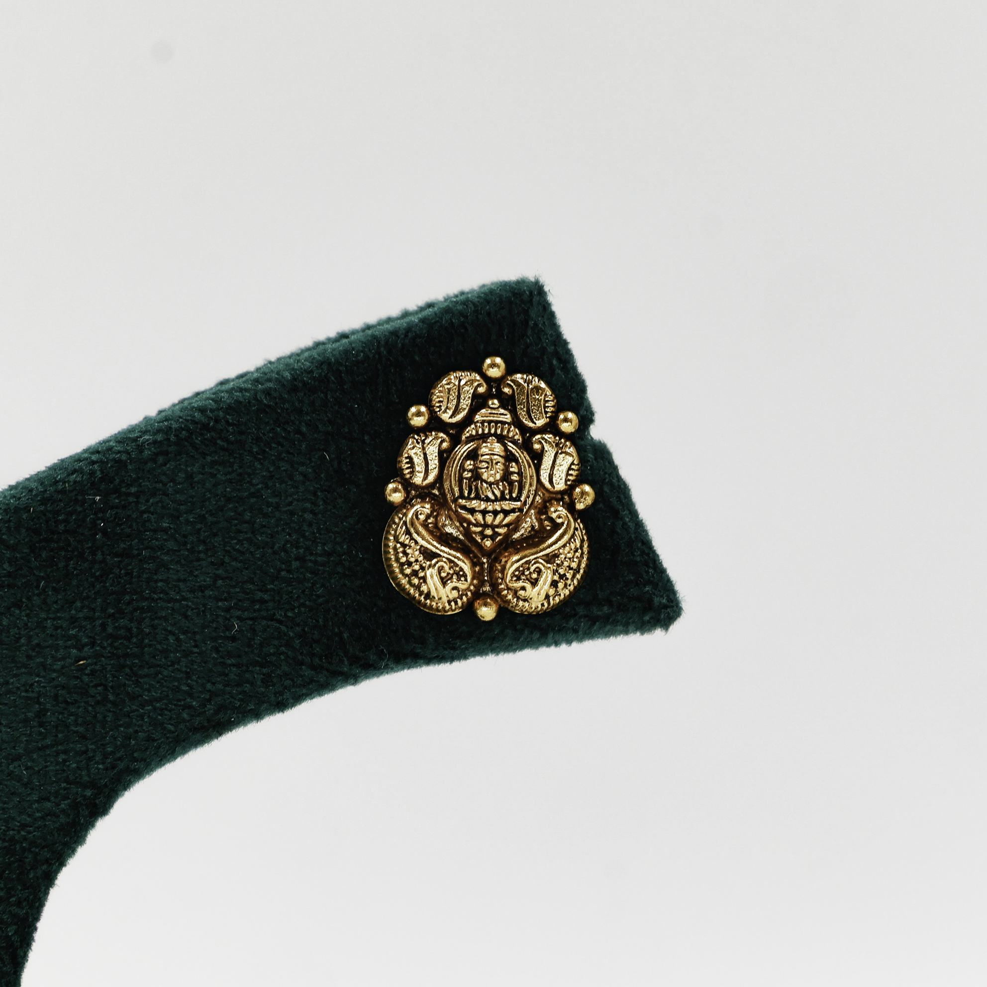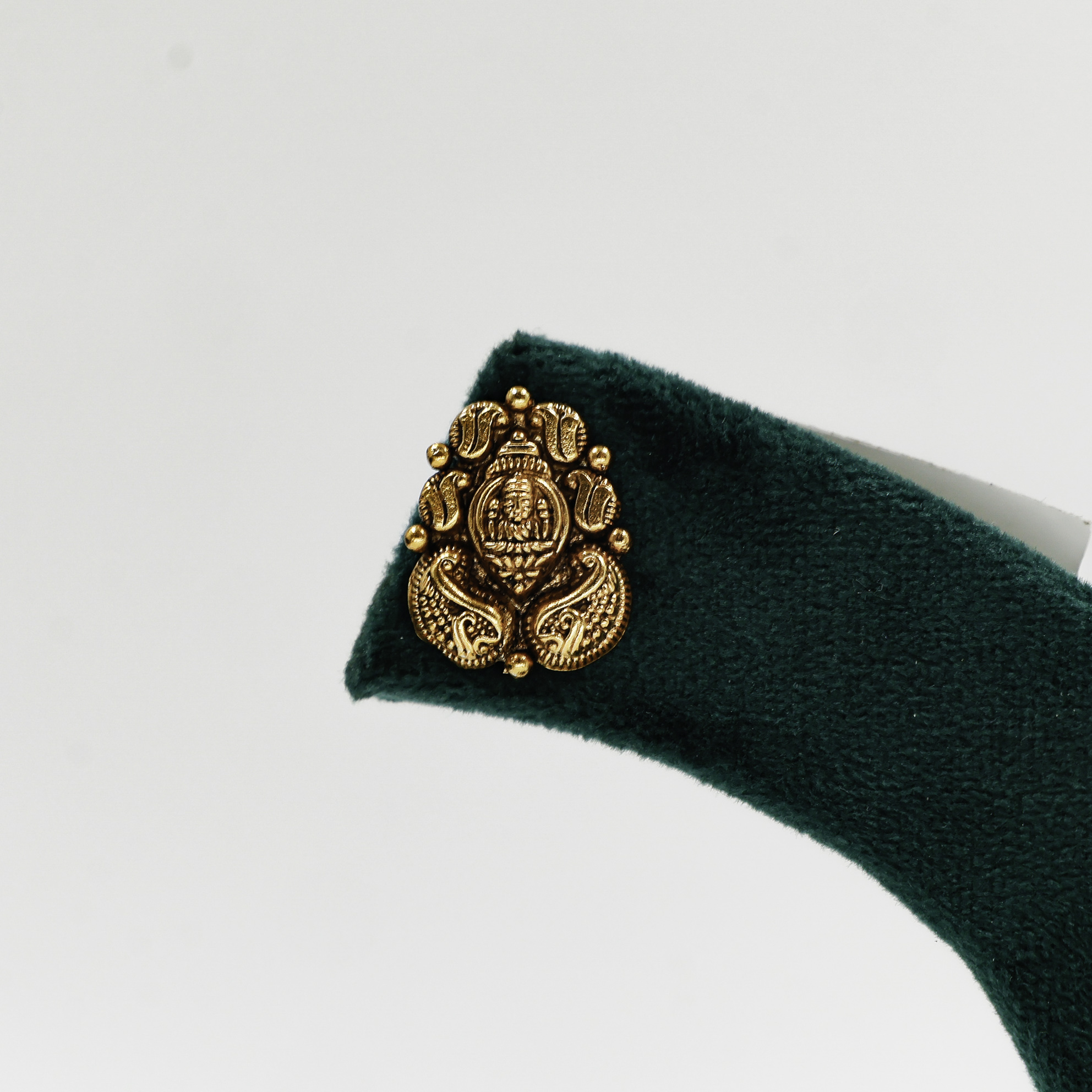 Classic Gold Polished Silver Lakshmi earrings with intricate detailing, perfect for traditional occasions. Buy Gold Polished Silver Lakshmi Earrings from Raag Silver Jewellery in Hyderabad.
