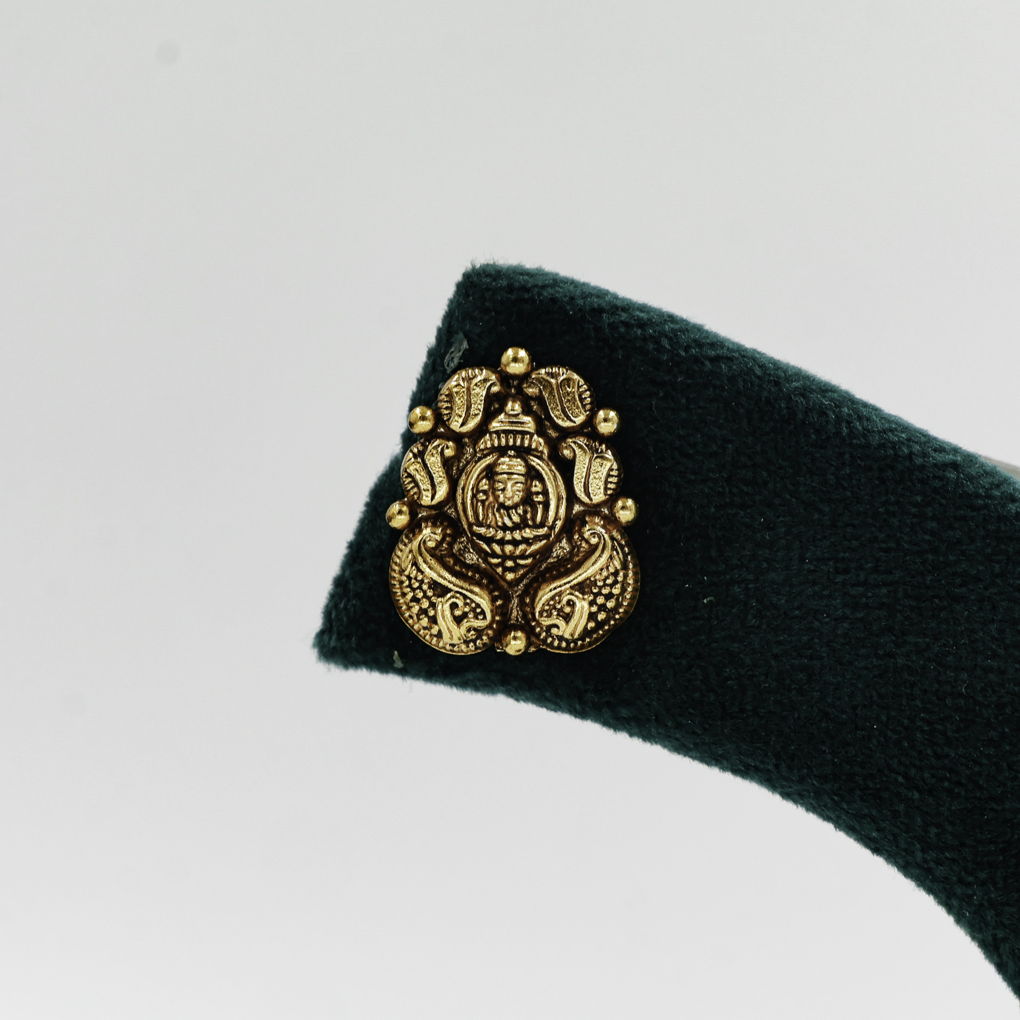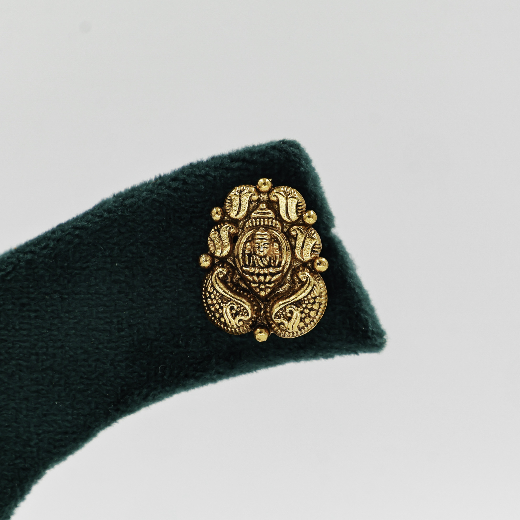 Elegant Gold Polished Silver Lakshmi earrings, embodying tradition and grace. Perfect for festive occasions. Buy Gold Polished Silver Lakshmi Earrings from Raag Silver Jewellery in Hyderabad.