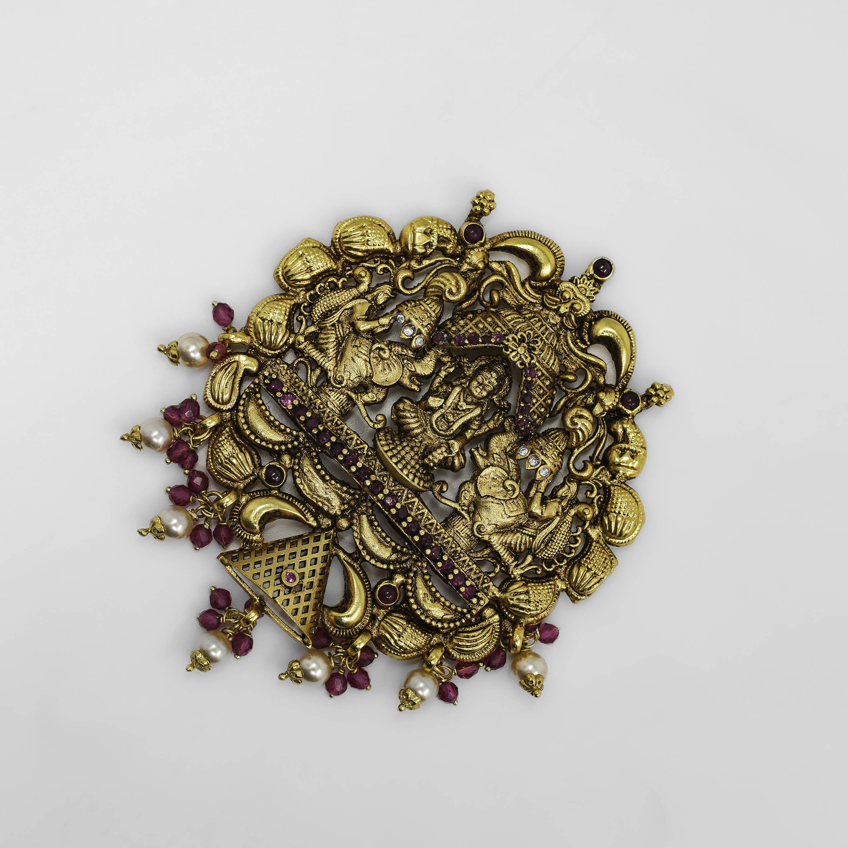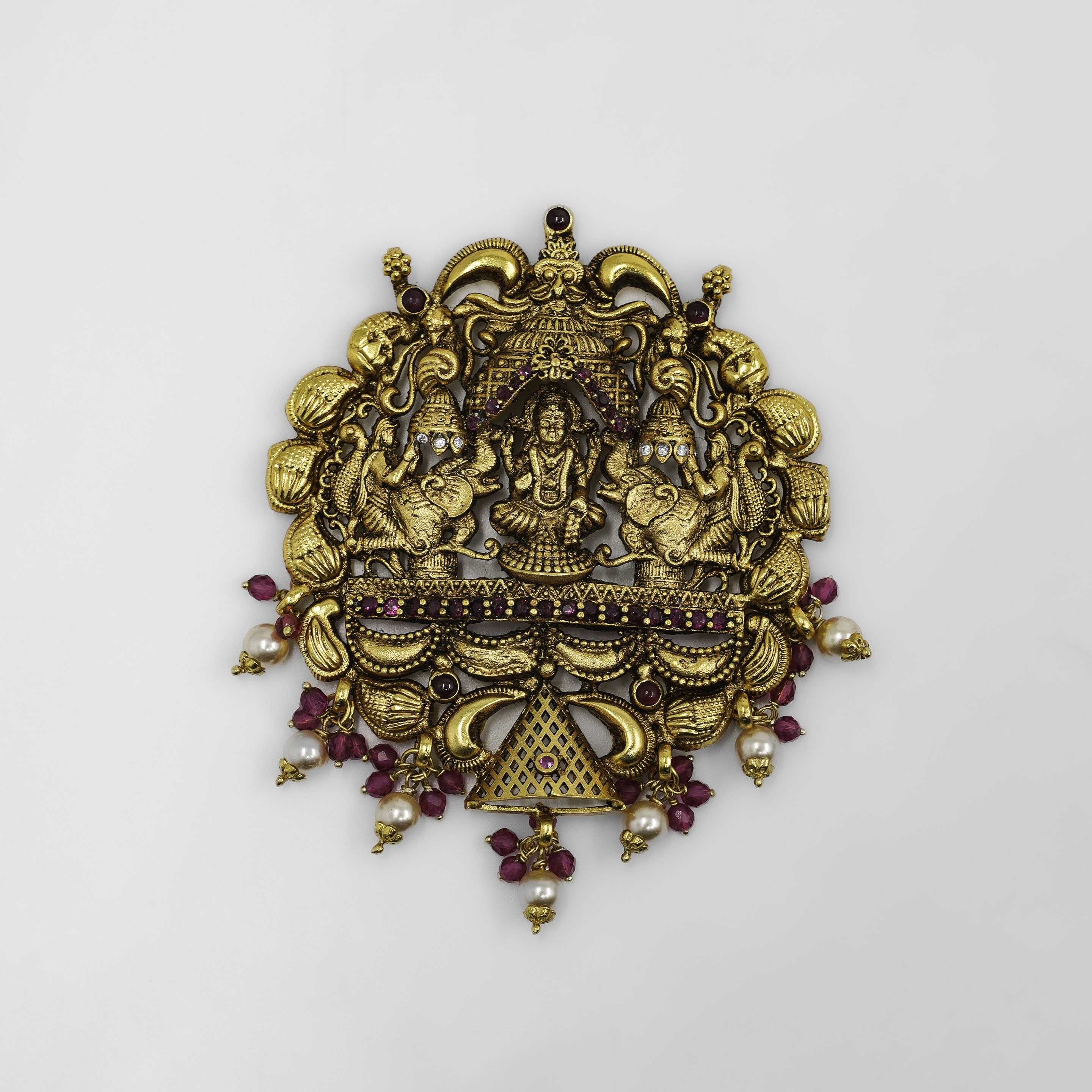 Ornate Gold Polished Silver Lakshmi pendant, perfect for traditional occasions and cultural events. Buy Gold Polished Silver Lakshmi Pendant from Raag Silver Jewellery in Hyderabad.