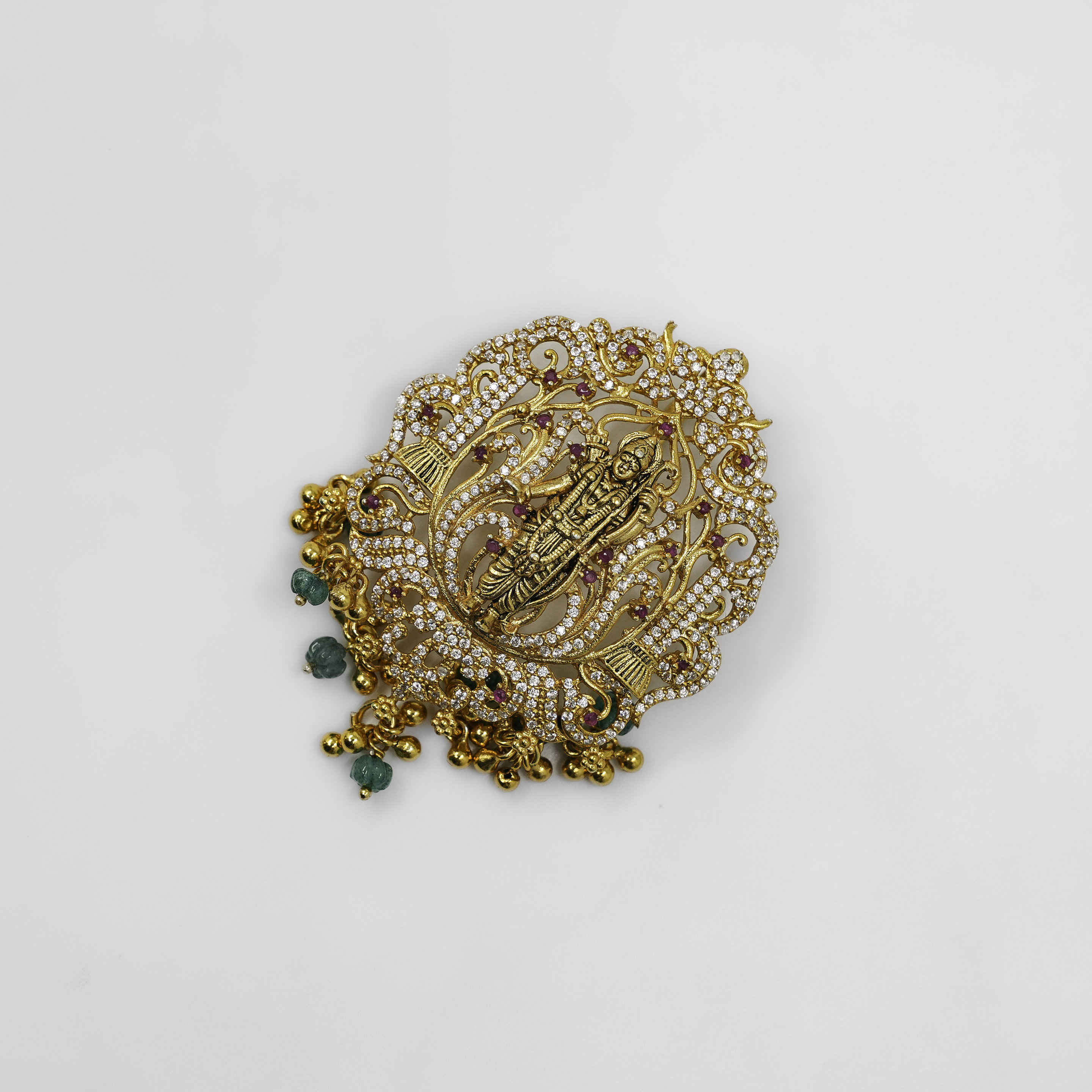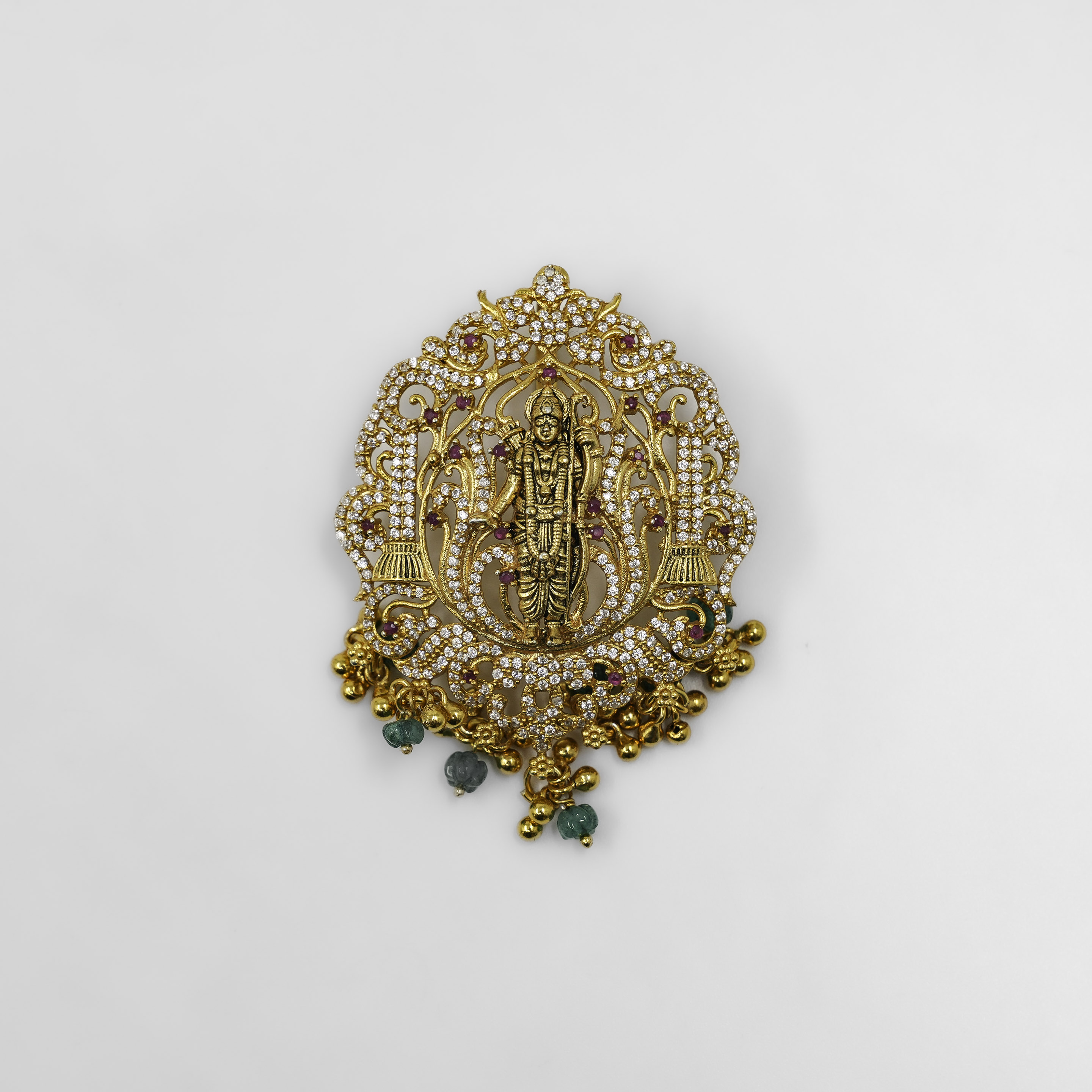 Elegant Gold Polished Silver Laxmi pendant with intricate detailing, perfect for festive occasions. Buy Gold Polished Silver Laxmi Pendant from Raag Silver Jewellery in Hyderabad.
