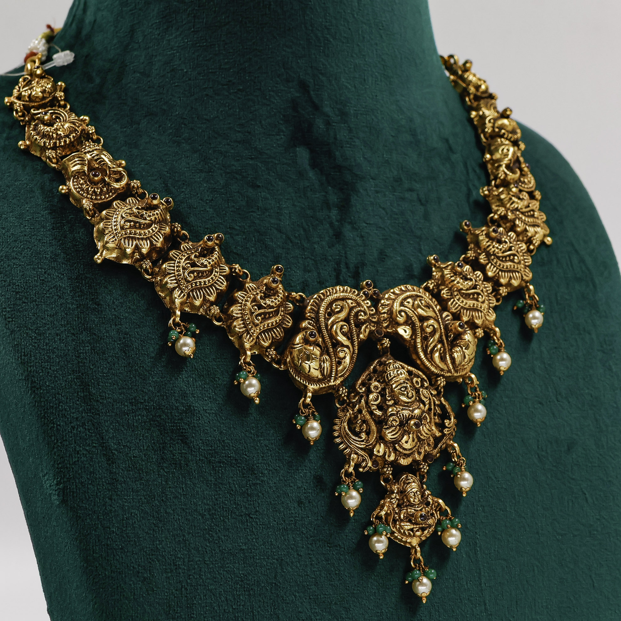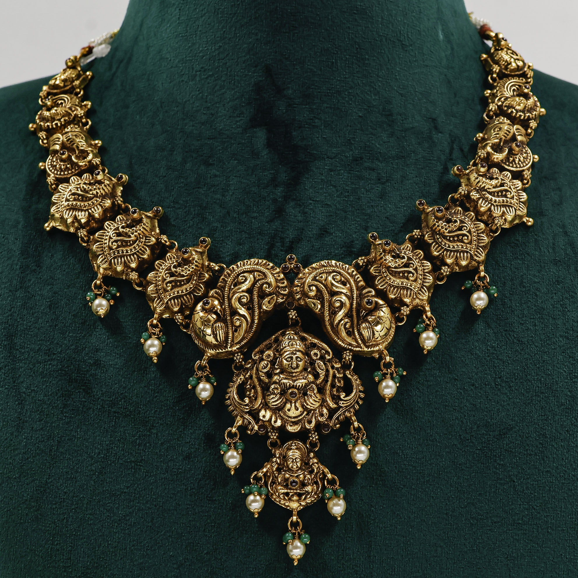Intricate Gold Polished Silver peacock necklace, a statement piece reflecting Indian heritage. Perfect for weddings. Buy Gold Polished Silver peacock necklace from Raag Silver Jewellery in Hyderabad.