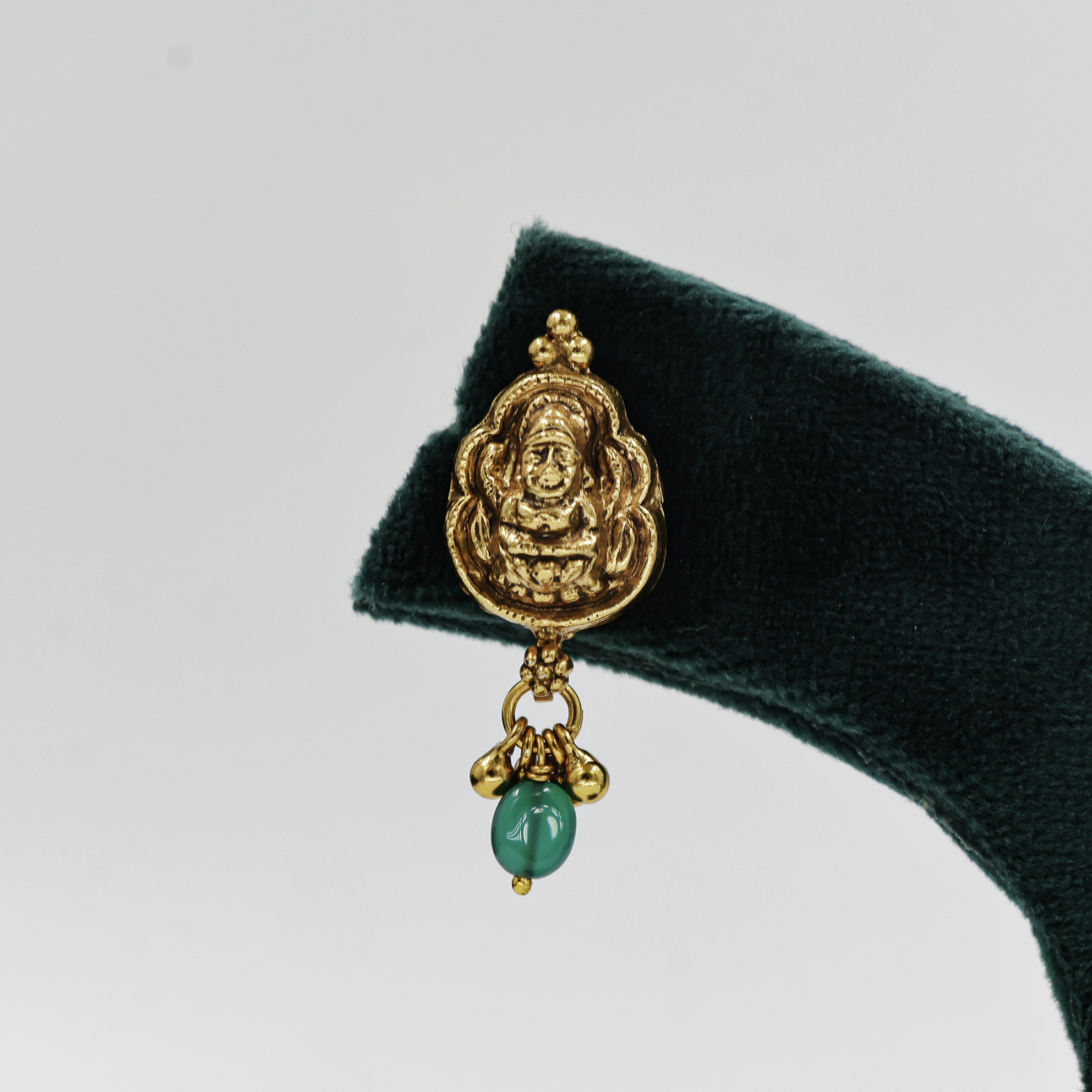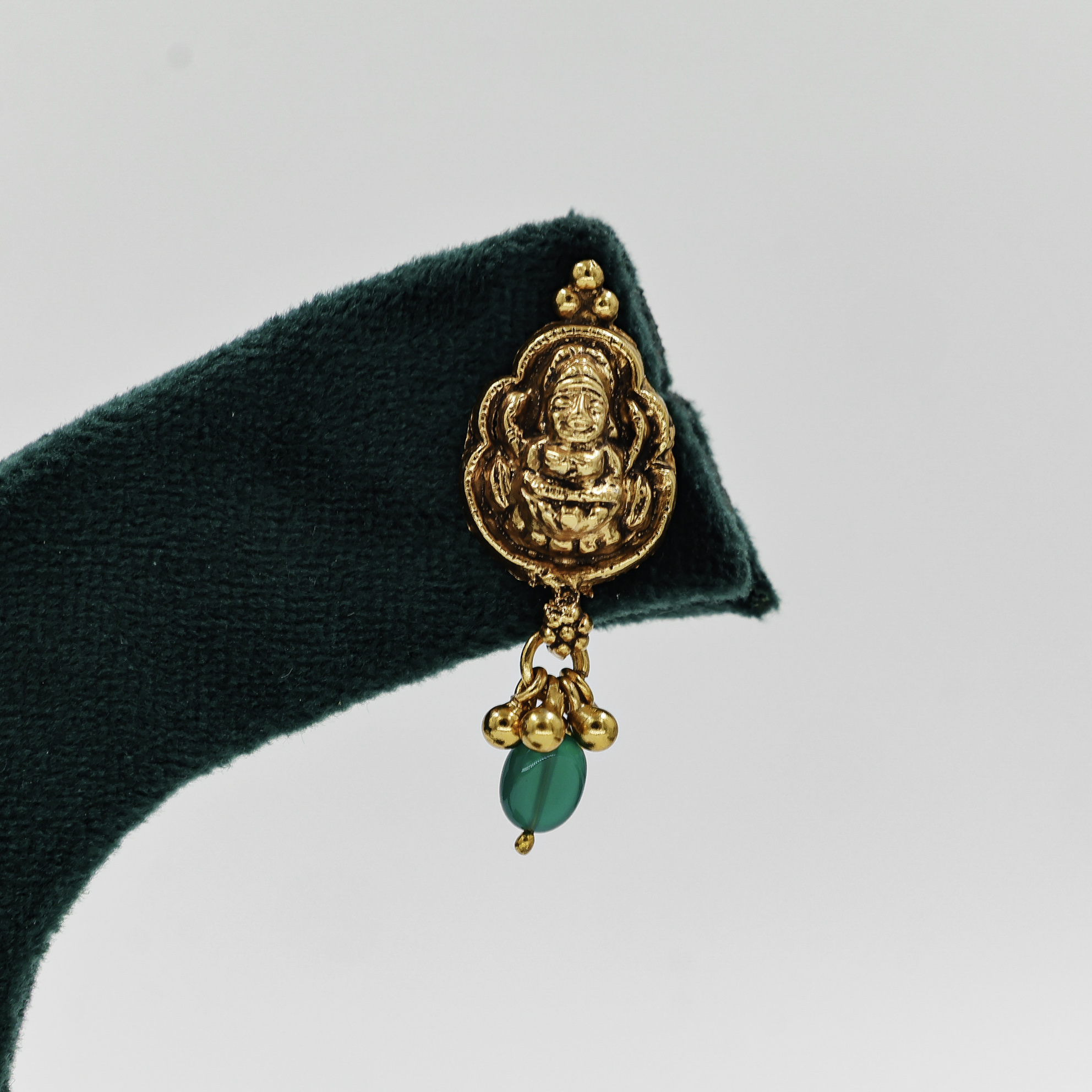 Elegant Lakshmi design Gold Polished Silver earrings, ideal for traditional occasions and festive wear. Buy Lakshmi Gold Polished Silver Earrings from Raag Silver Jewellery in Hyderabad.