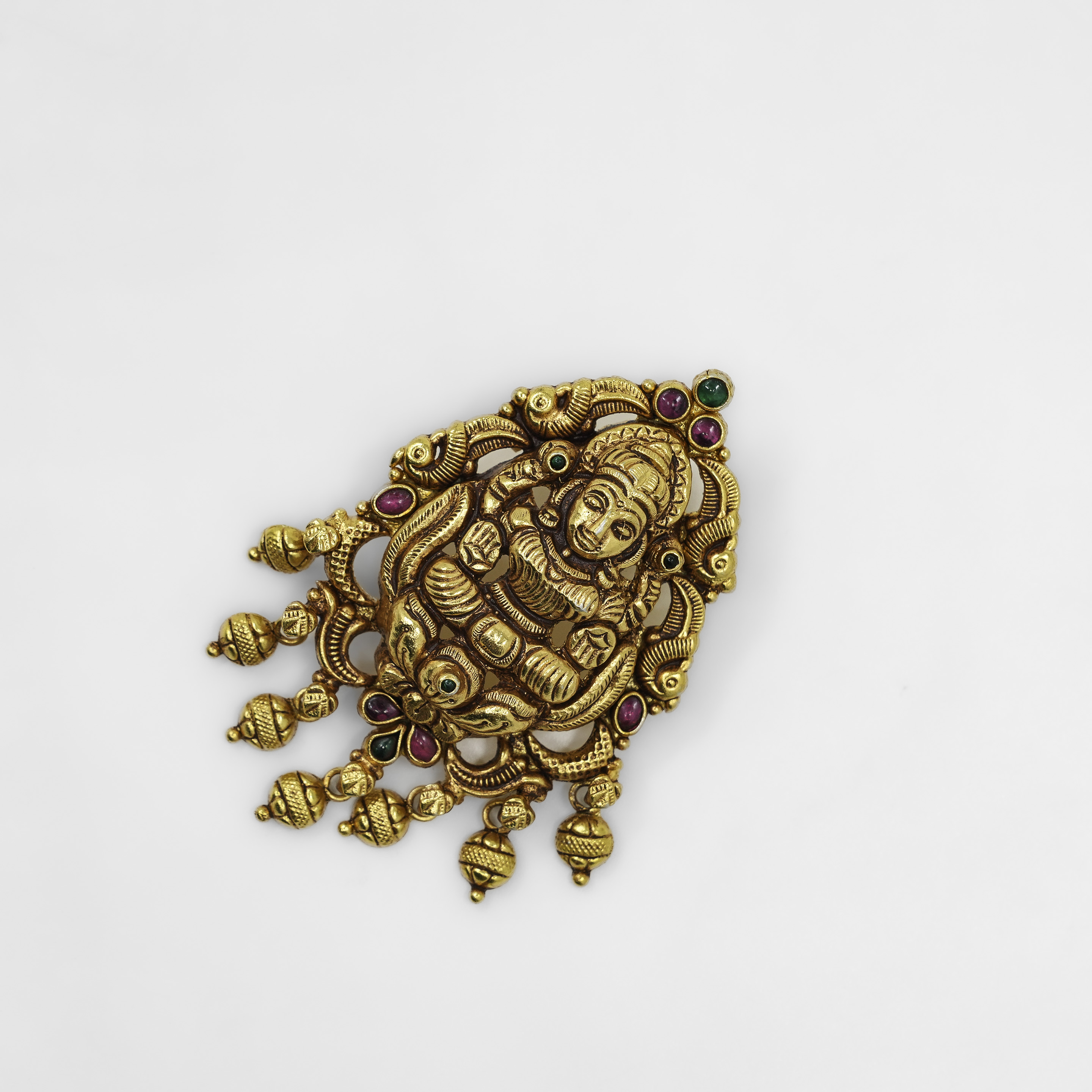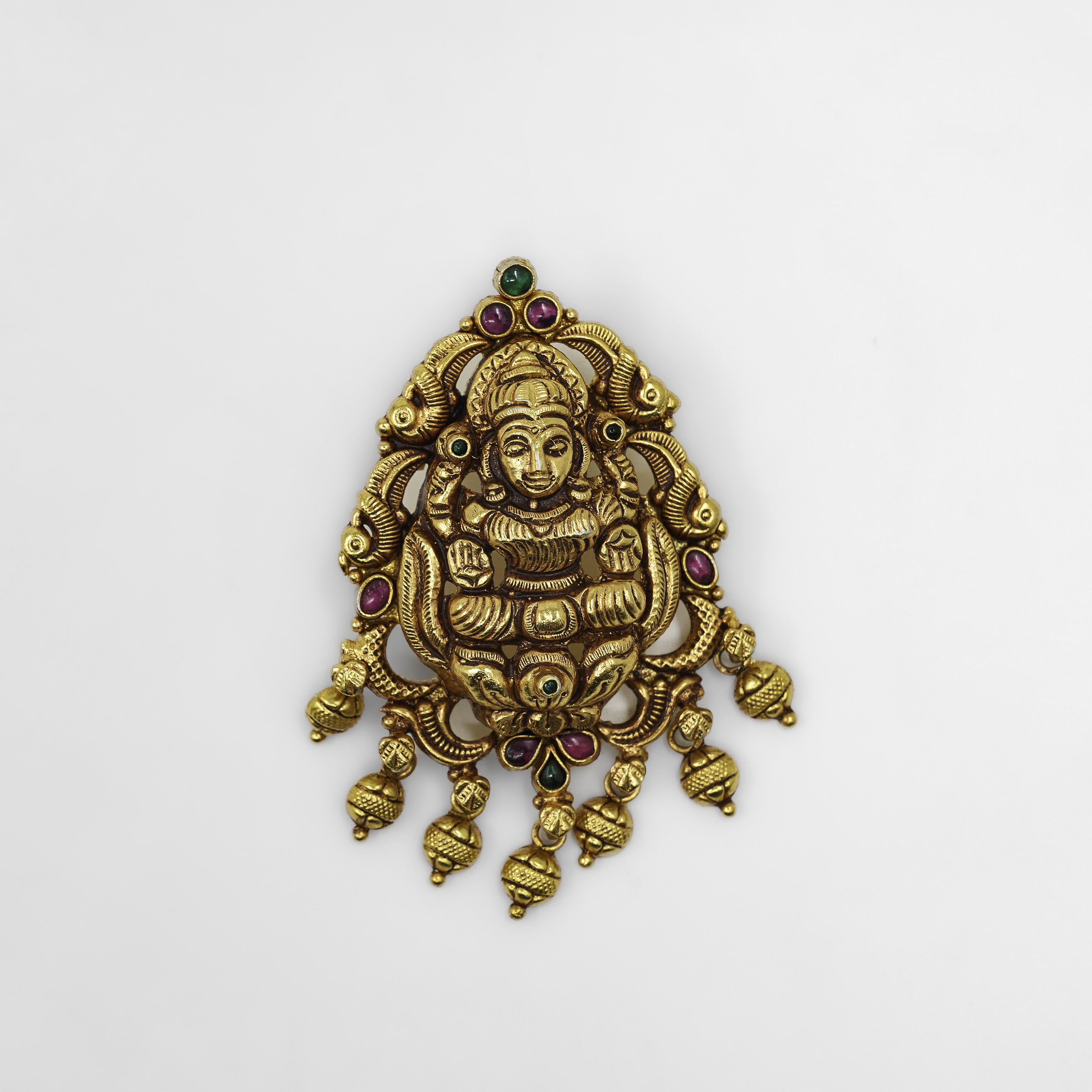 Elegant Lakshmi Gold Polished Silver pendant featuring intricate detailing, perfect for festive occasions. Buy Lakshmi Gold Polished Silver pendant from Raag Silver Jewellery in Hyderabad.