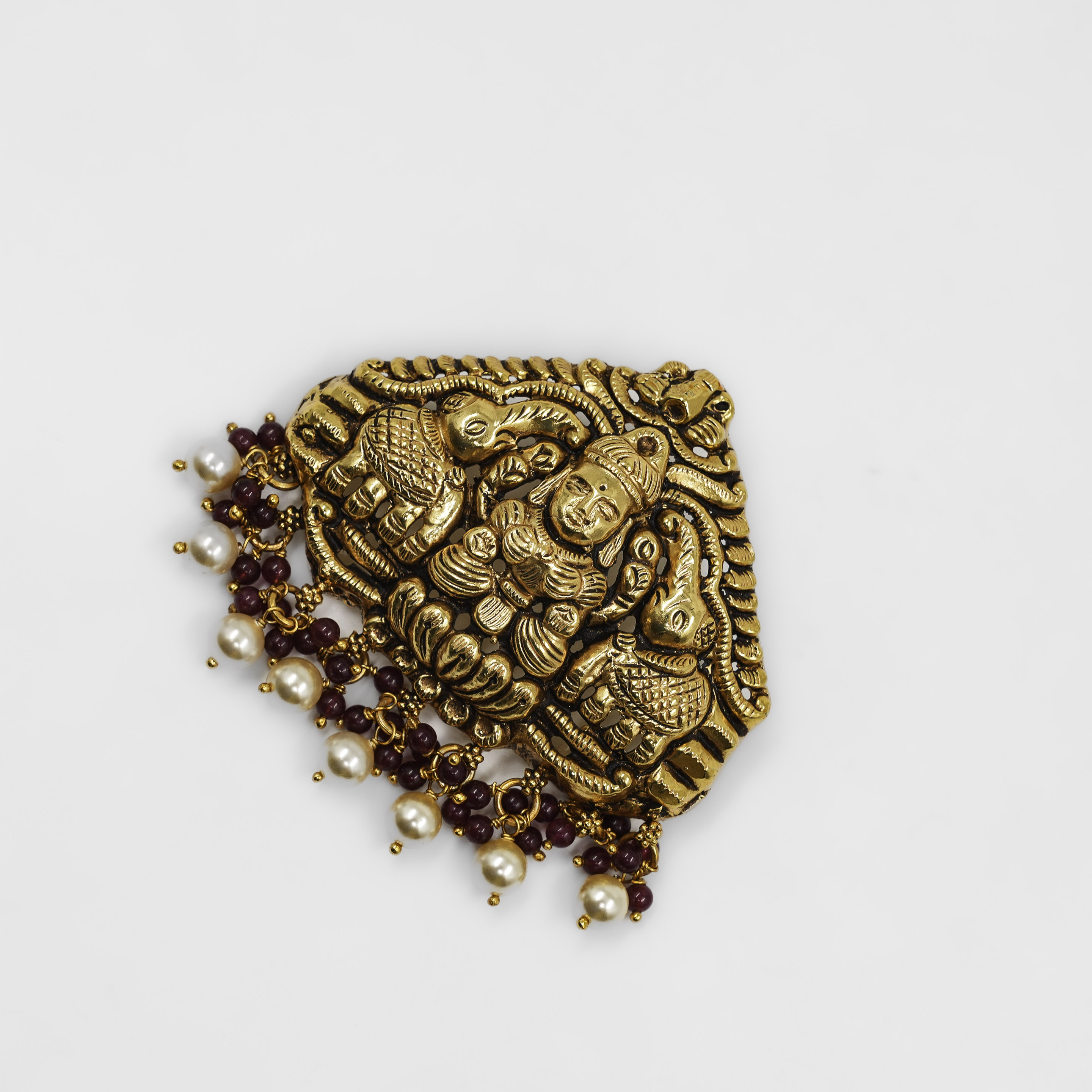 Divine Lakshmi pendant in Gold Polished Silver finish with intricate details. Perfect for religious occasions. Buy Lakshmi Pendant Gold Polished Silver from Raag Silver Jewellery in Hyderabad.