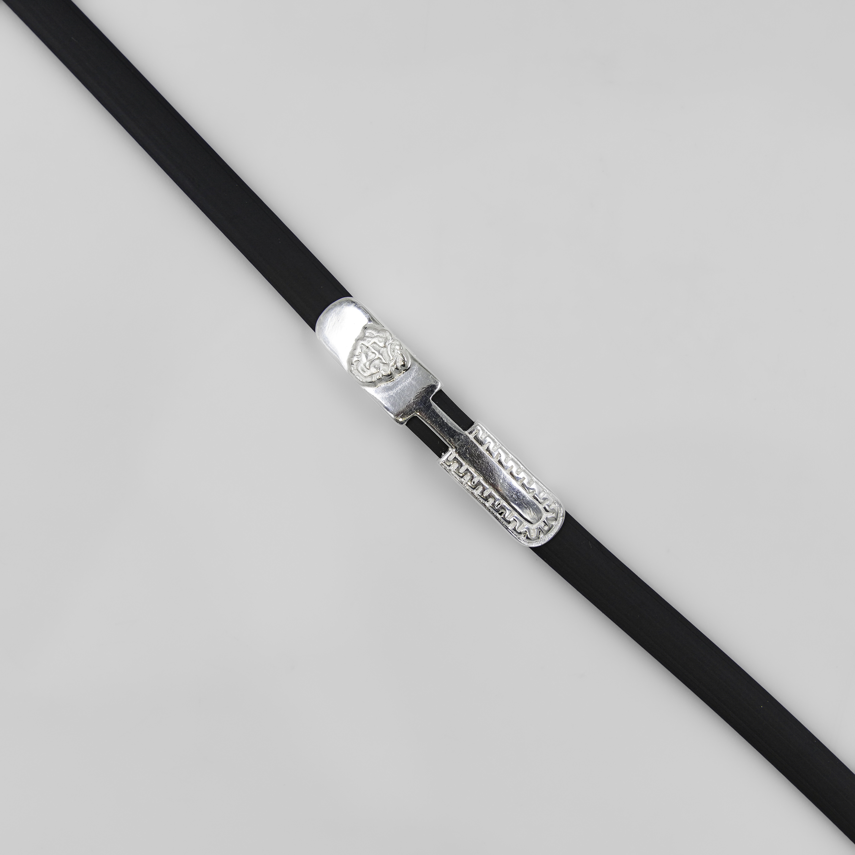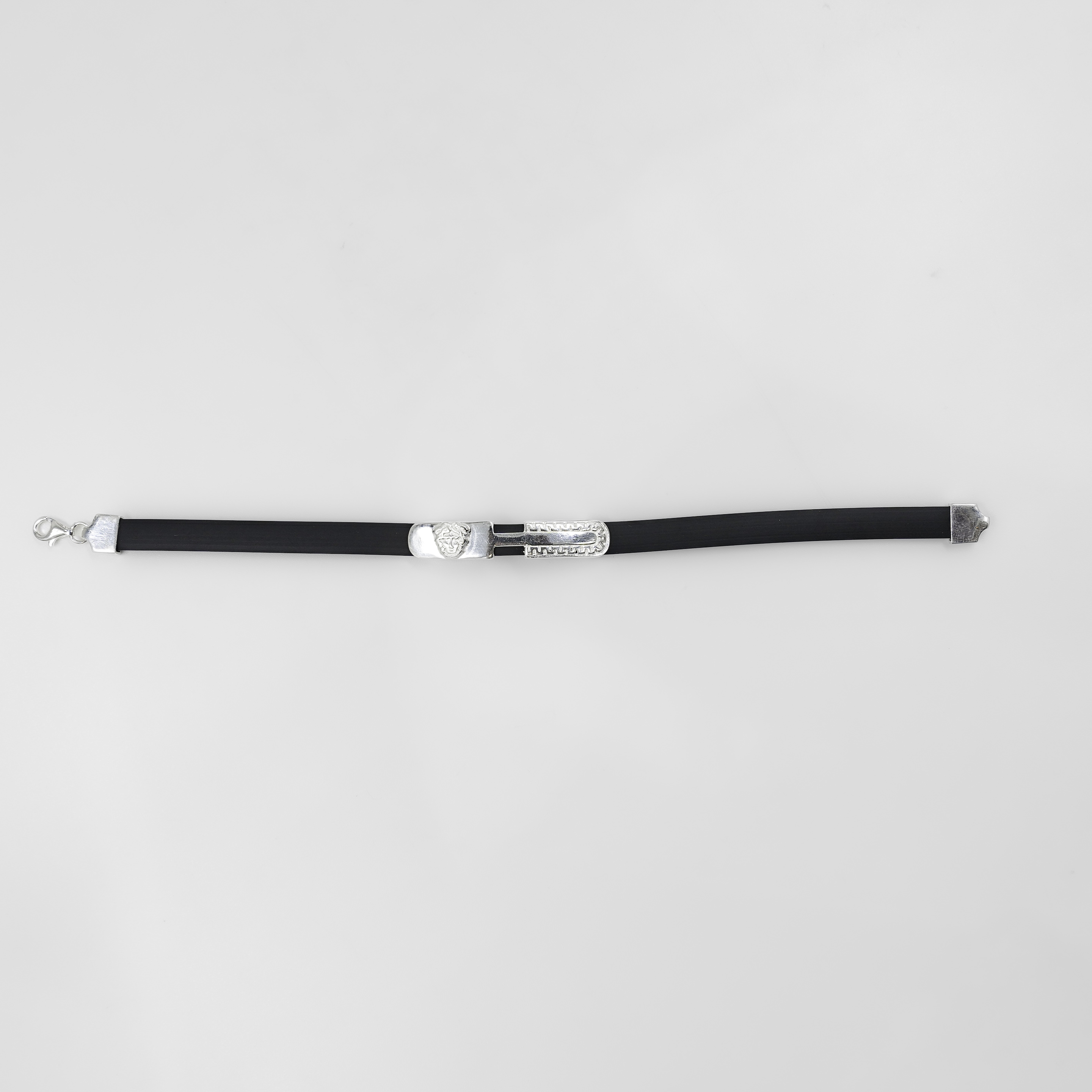 Ornami Black Rubber Silver Plated Unique Design Bracelet Jewellery