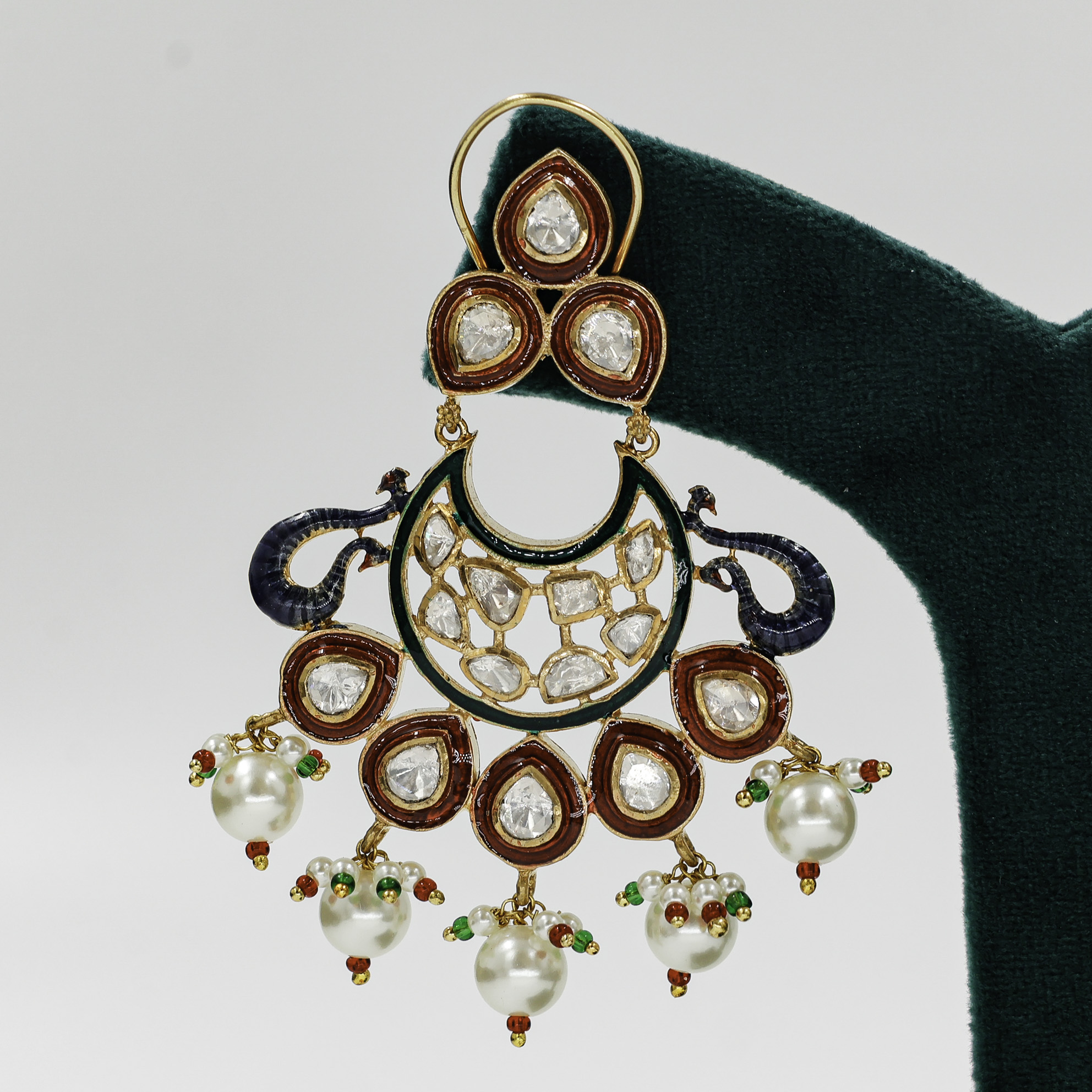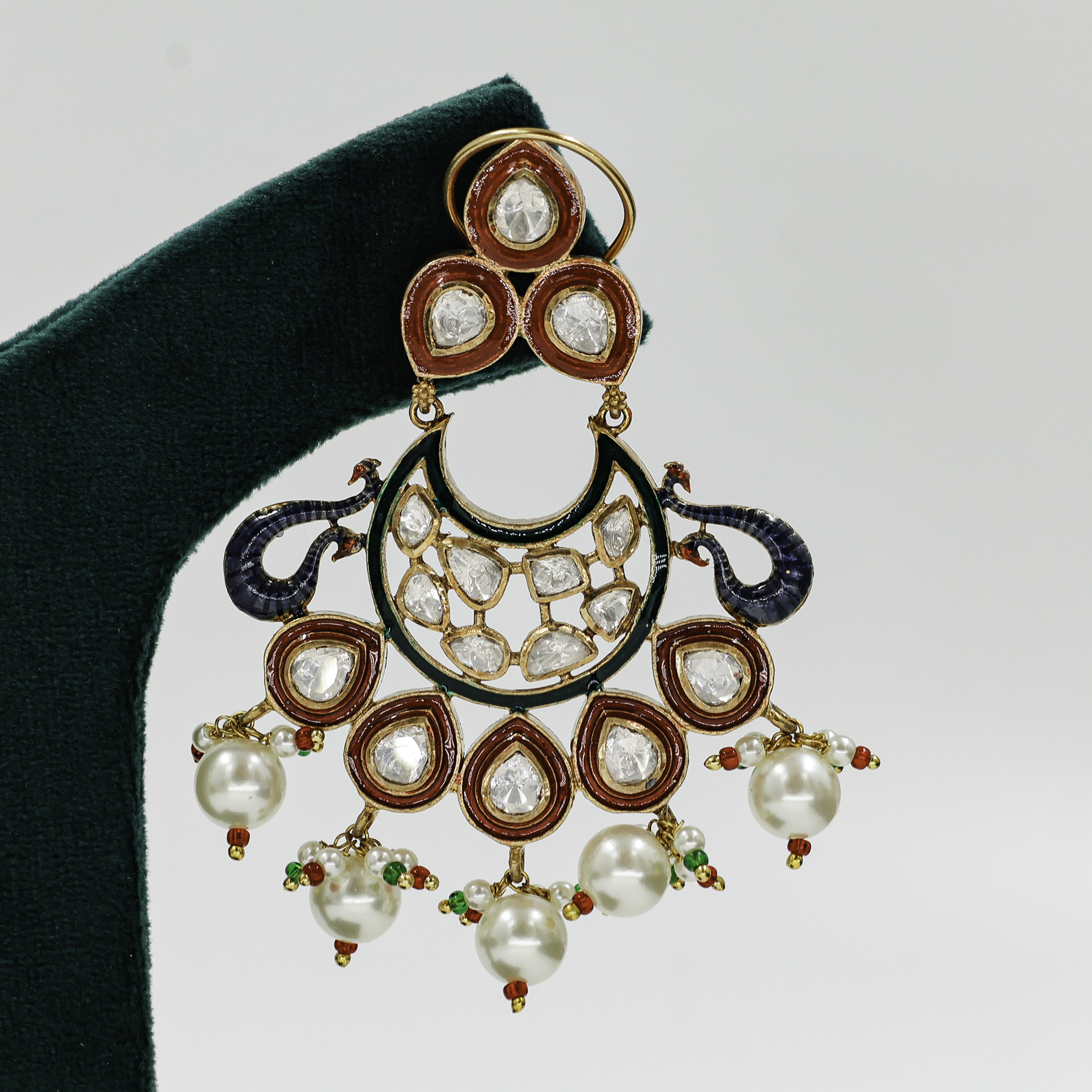 Elegant pearl drop earrings with intricate detailing, perfect for special occasions and festive wear. Buy pearl drop earrings from Raag Silver Jewellery in Hyderabad.