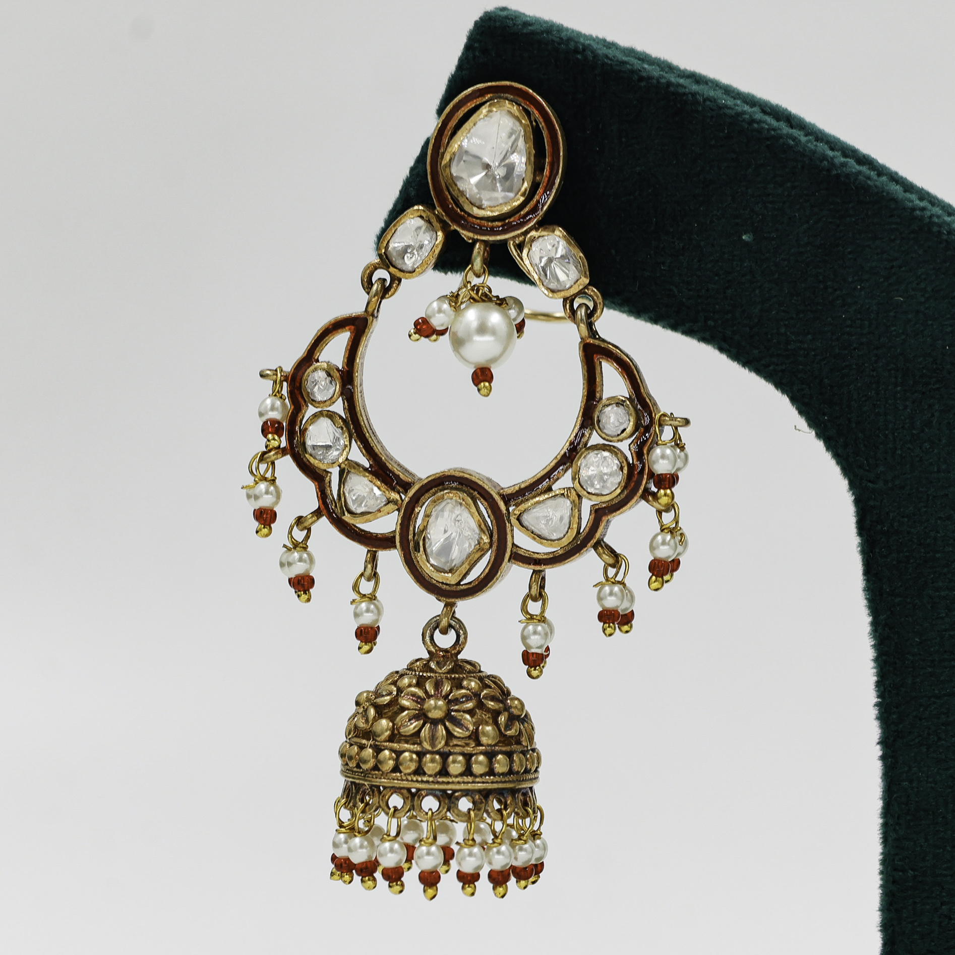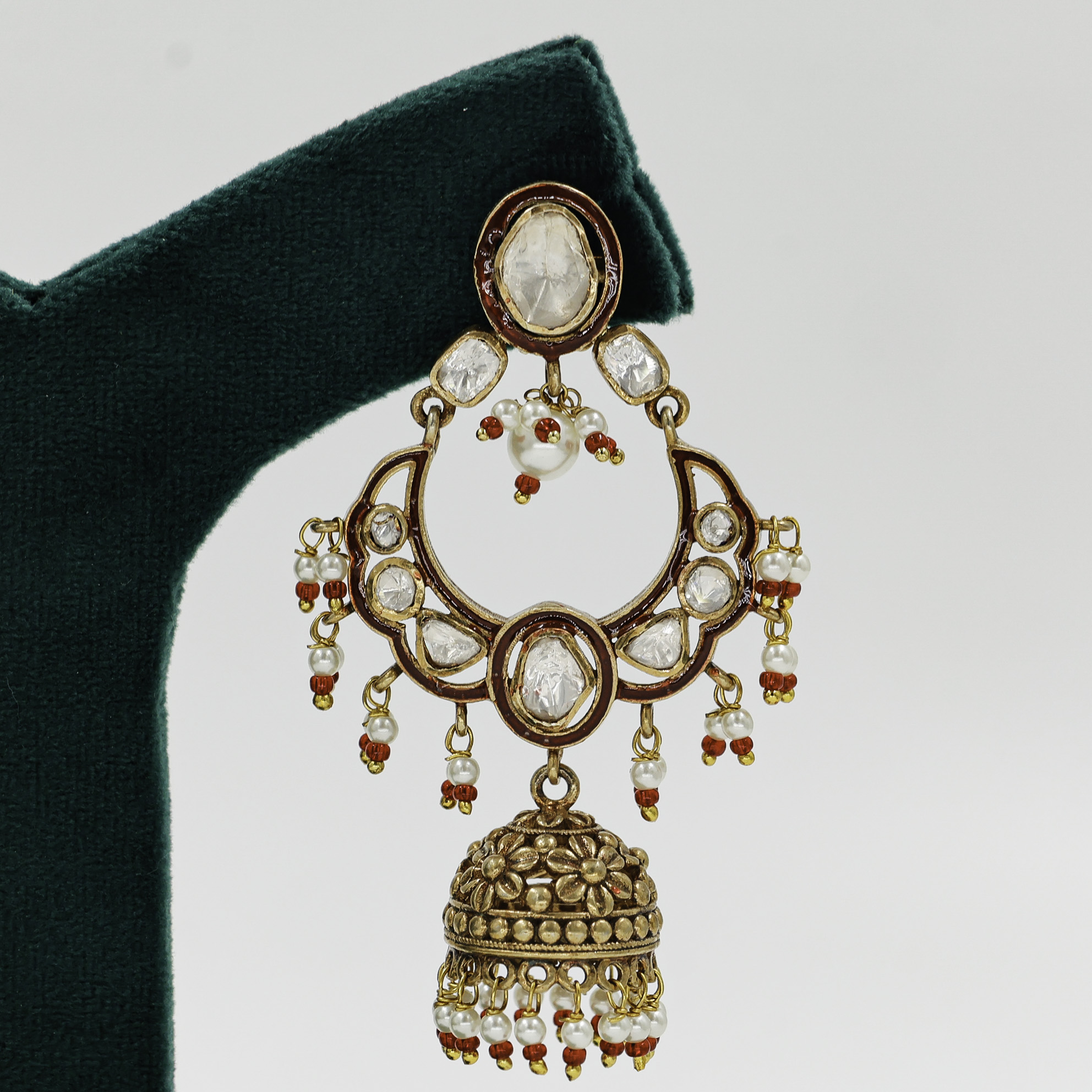 Elegant polki jhumka earrings with intricate detailing, perfect for traditional occasions. Buy Polki Jhumka Earrings from Raag Silver Jewellery in Hyderabad.