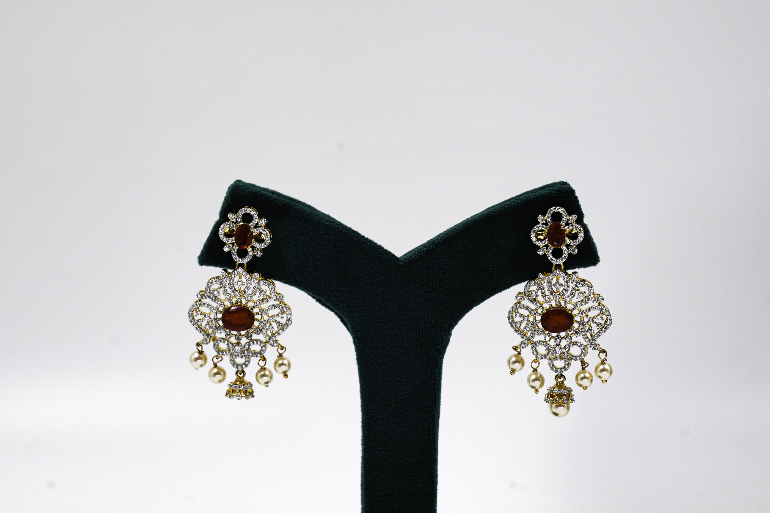 Elegant red stone necklace set with intricate detailing, perfect for weddings and special occasions. Buy Red Stone Necklace from Raag Silver Jewellery in Hyderabad.