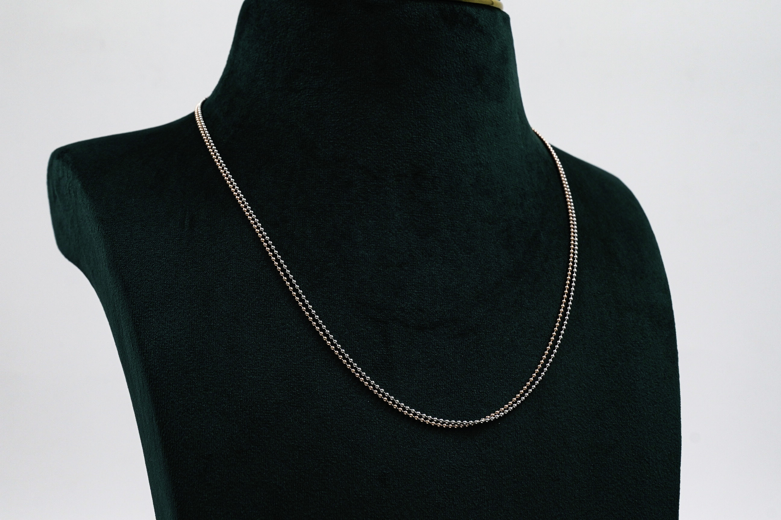 Delicate silver ball chain necklace, a versatile accessory for everyday wear or layering. Buy silver ball chain from Raag Silver Jewellery in Hyderabad.