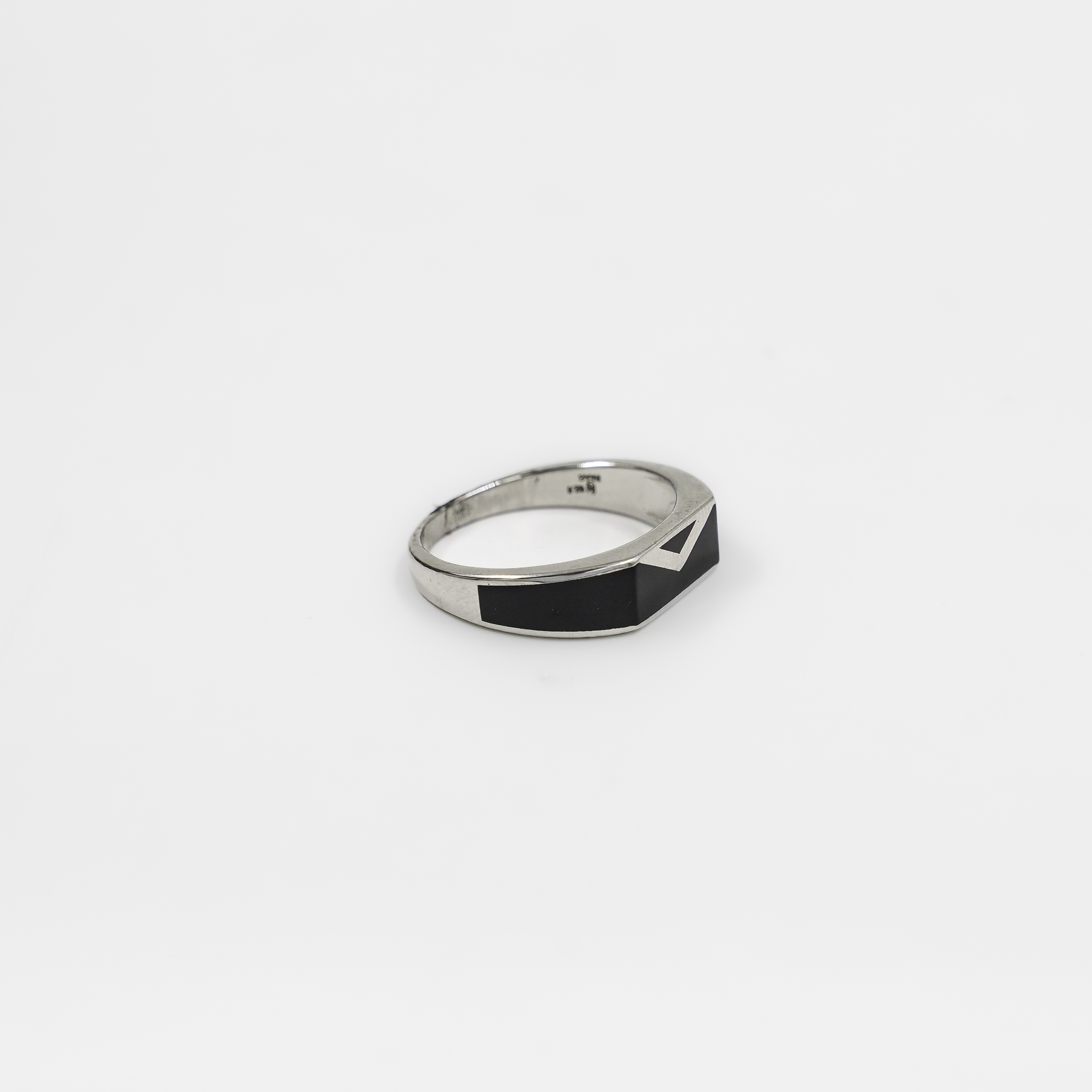 Silver Band Ring Black Enamel Geometric Detail Jewellery Unisex