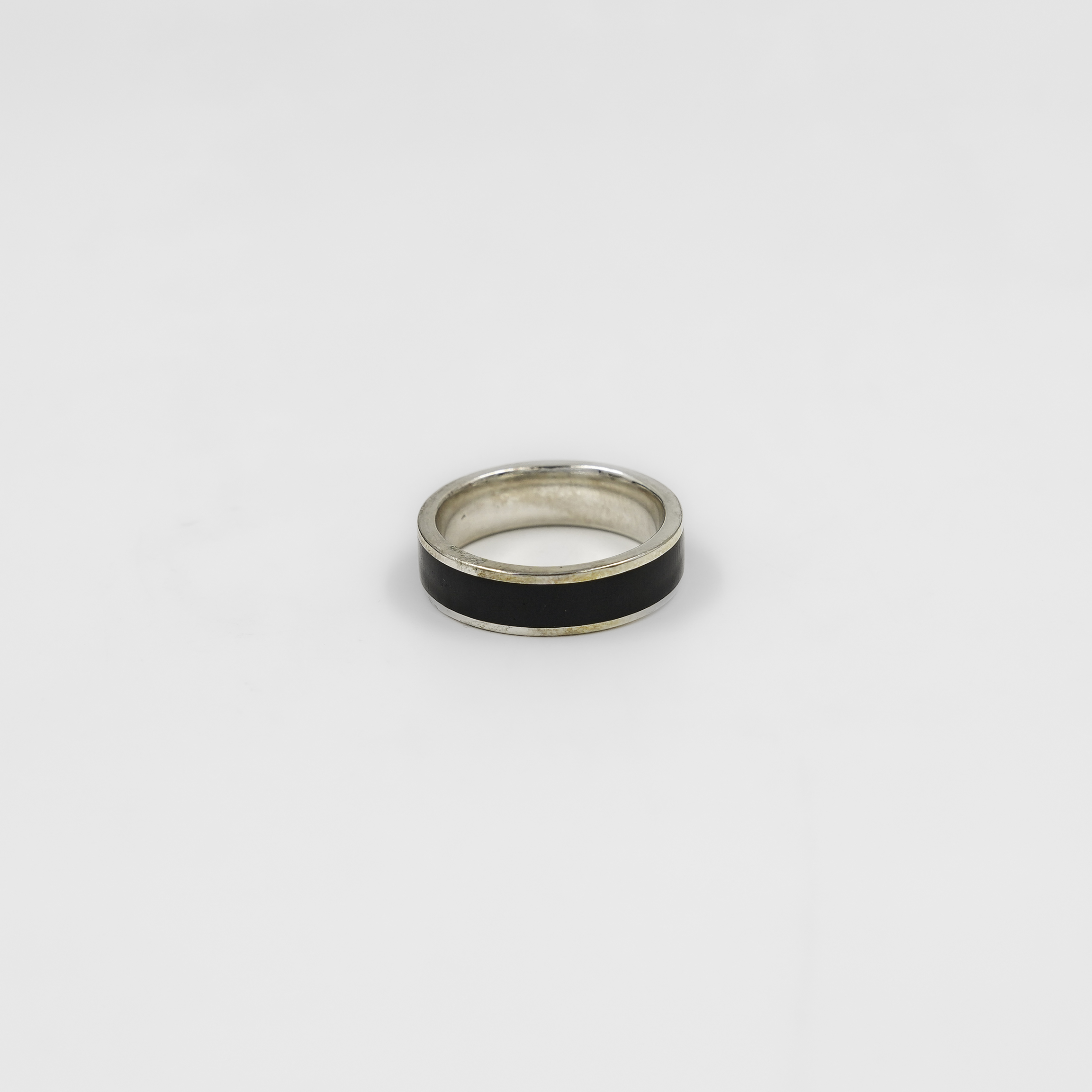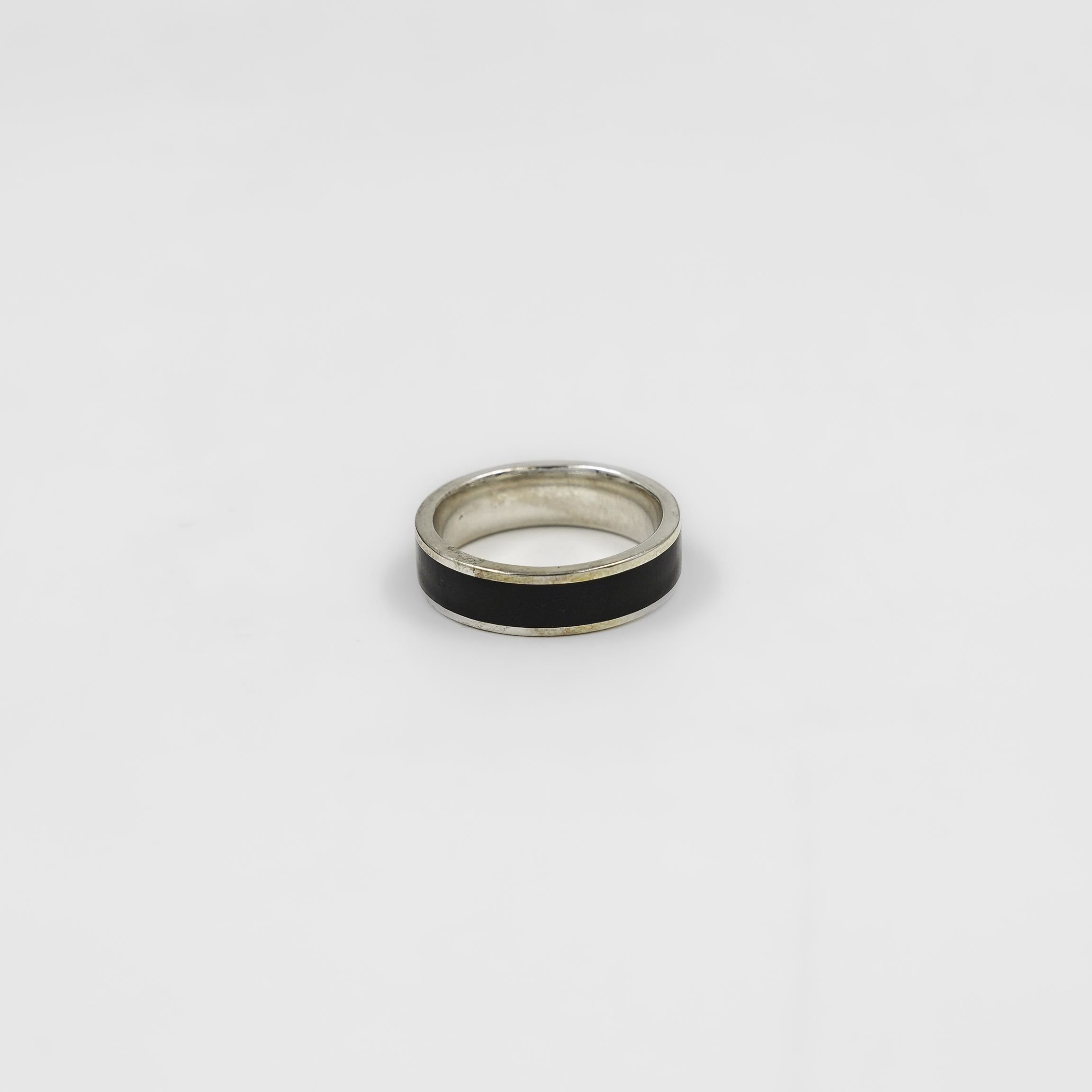 Silver Band Ring With Black Enamel Inlay Modern Jewellery