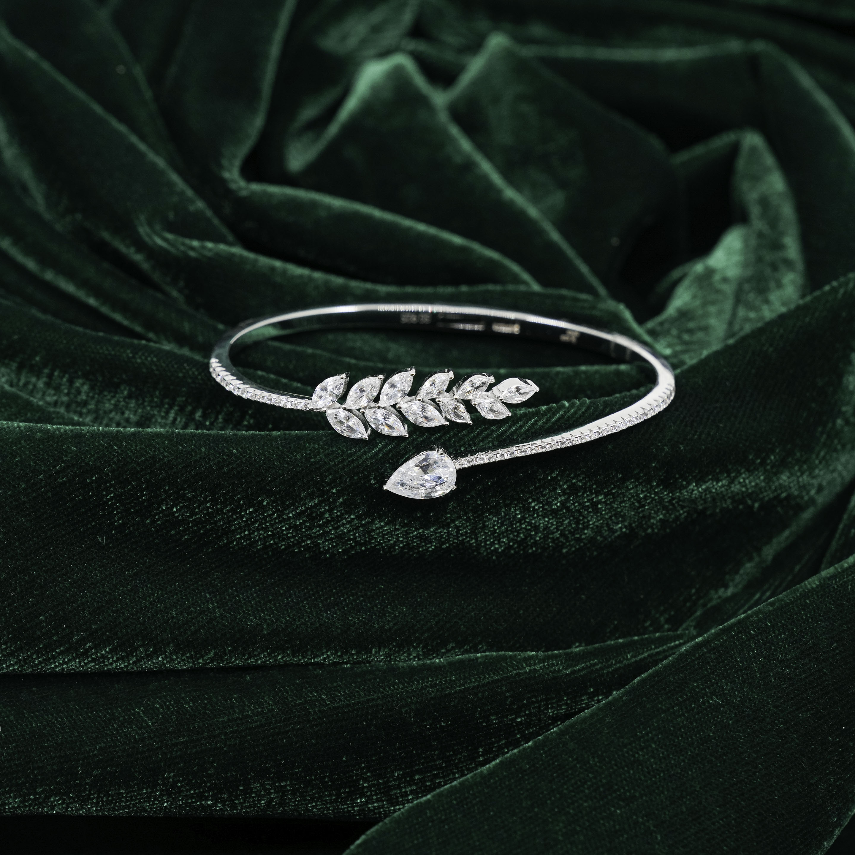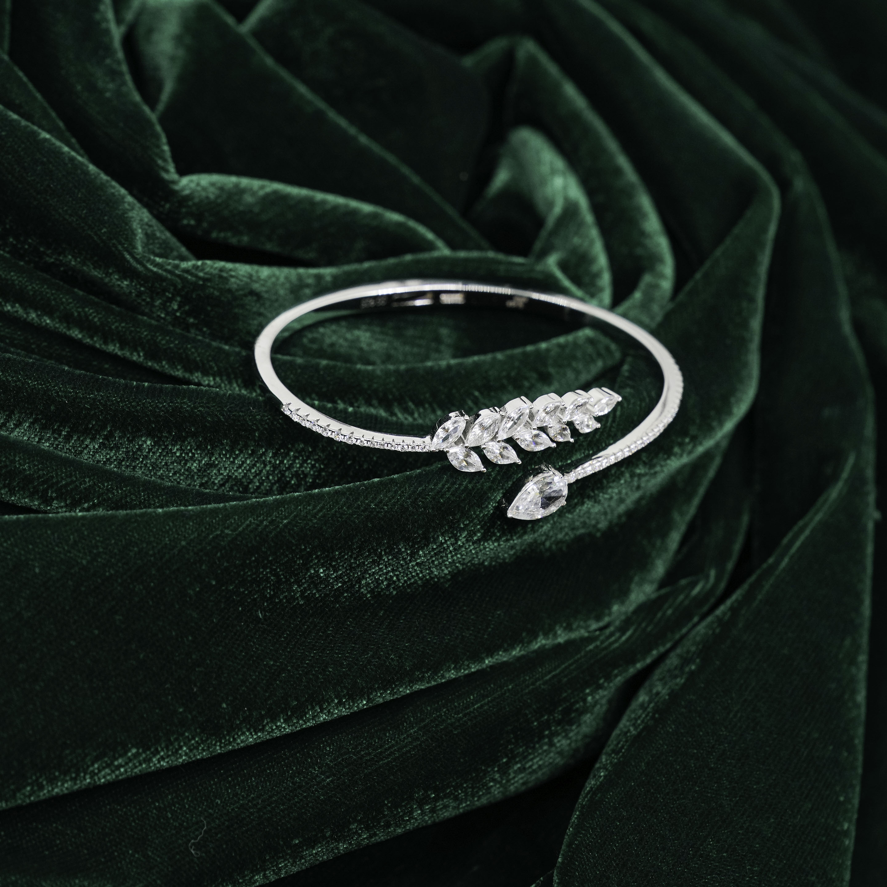 Elegant silver bangle bracelet with a unique design, suitable for any occasion. Buy Silver Bangle Bracelet from Raag Silver Jewellery in Hyderabad.