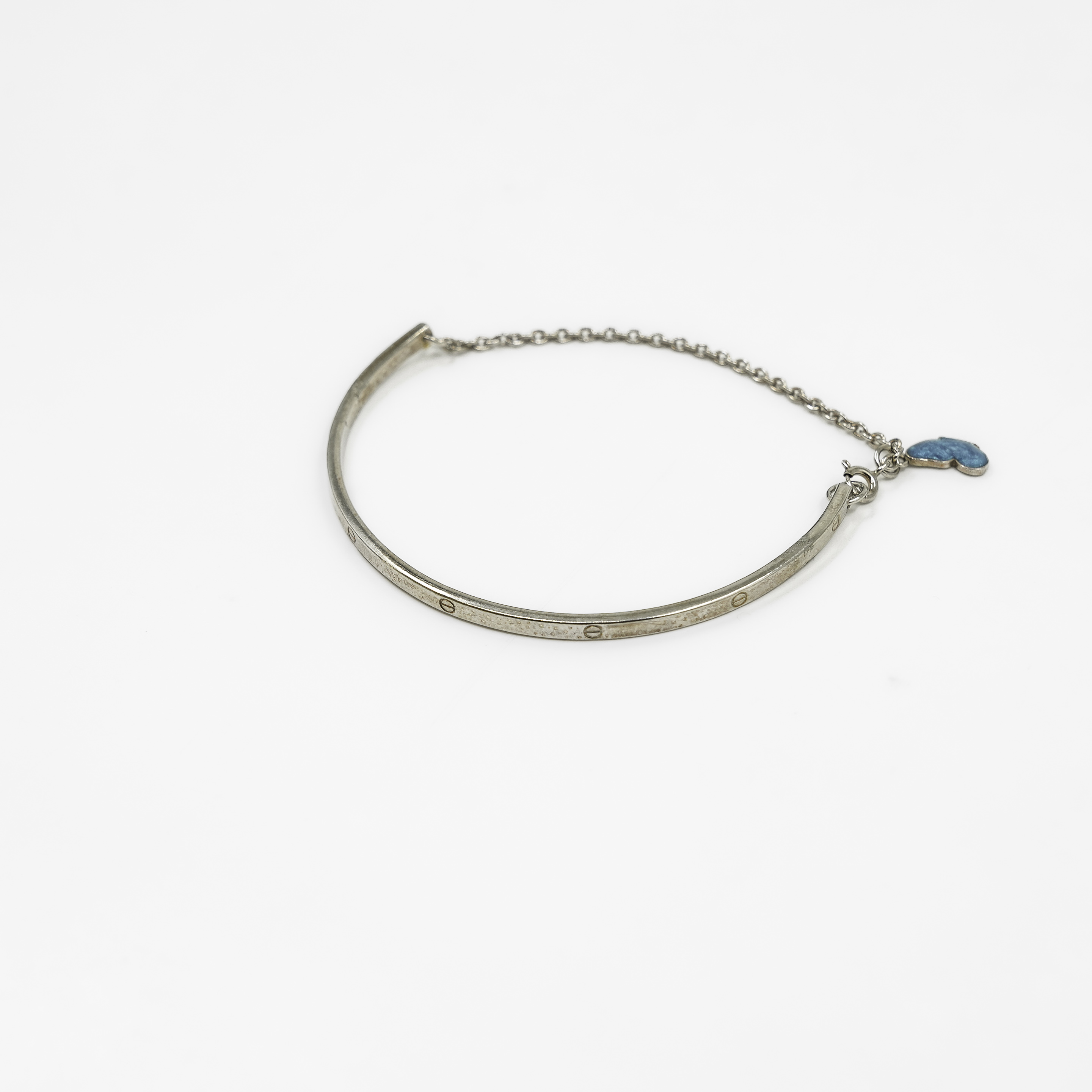 Elegant silver bangle bracelet with a delicate charm, perfect for everyday wear. Buy silver bangle bracelet from Raag Silver Jewellery in Hyderabad.