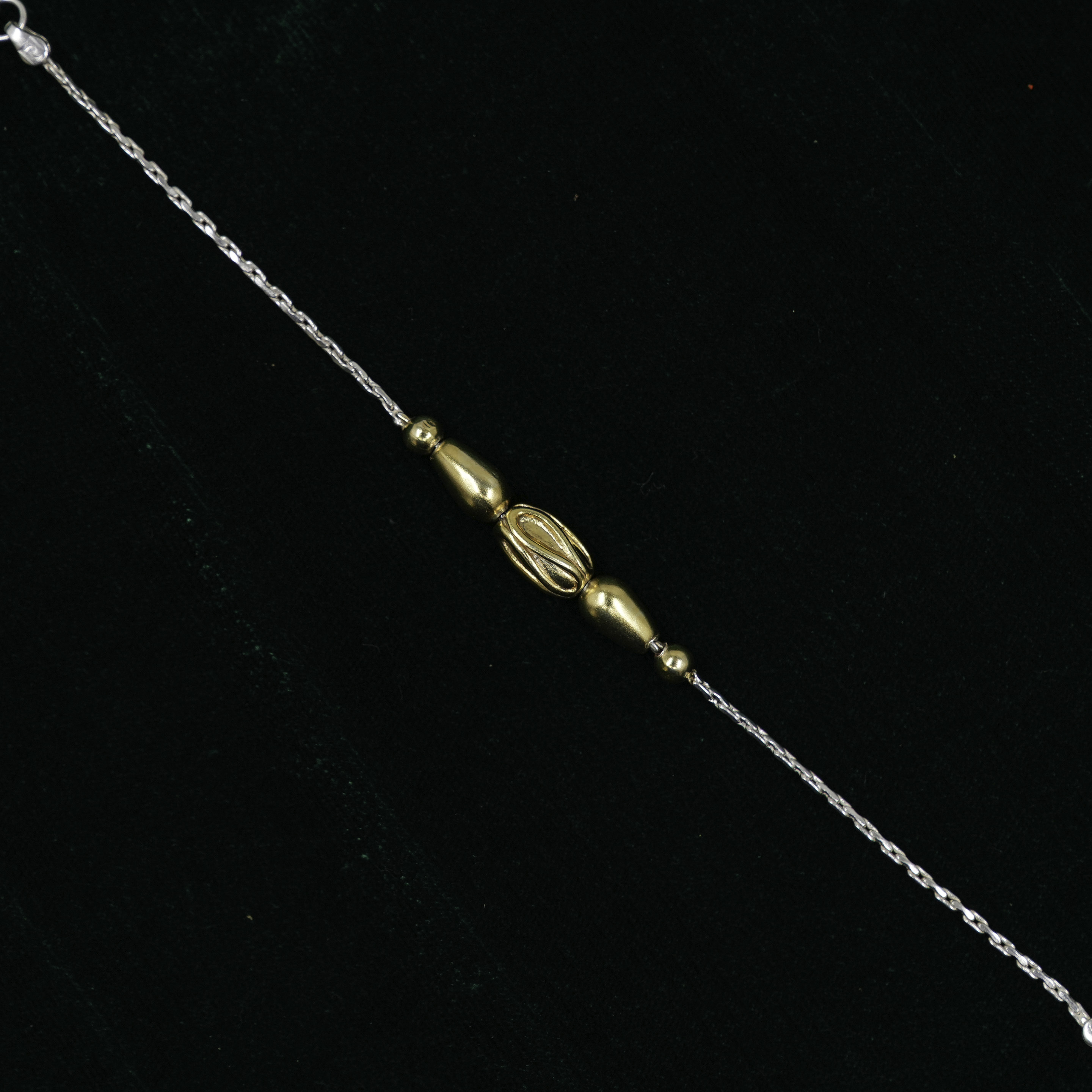 Elegant silver bracelet with Gold Polished Silver beaded accents, perfect for adding a touch of style. Buy Silver Beaded Bracelet from Raag Silver Jewellery in Hyderabad.