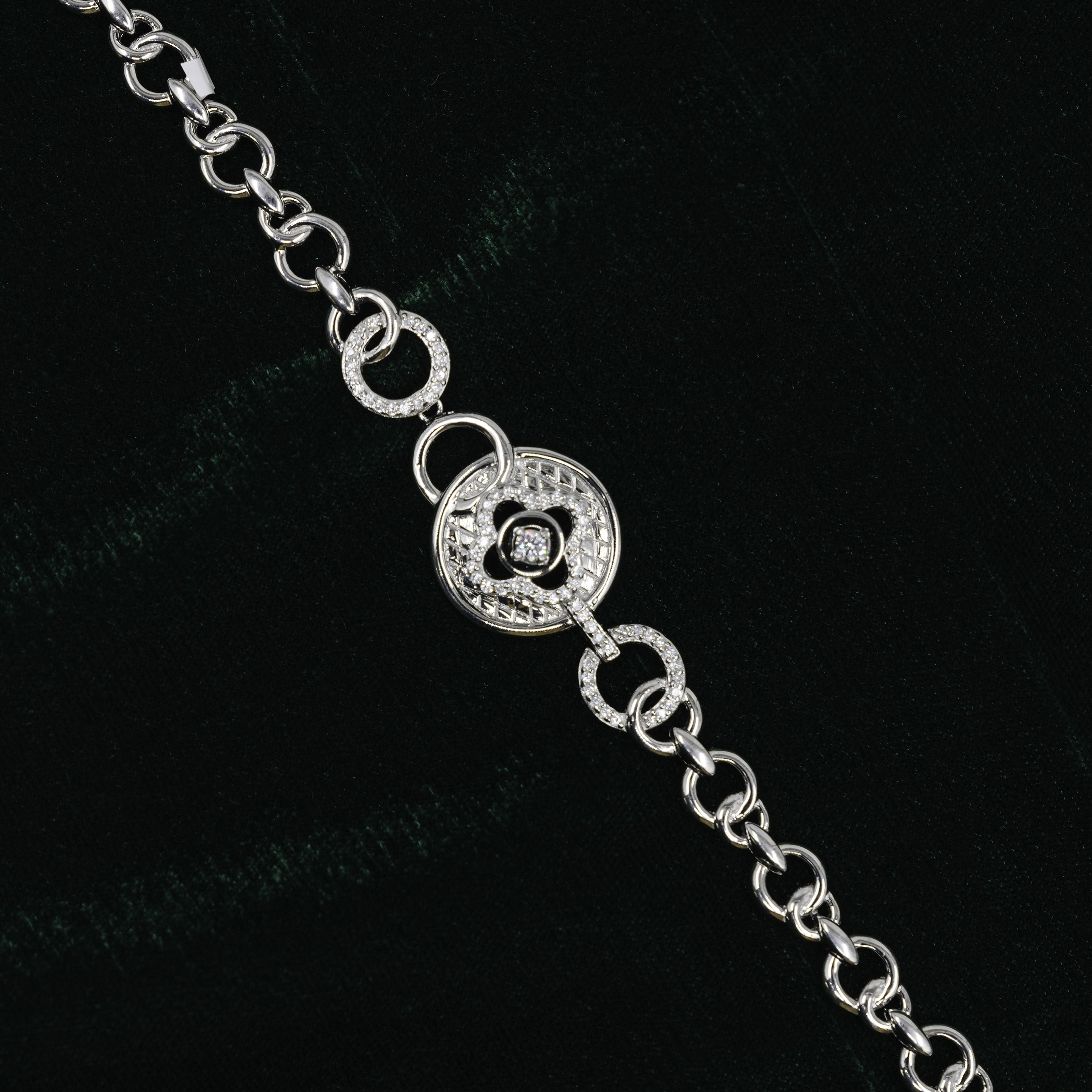 Stylish silver chain bracelet with circular design, a timeless piece for any occasion. Buy Silver Chain Bracelet from Raag Silver Jewellery in Hyderabad.