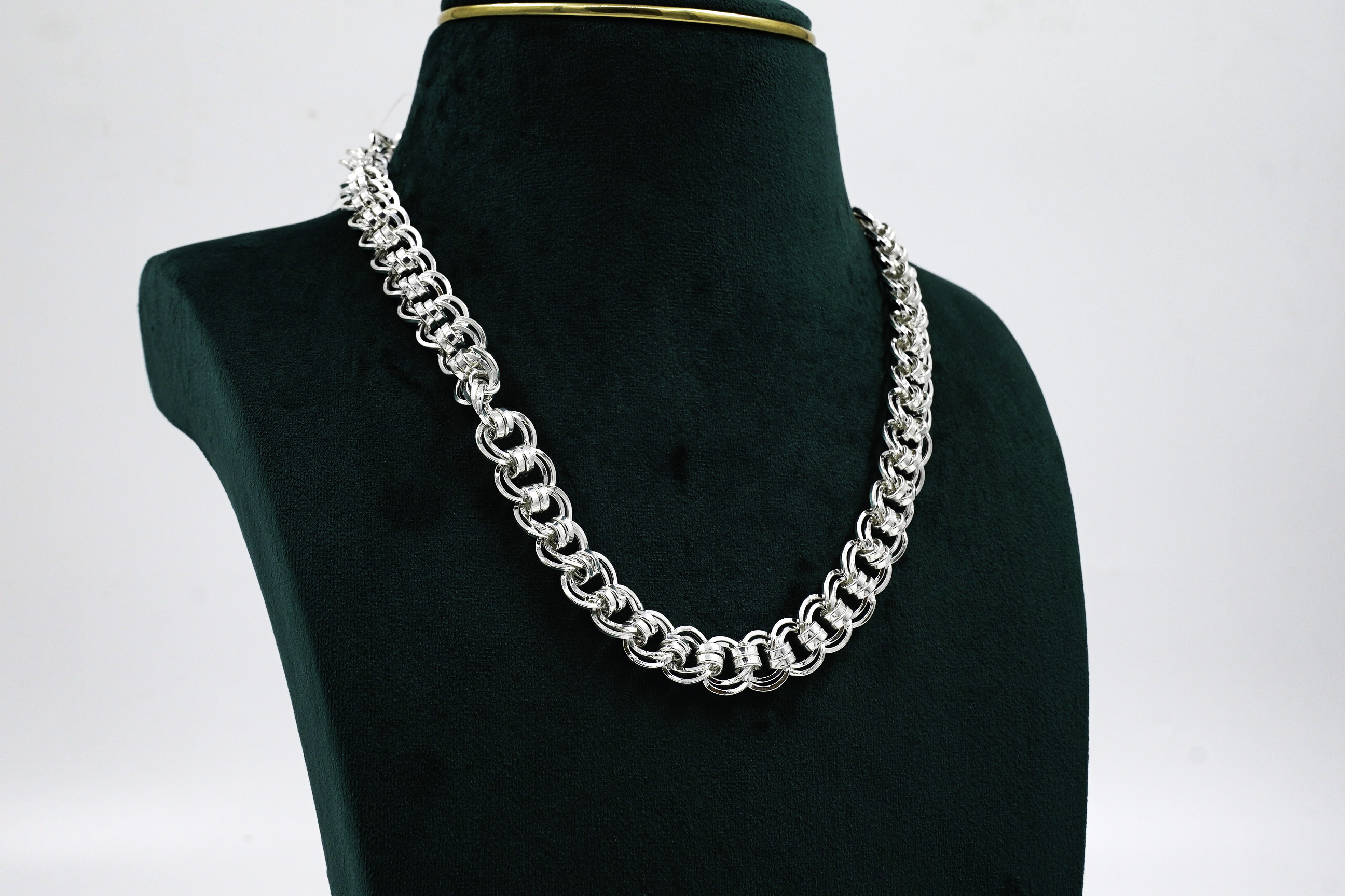 Elegant silver chain necklace, a timeless piece perfect for everyday wear or special occasions. Buy Silver Chain Necklace from Raag Silver Jewellery in Hyderabad.