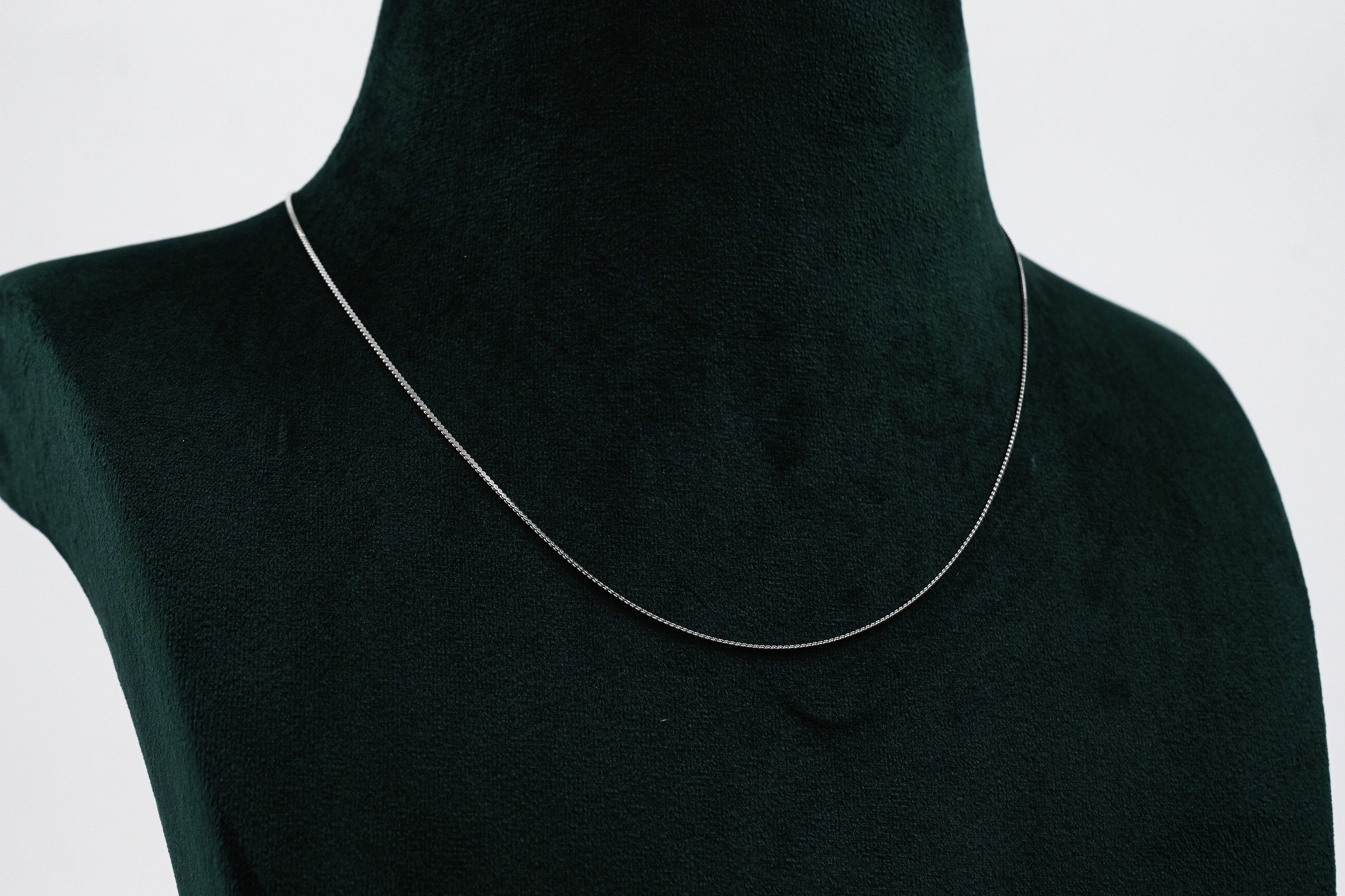 Classic silver chain necklace, perfect for everyday wear or layering with pendants. Buy silver chain necklace from Raag Silver Jewellery in Hyderabad.
