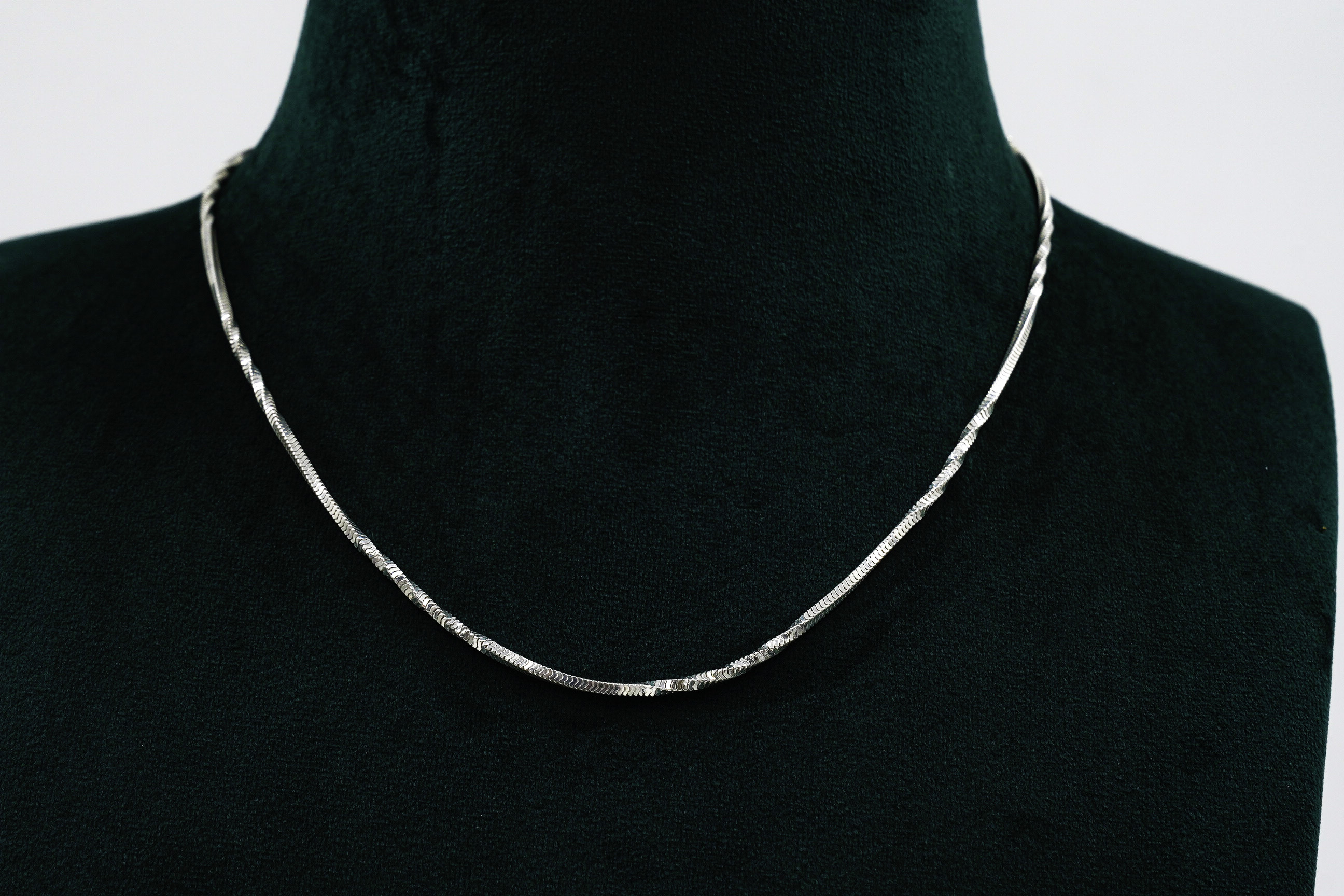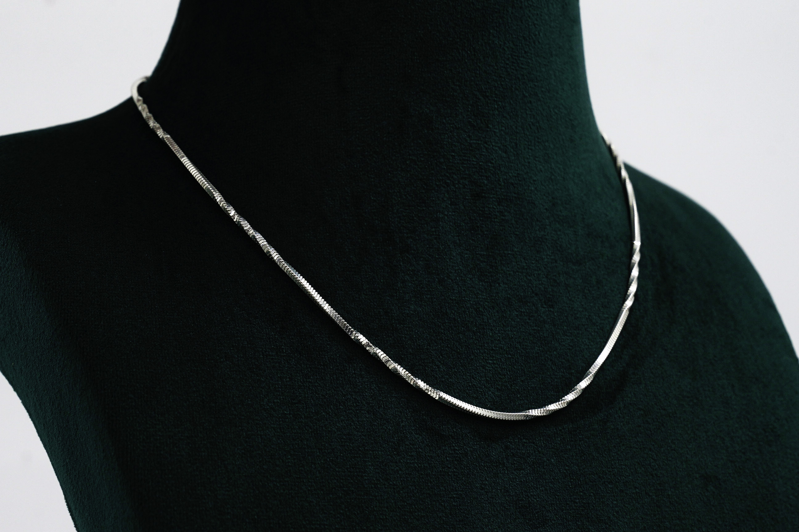 Elegant silver chain necklace with a sleek design, perfect for everyday wear or special occasions. Buy silver chain necklace from Raag Silver Jewellery in Hyderabad.