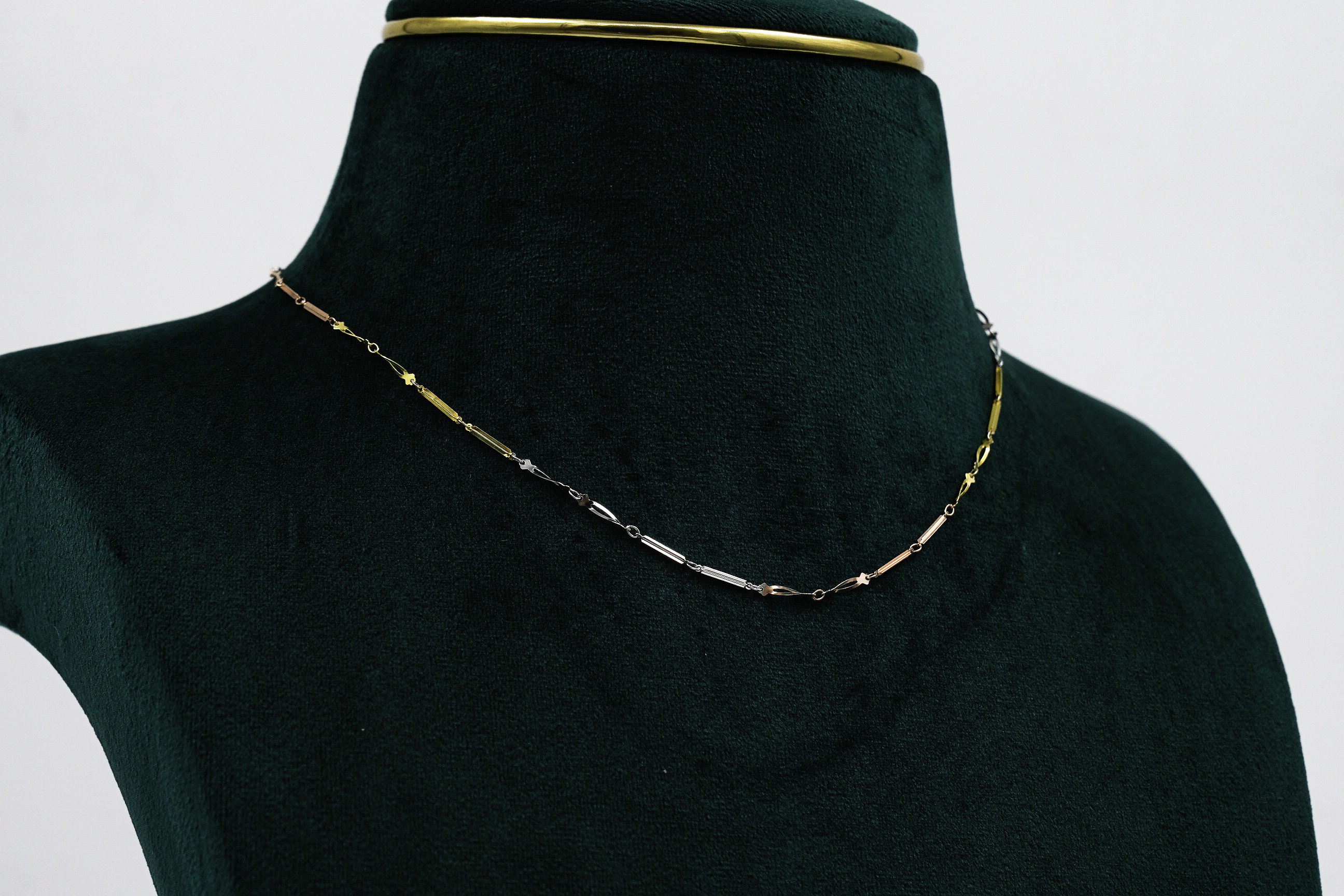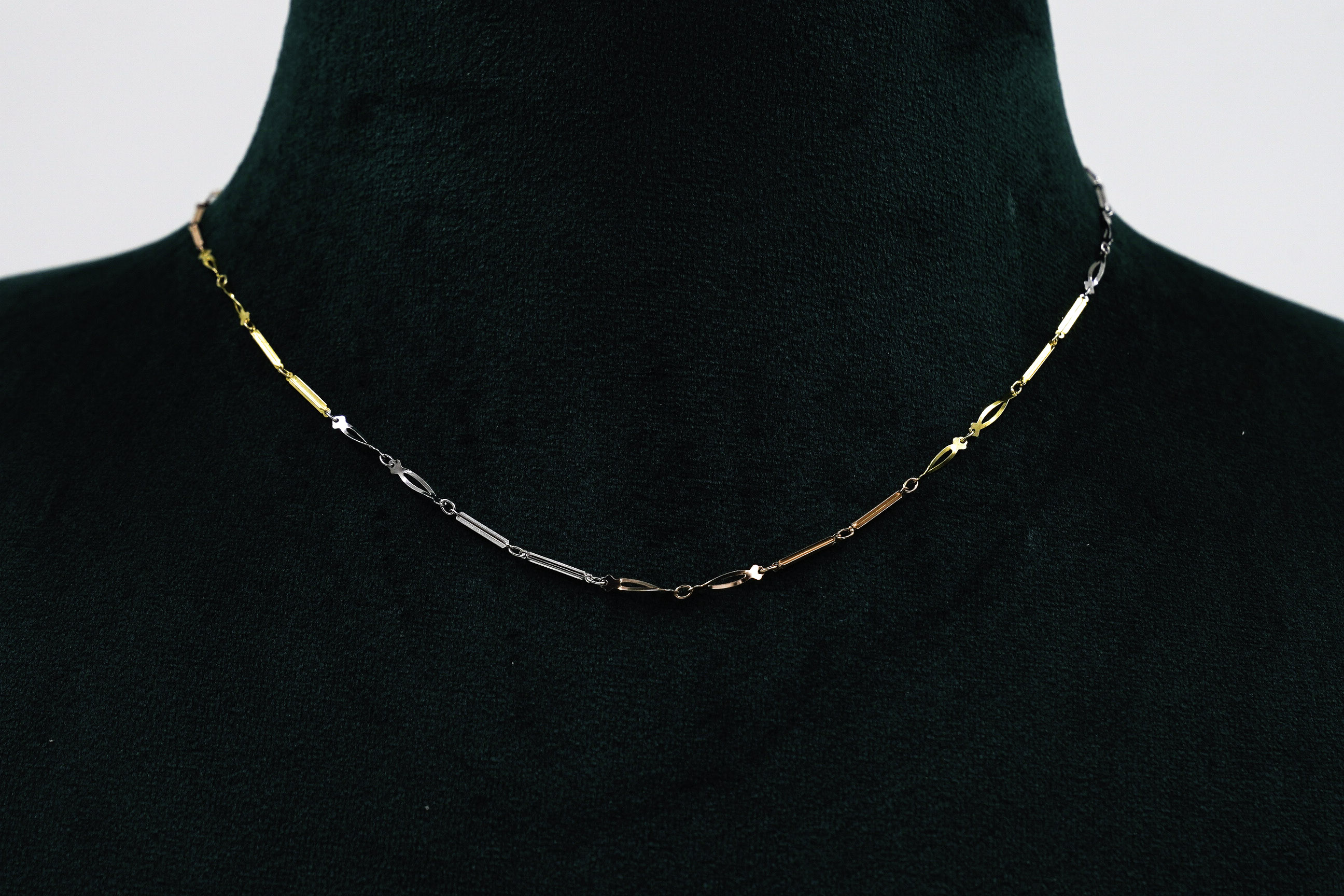 Elegant silver chain necklace with tri-tone finish, a stylish accessory for everyday wear. Buy Silver Chain Necklace from Raag Silver Jewellery in Hyderabad.