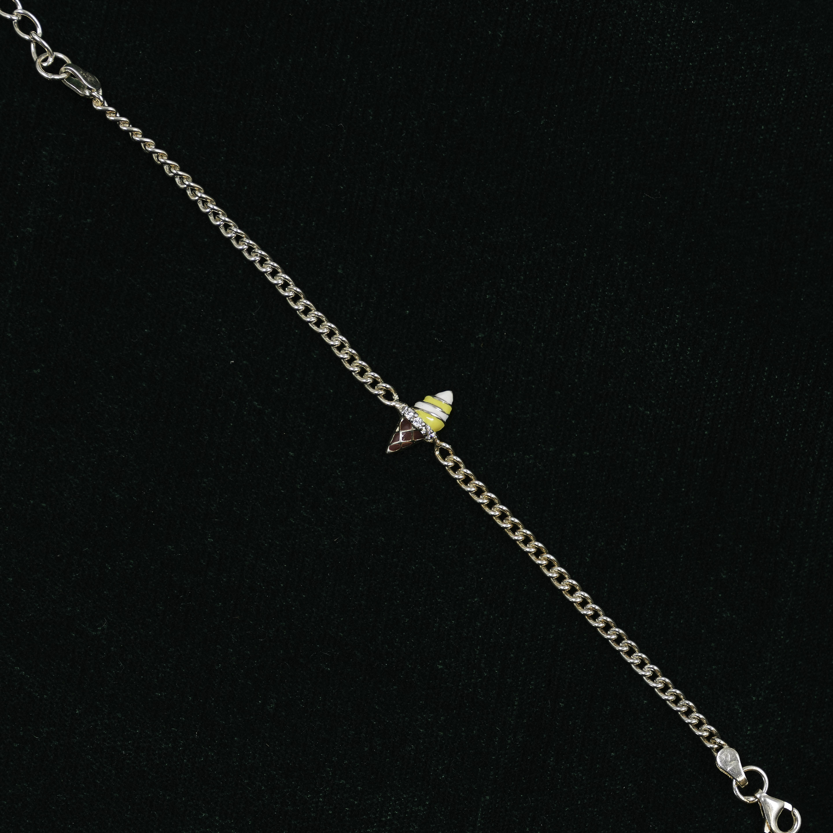 Stylish silver charm bracelet with a cute drink charm, perfect for everyday wear. Buy silver charm bracelet from Raag Silver Jewellery in Hyderabad.