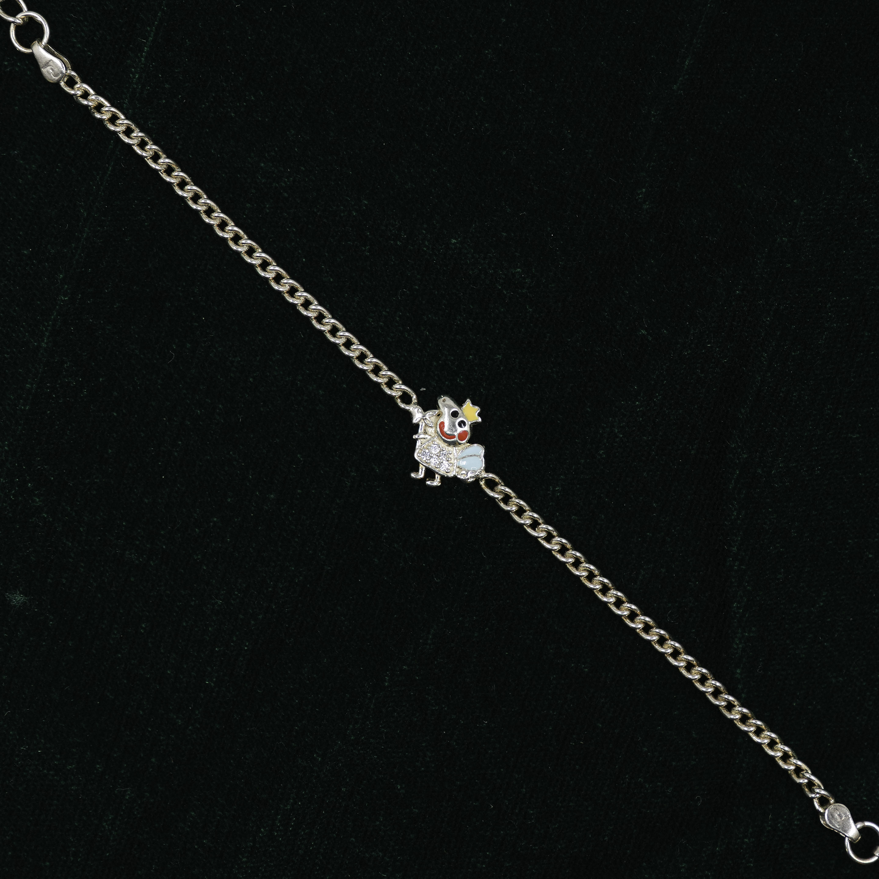 Delicate silver charm bracelet featuring a cute unicorn design, perfect for girls and teens. Buy silver charm bracelet from Raag Silver Jewellery in Hyderabad.