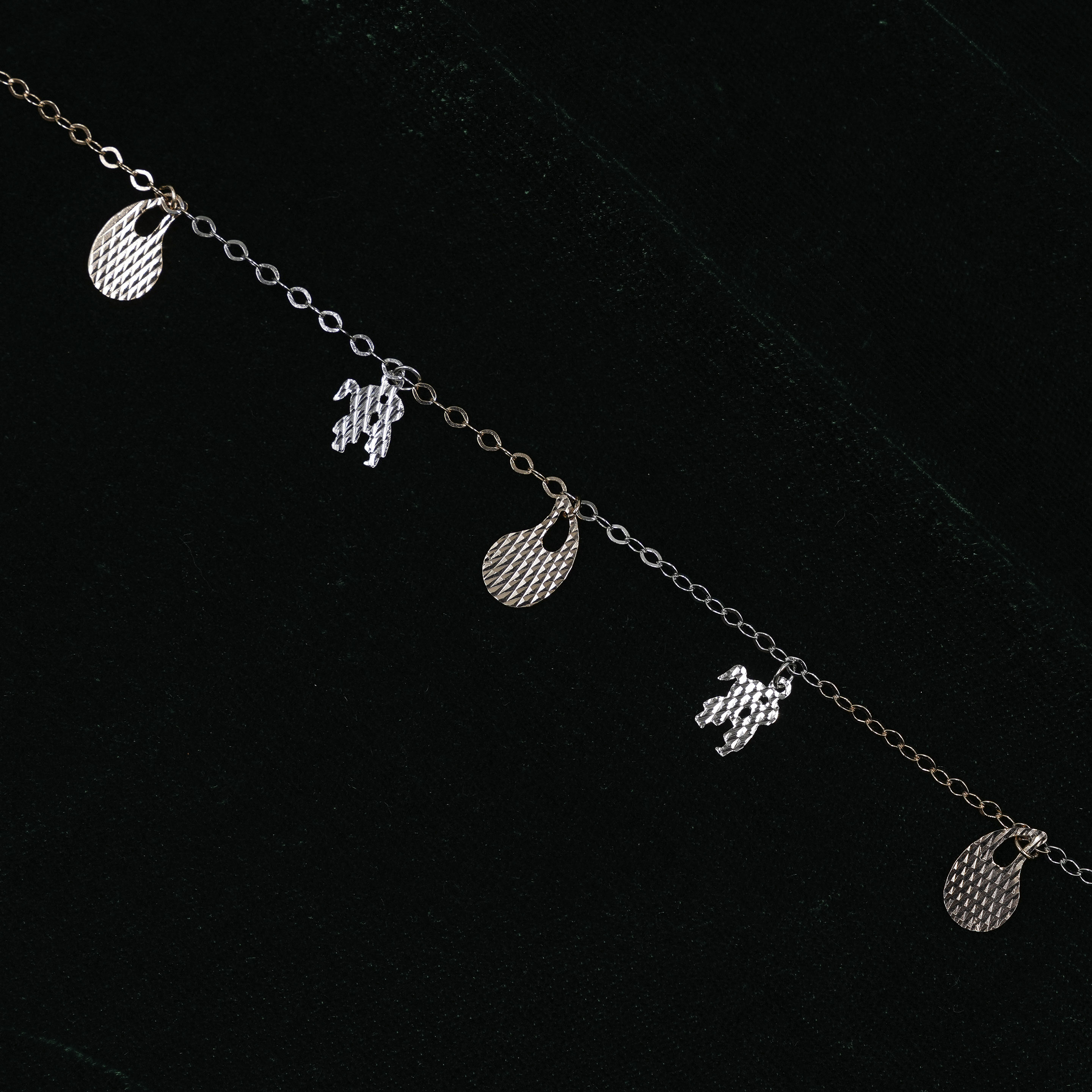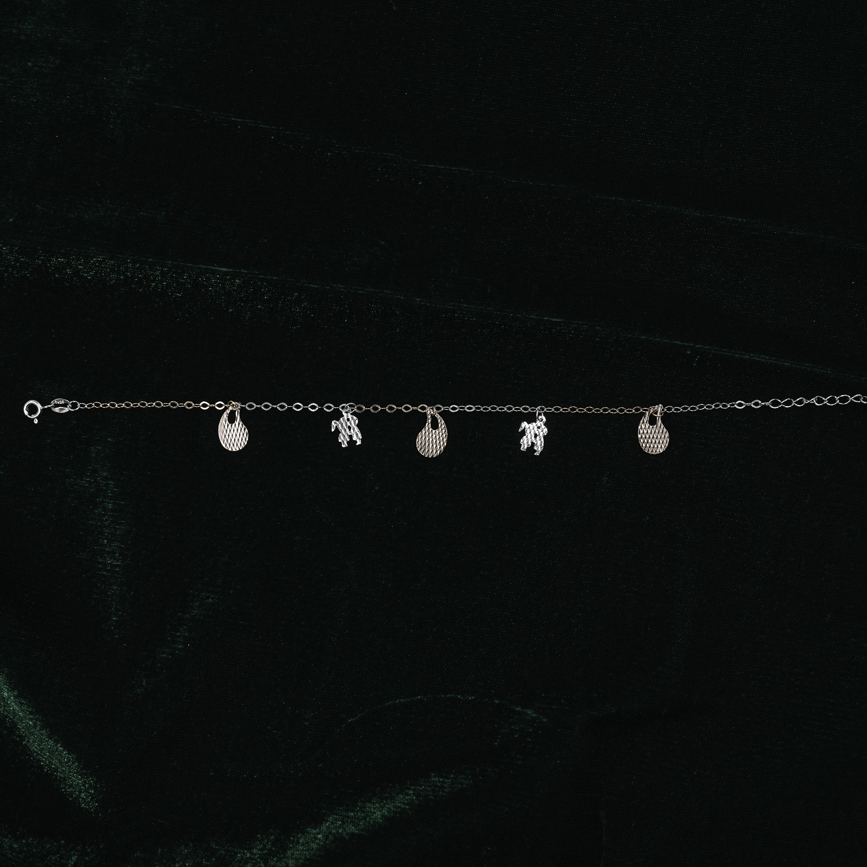 Elegant silver charm bracelet with drop pendants, perfect for daily wear. Buy silver charm bracelet from Raag Silver Jewellery in Hyderabad.