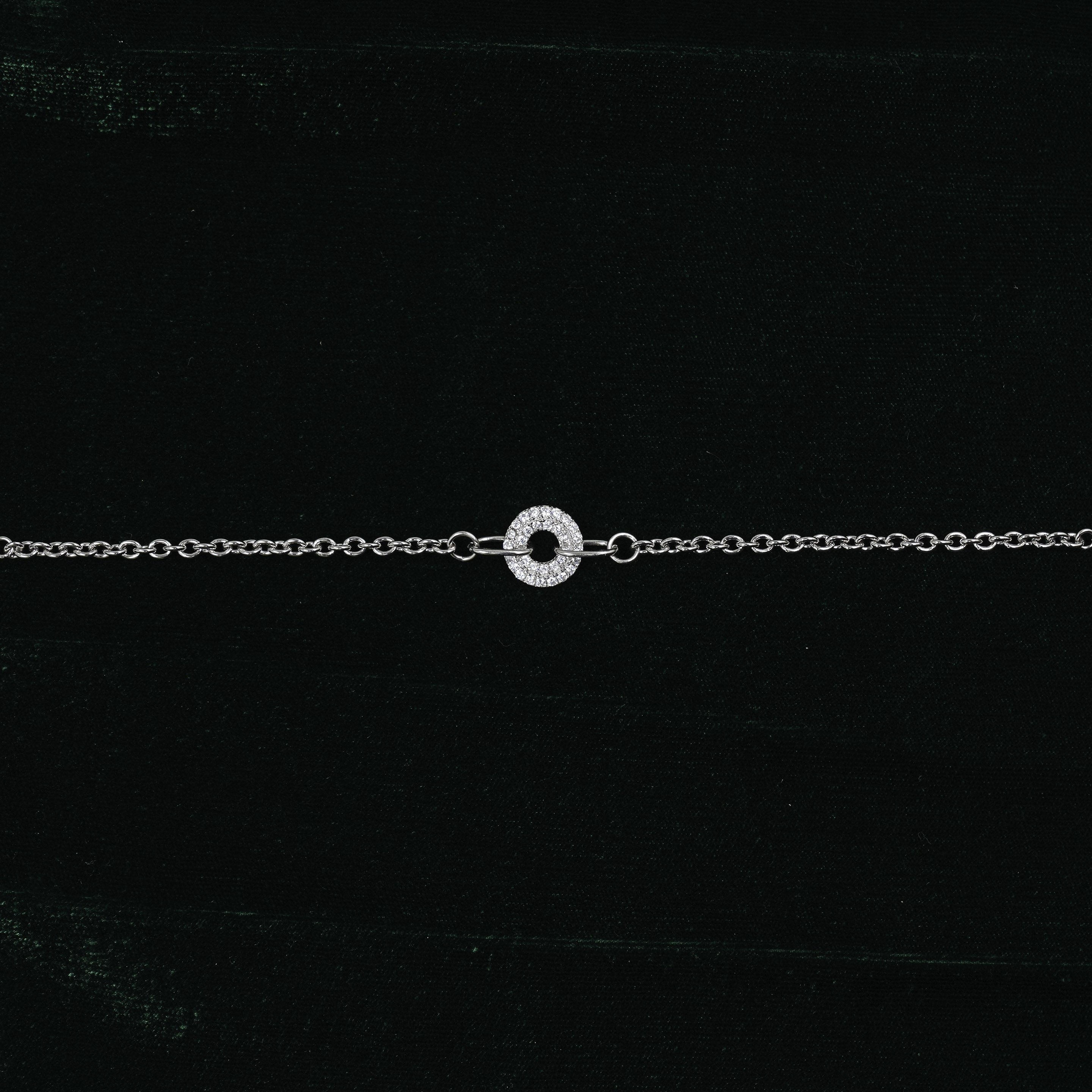 Elegant silver chain bracelet with a sparkling circle charm, a stylish accessory for everyday wear. Buy silver circle bracelet from Raag Silver Jewellery in Hyderabad.
