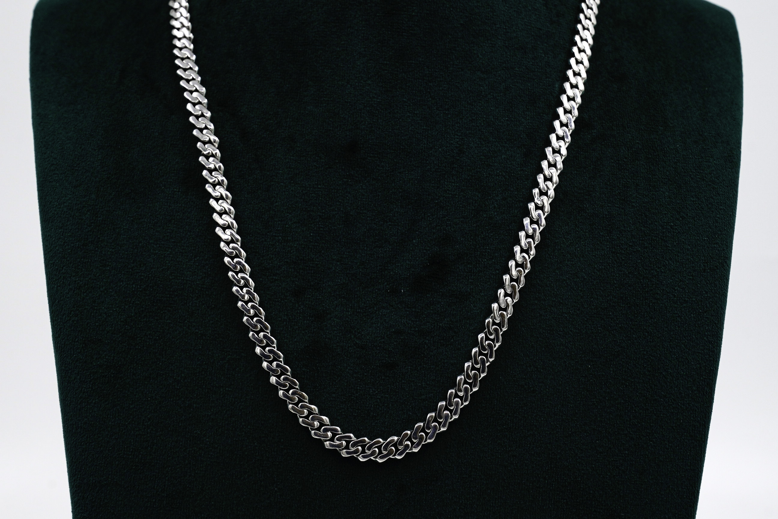 Classic silver curb chain necklace, perfect for everyday wear or special occasions. Buy Silver Curb Chain from Raag Silver Jewellery in Hyderabad.