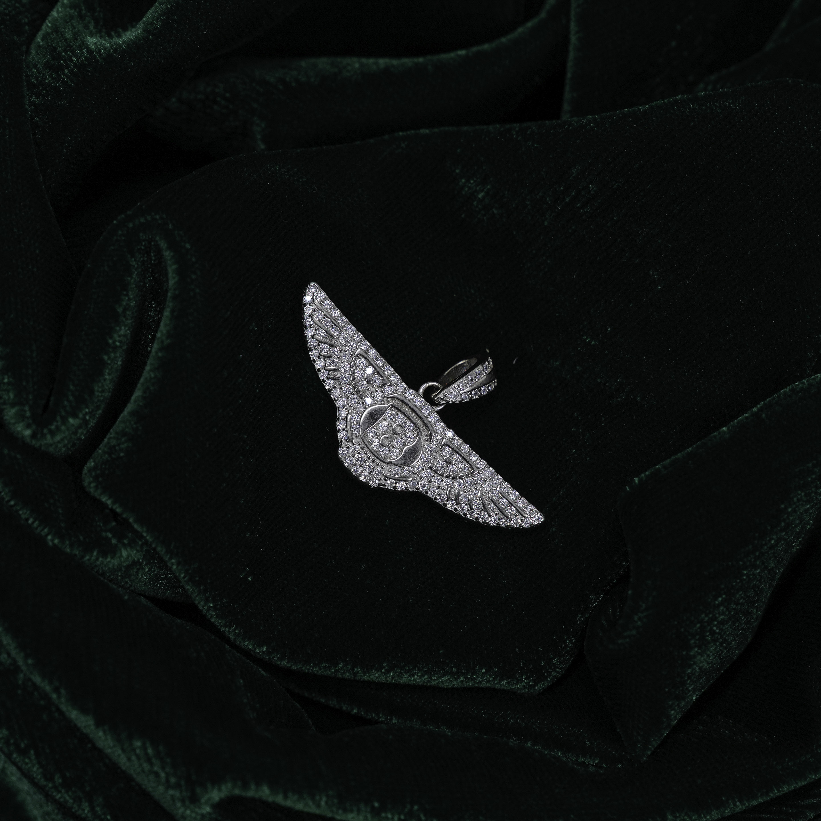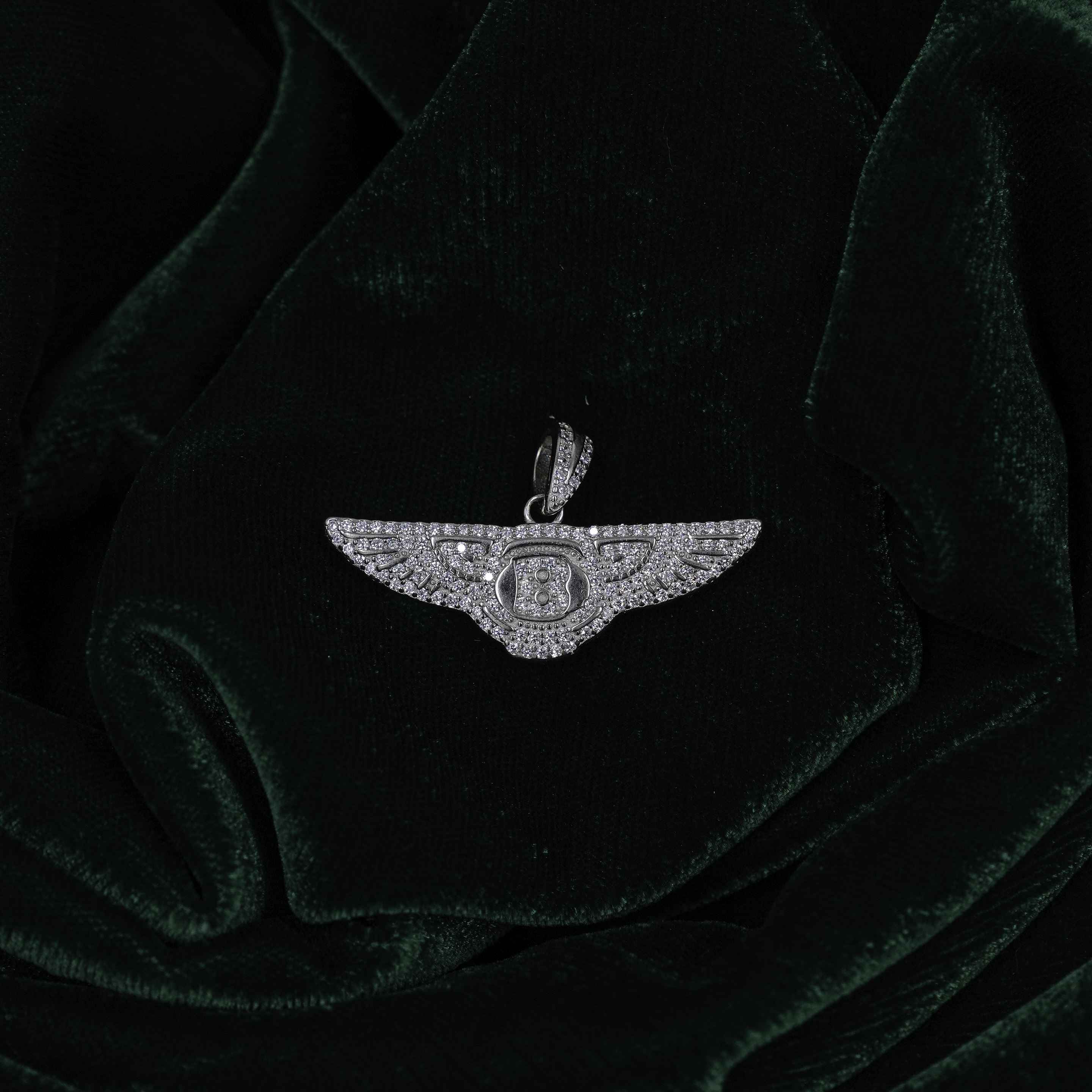 Silver Diamond Bentley Style Pendant Necklace Silver Finish