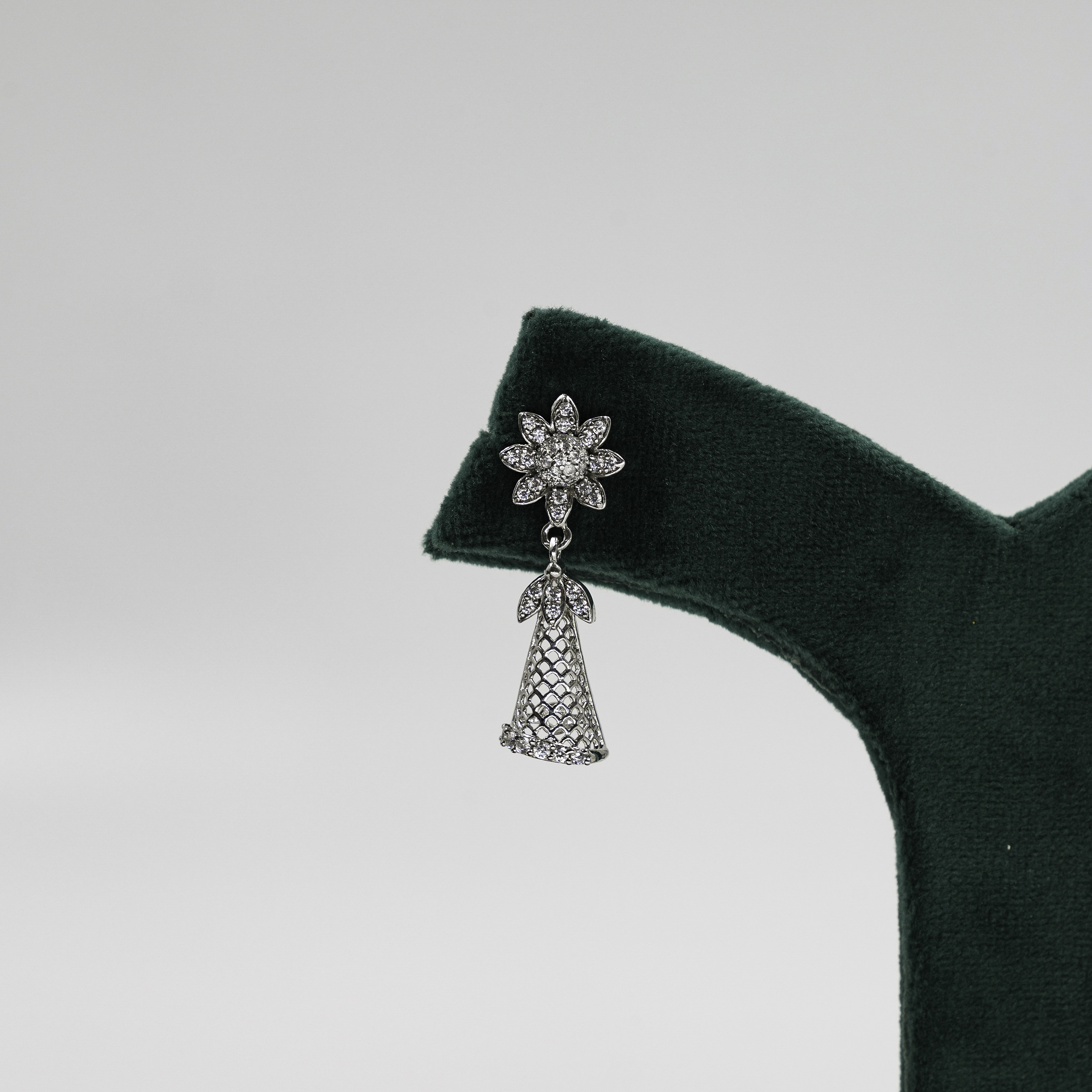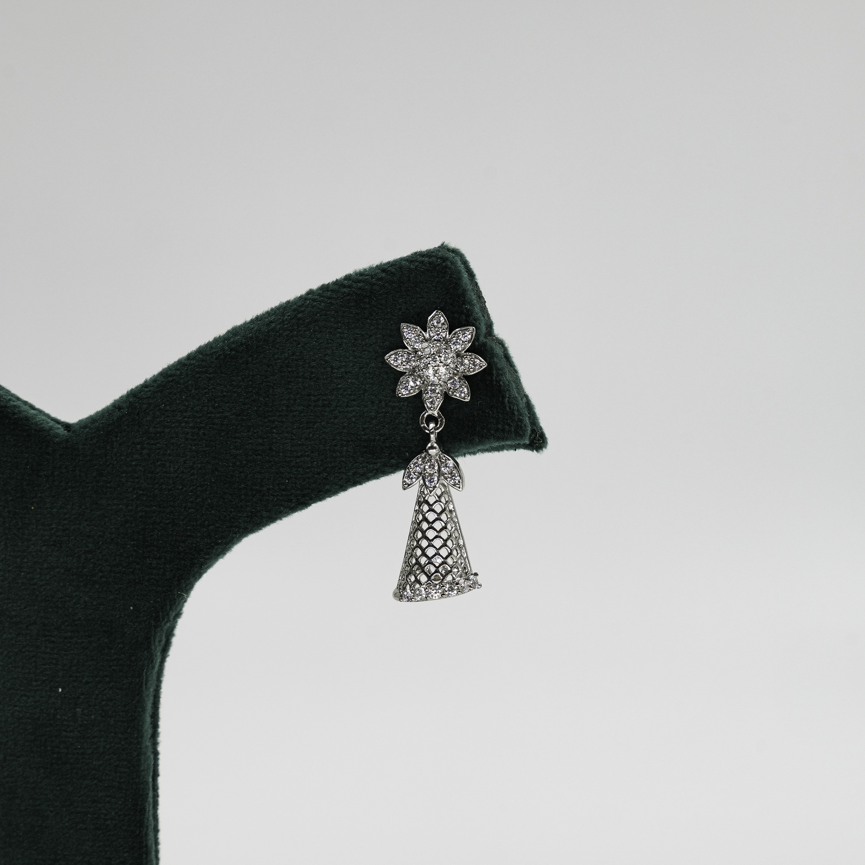 Elegant silver drop earrings with green accents, perfect for adding a touch of sparkle to any outfit. Buy Silver Drop Earrings from Raag Silver Jewellery in Hyderabad.