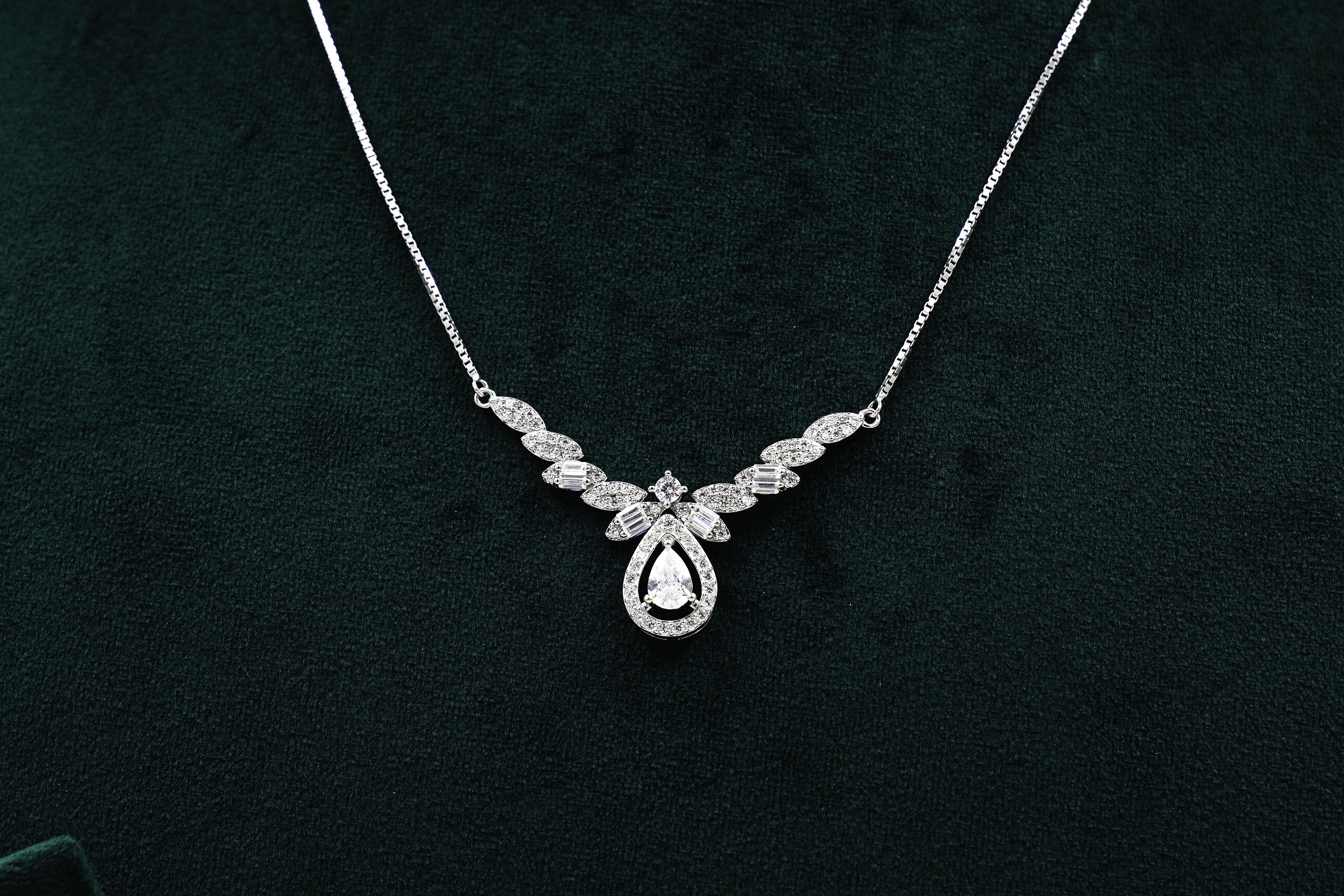 Elegant silver drop necklace, perfect for parties and special occasions. Buy Silver Drop Necklace from Raag Silver Jewellery in Hyderabad.
