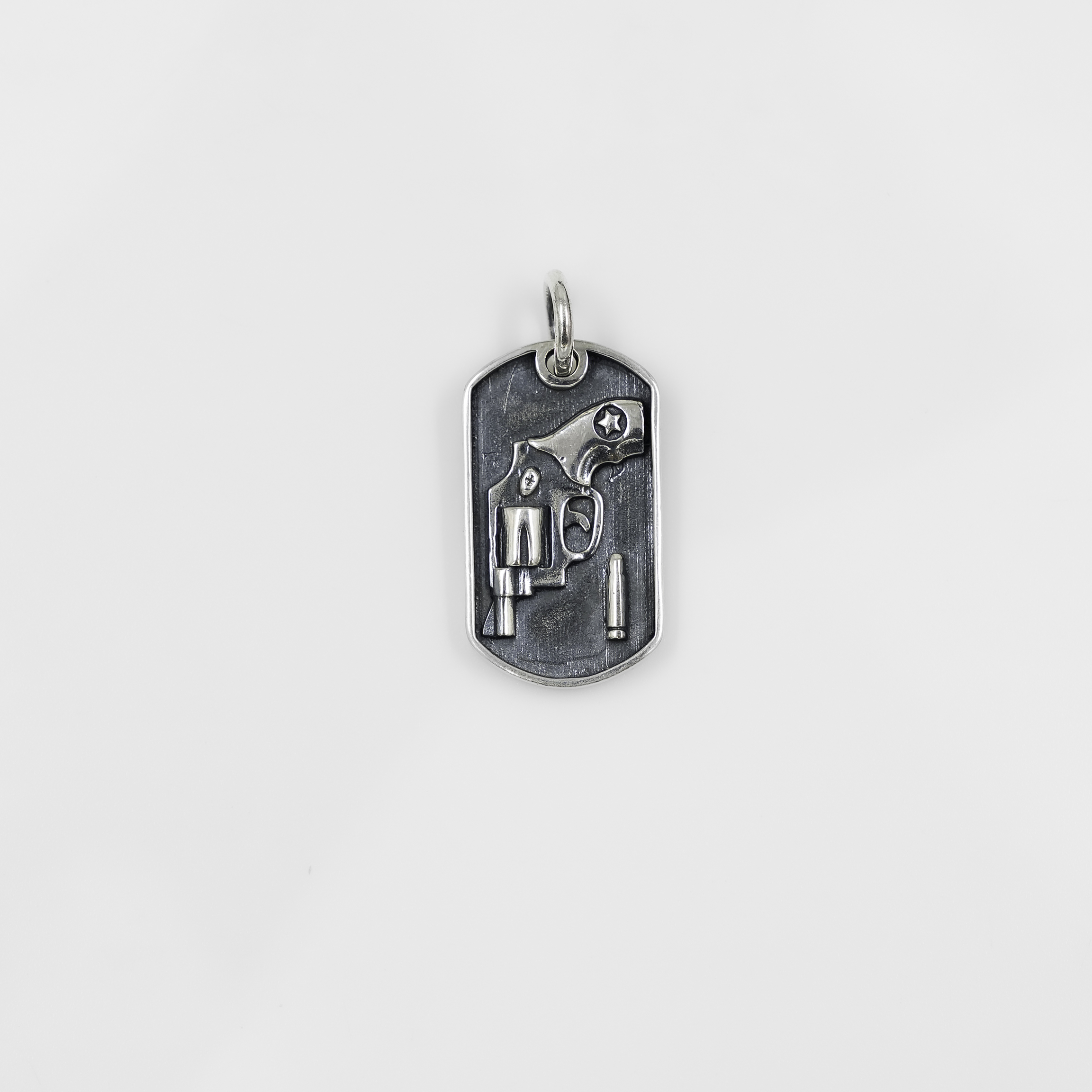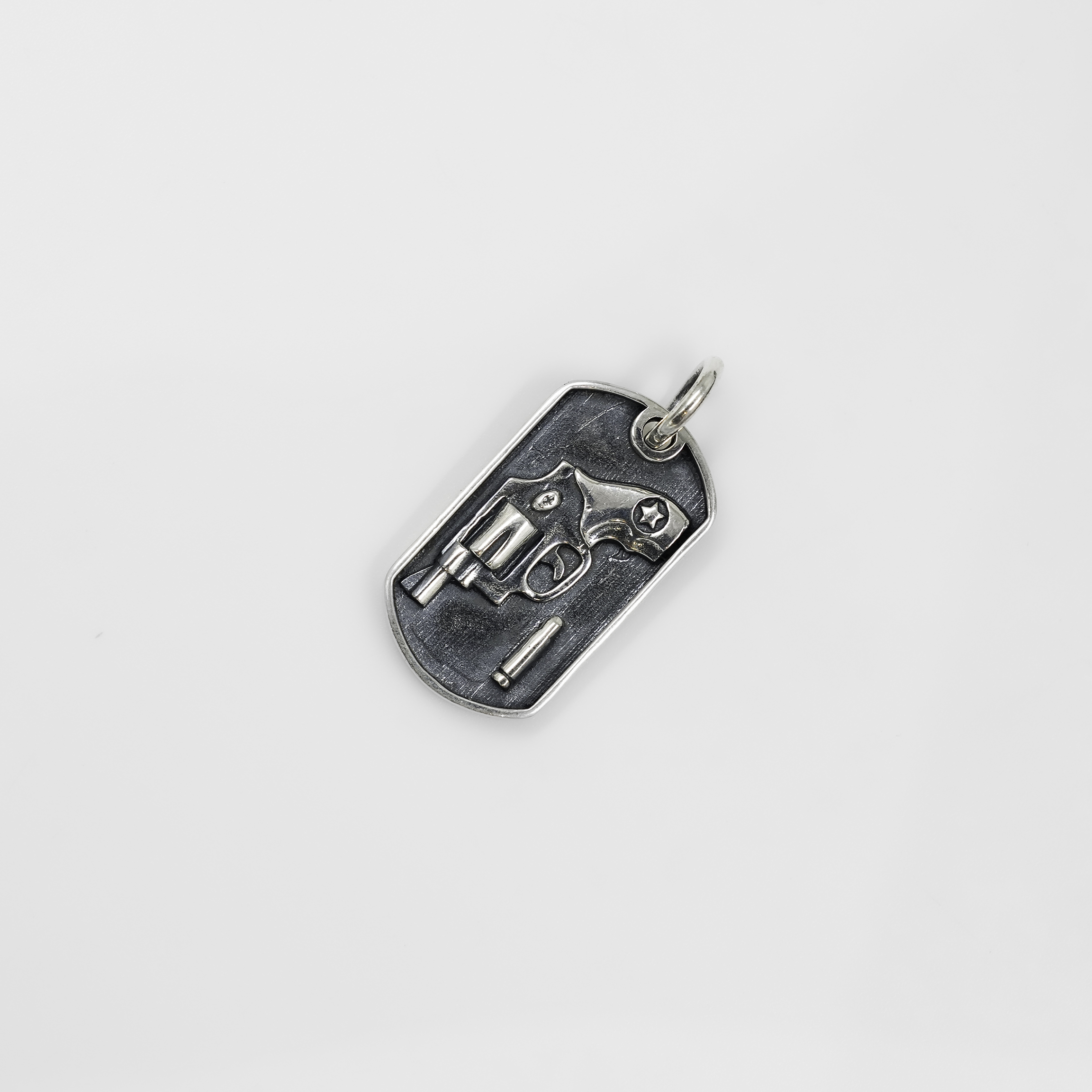 Silver Embossed Revolver Design Dog Tag Pendant Jewellery