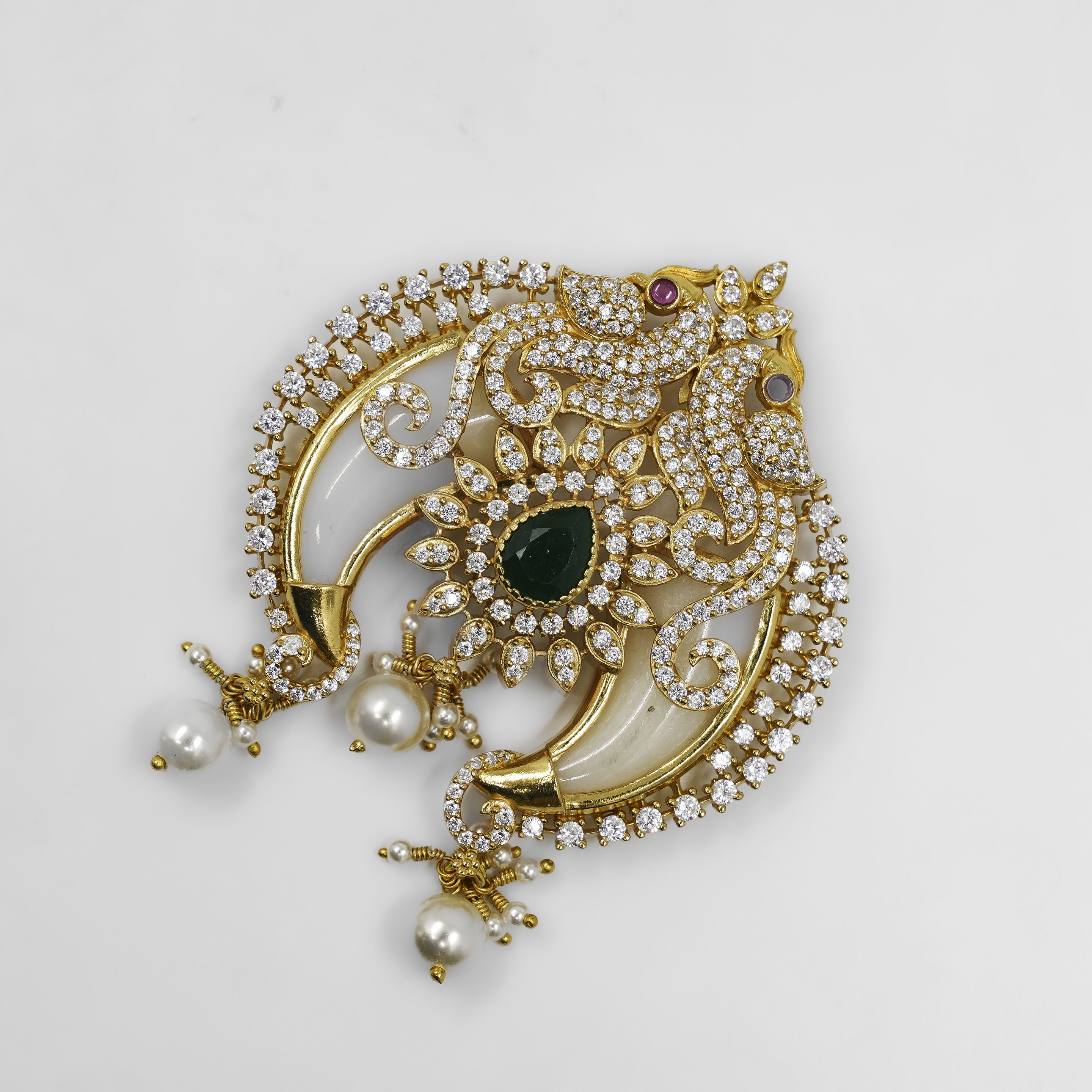 Elegant silver pendant with green emerald, perfect for traditional occasions. Buy silver emerald pendant from Raag Silver Jewellery in Hyderabad.
