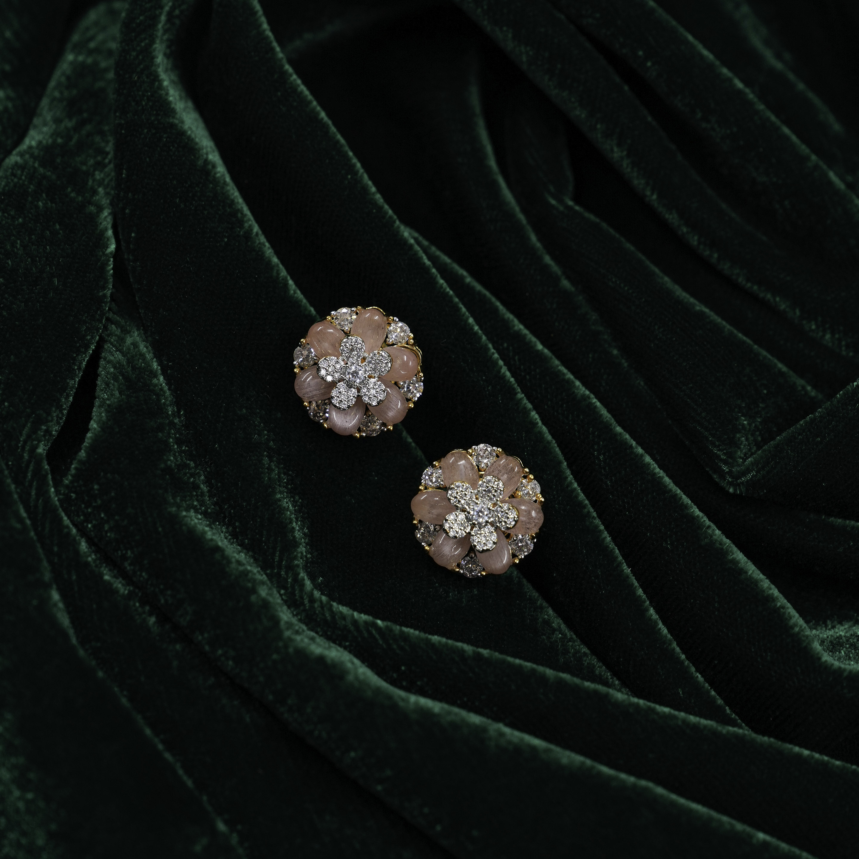 Elegant silver flower earrings with gemstone petals, perfect for special occasions and daily wear. Buy silver flower earrings from Raag Silver Jewellery in Hyderabad.