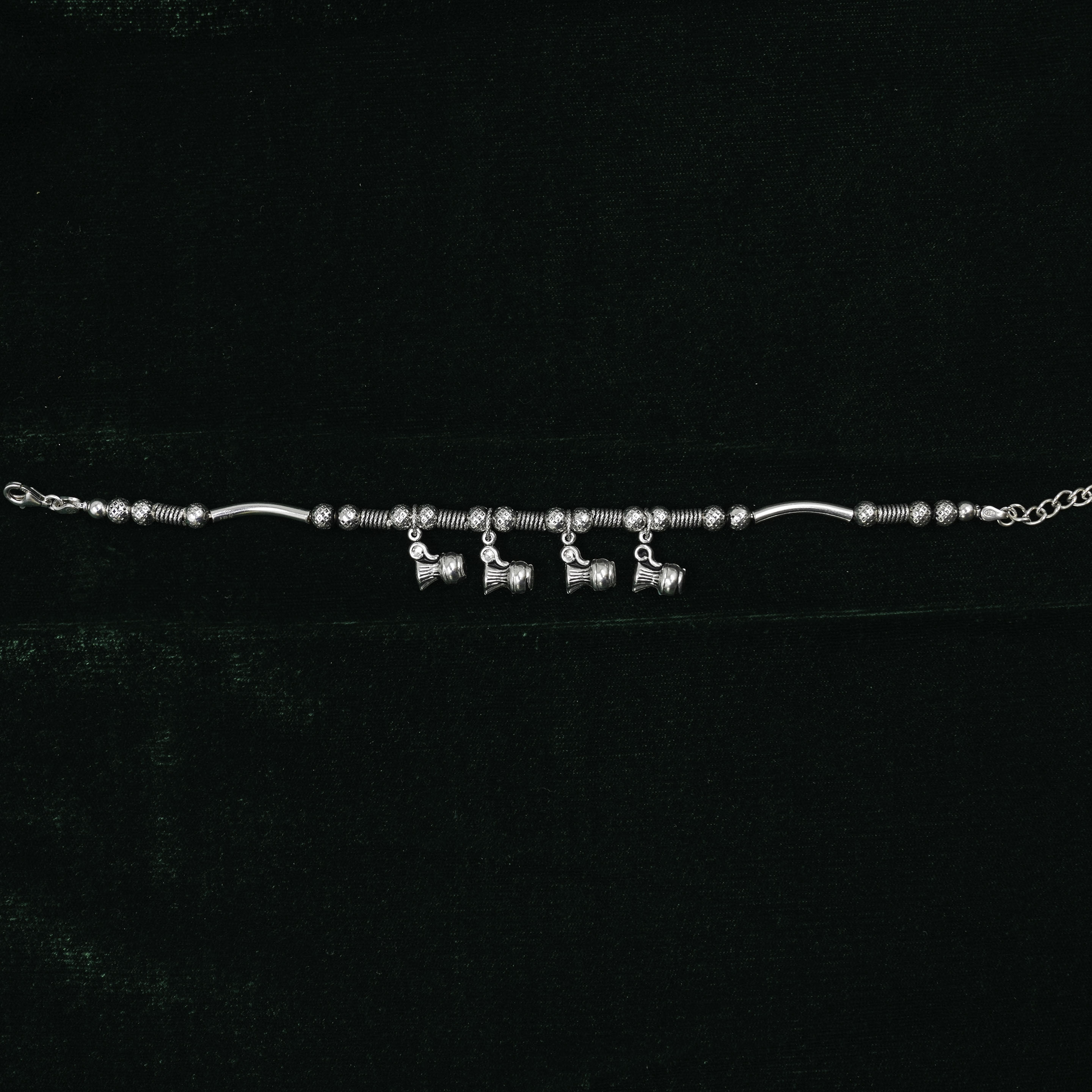 Elegant silver ghungroo anklet with intricate detailing, perfect for traditional attire. Buy silver ghungroo anklet from Raag Silver Jewellery in Hyderabad.