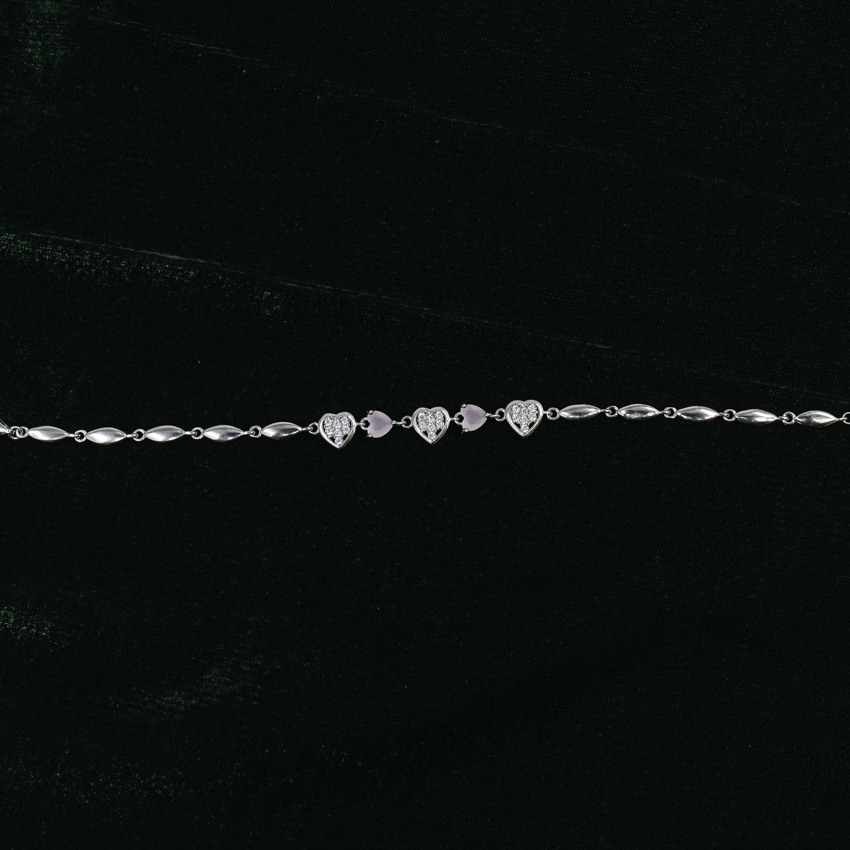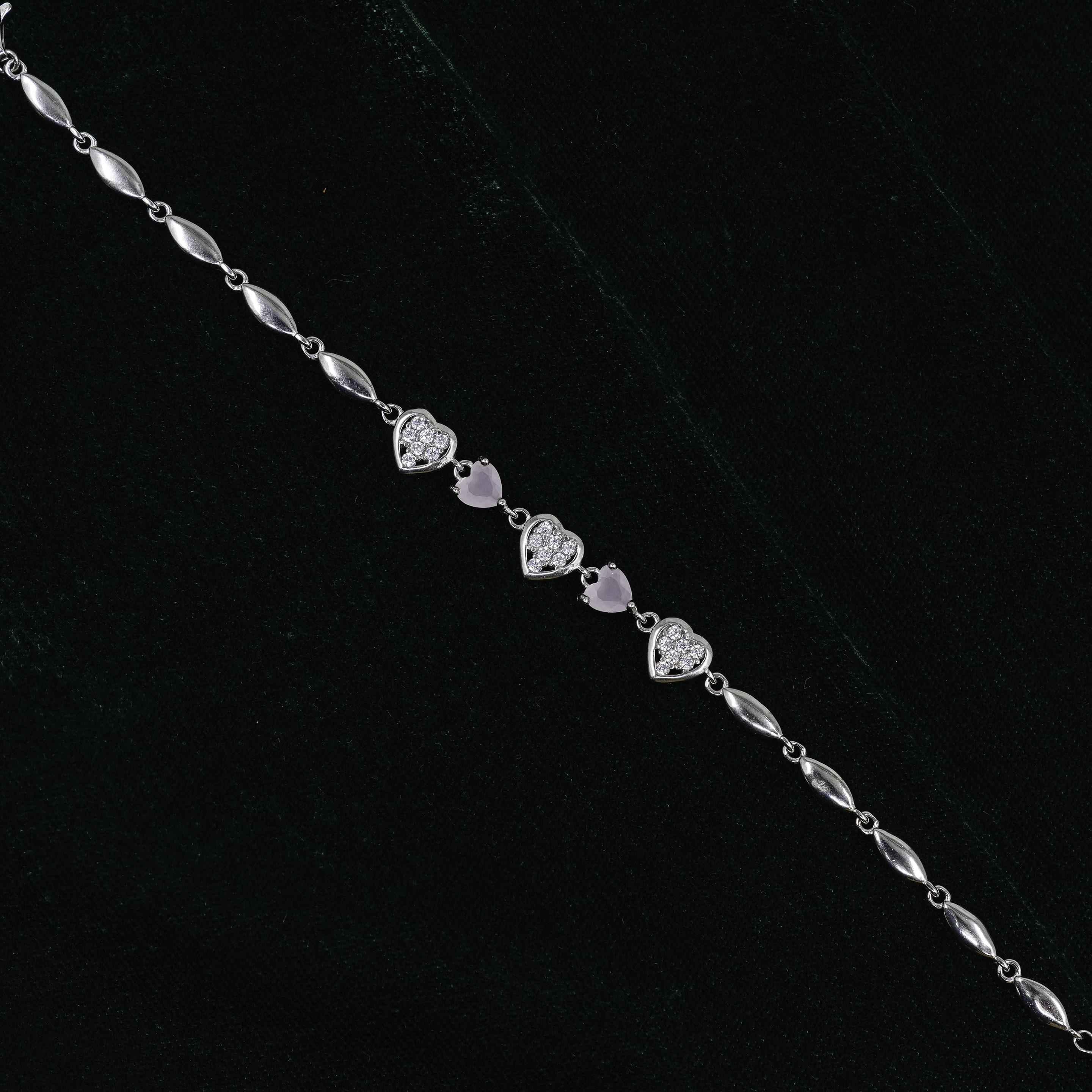 Elegant silver heart bracelet with rose quartz, perfect for girls and women. Buy silver heart bracelet from Raag Silver Jewellery in Hyderabad.