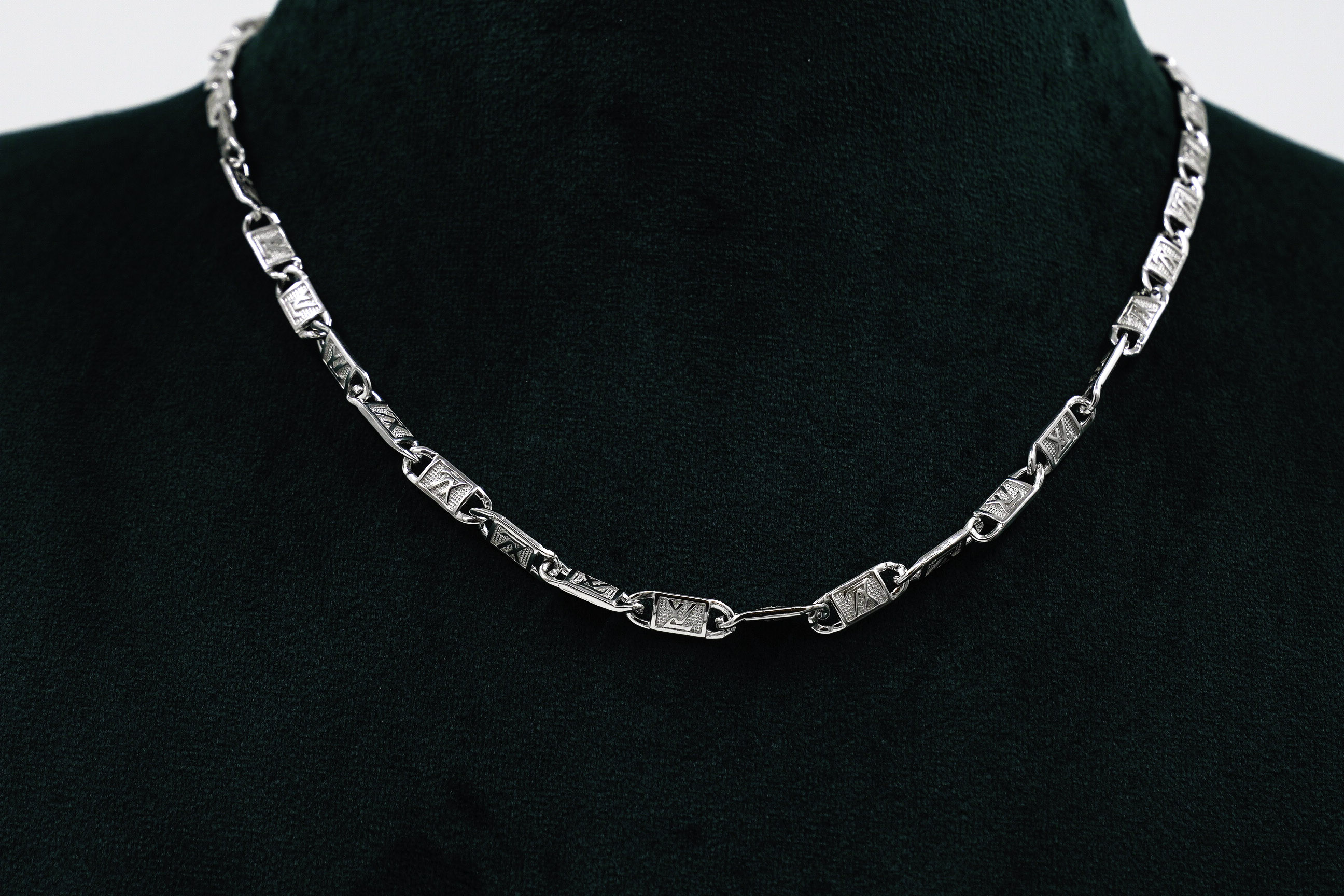 Elegant silver link necklace with a unique design, perfect for everyday wear or special occasions. Buy silver link necklace from Raag Silver Jewellery in Hyderabad.