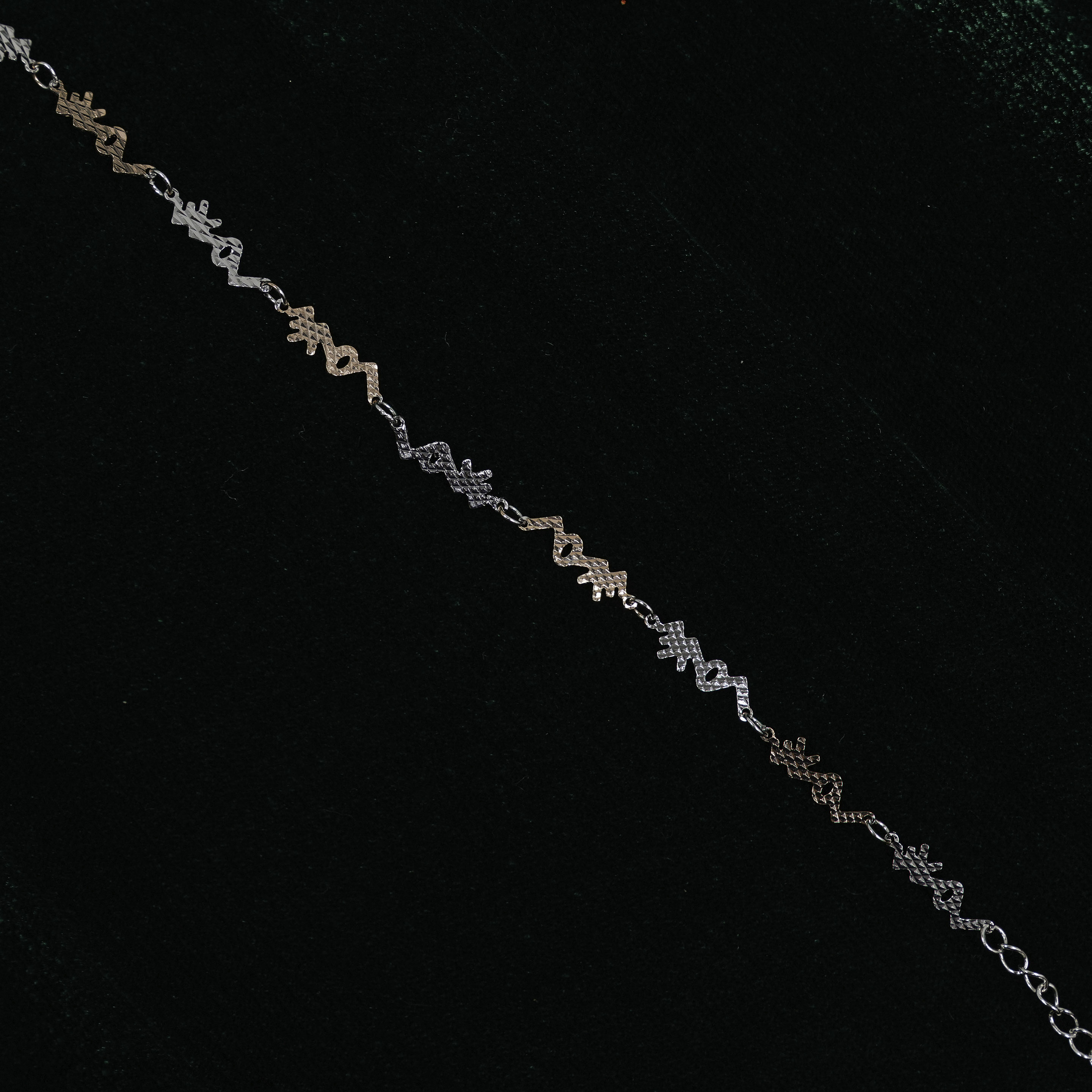 Elegant silver Love script bracelet, perfect for gifting and everyday wear. Buy Silver Love Bracelet from Raag Silver Jewellery in Hyderabad.