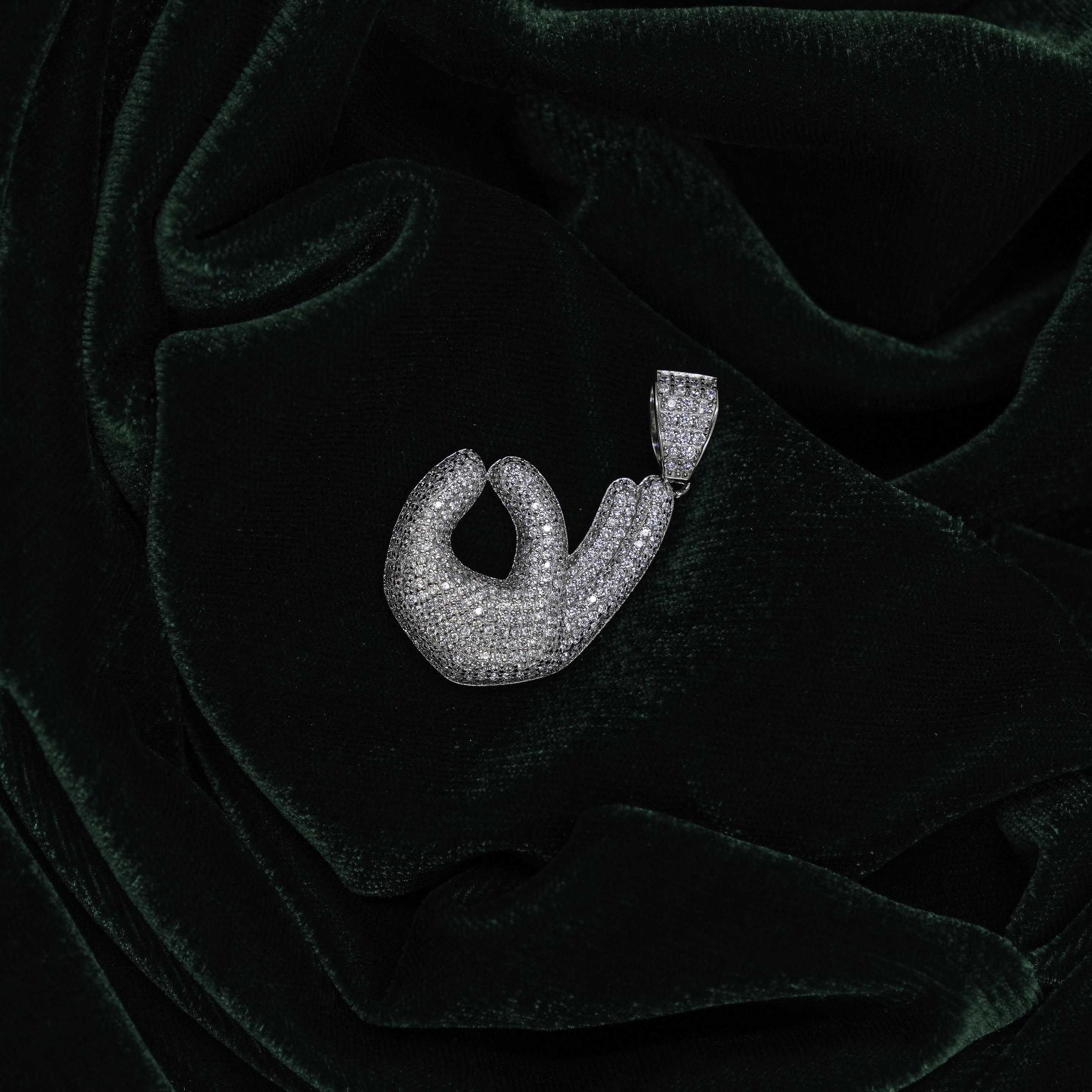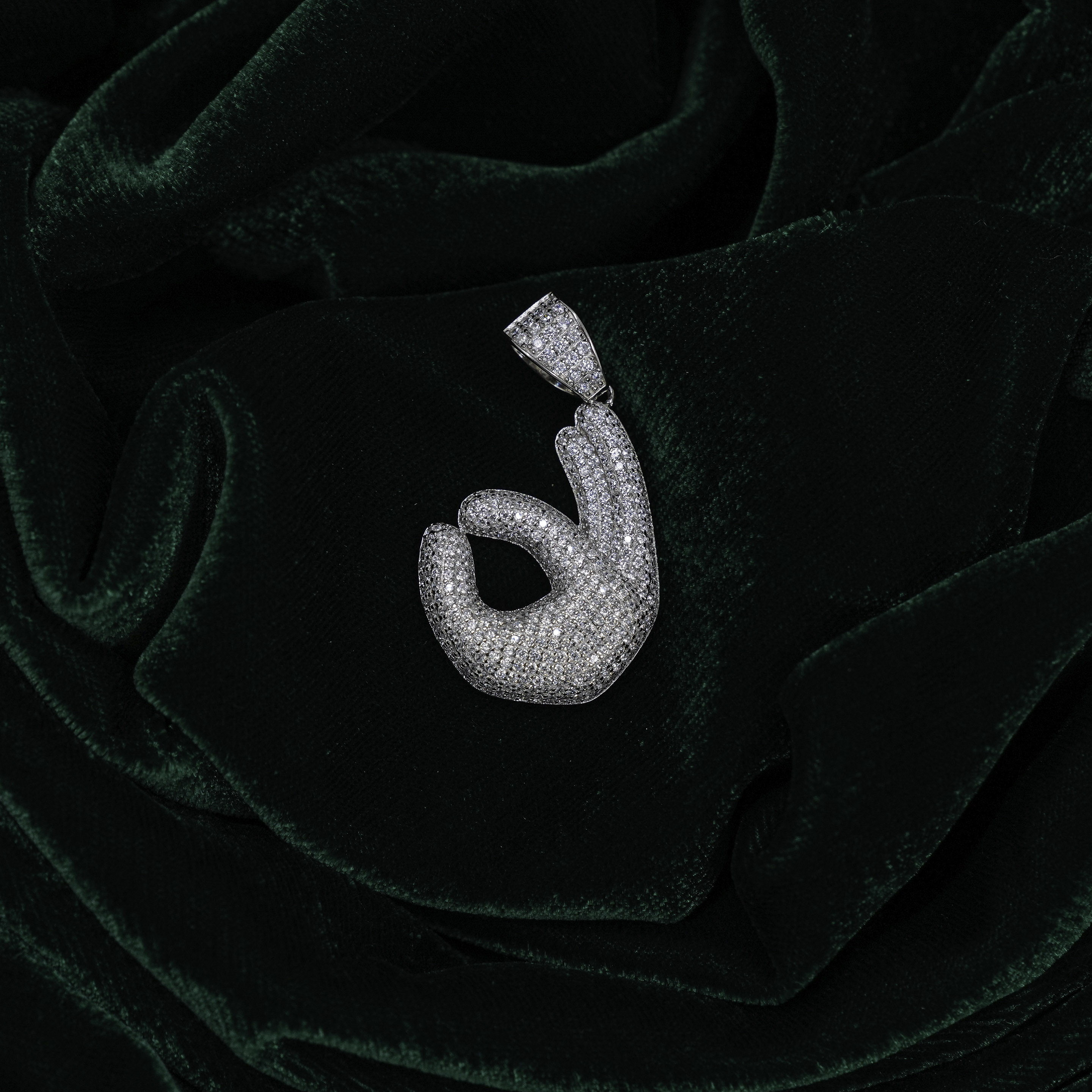 Silver Okay Hand Gesture Silver Pendant White Gemstone Finish