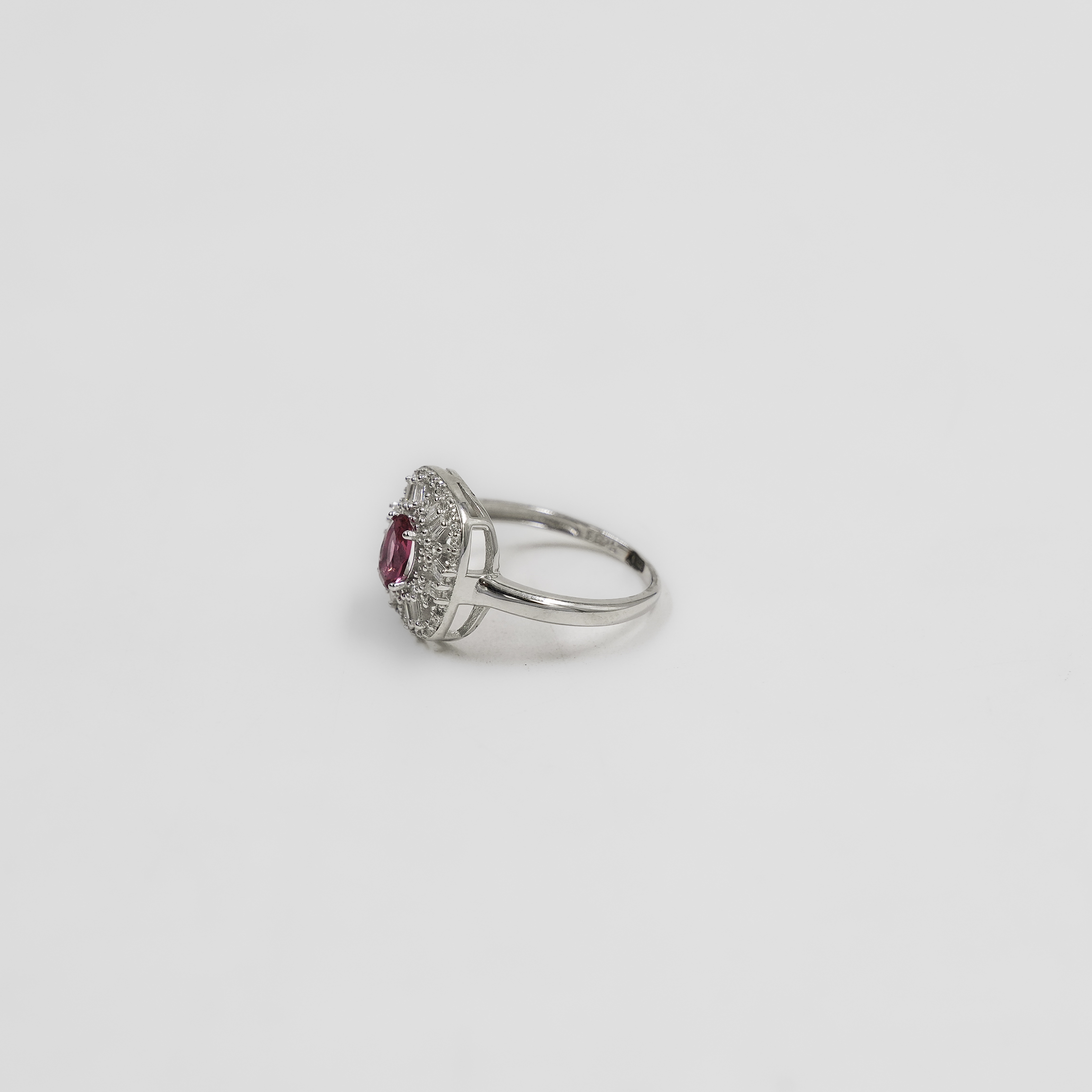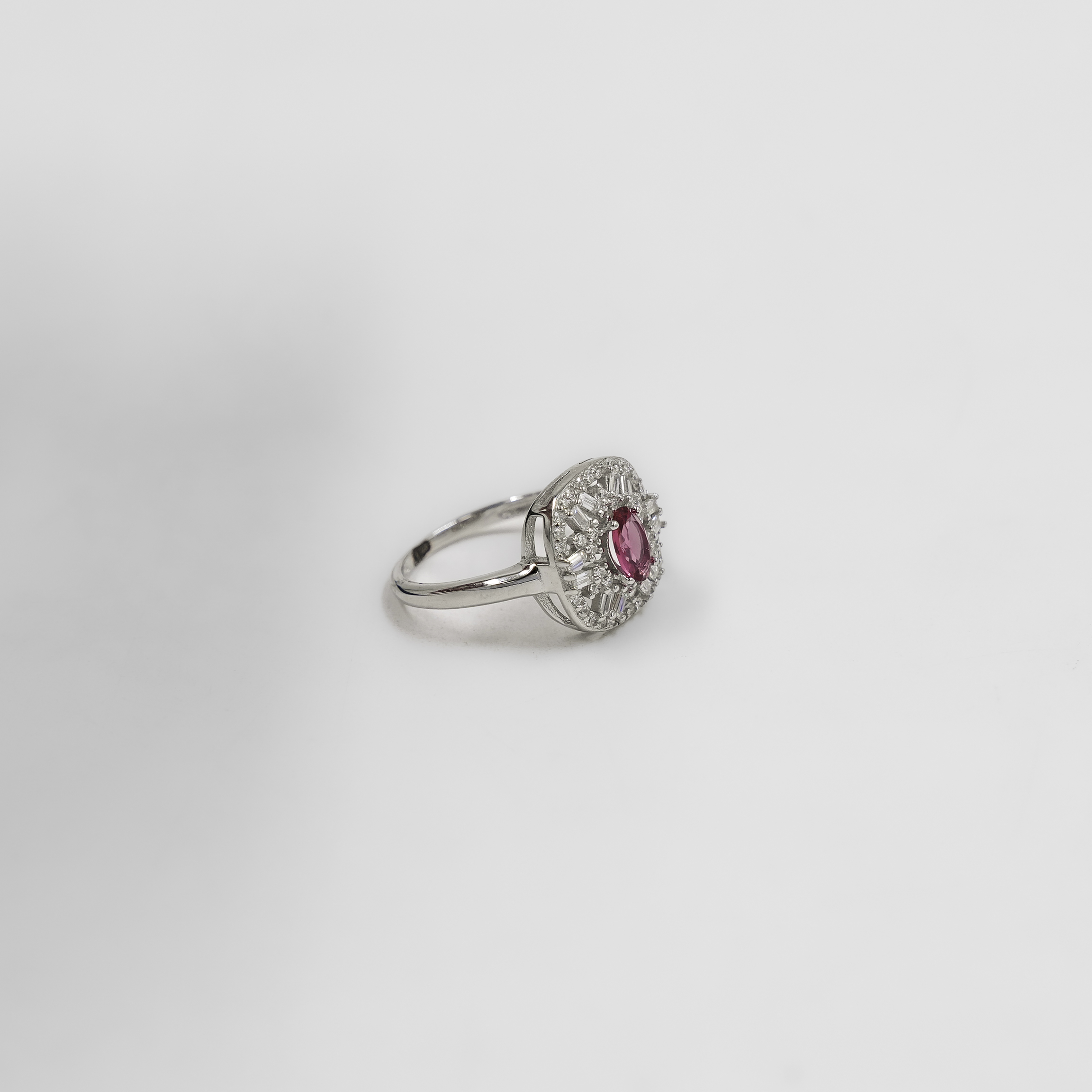 Silver Oval Cut Pink Stone Ring With Embellished Diamond Detailing