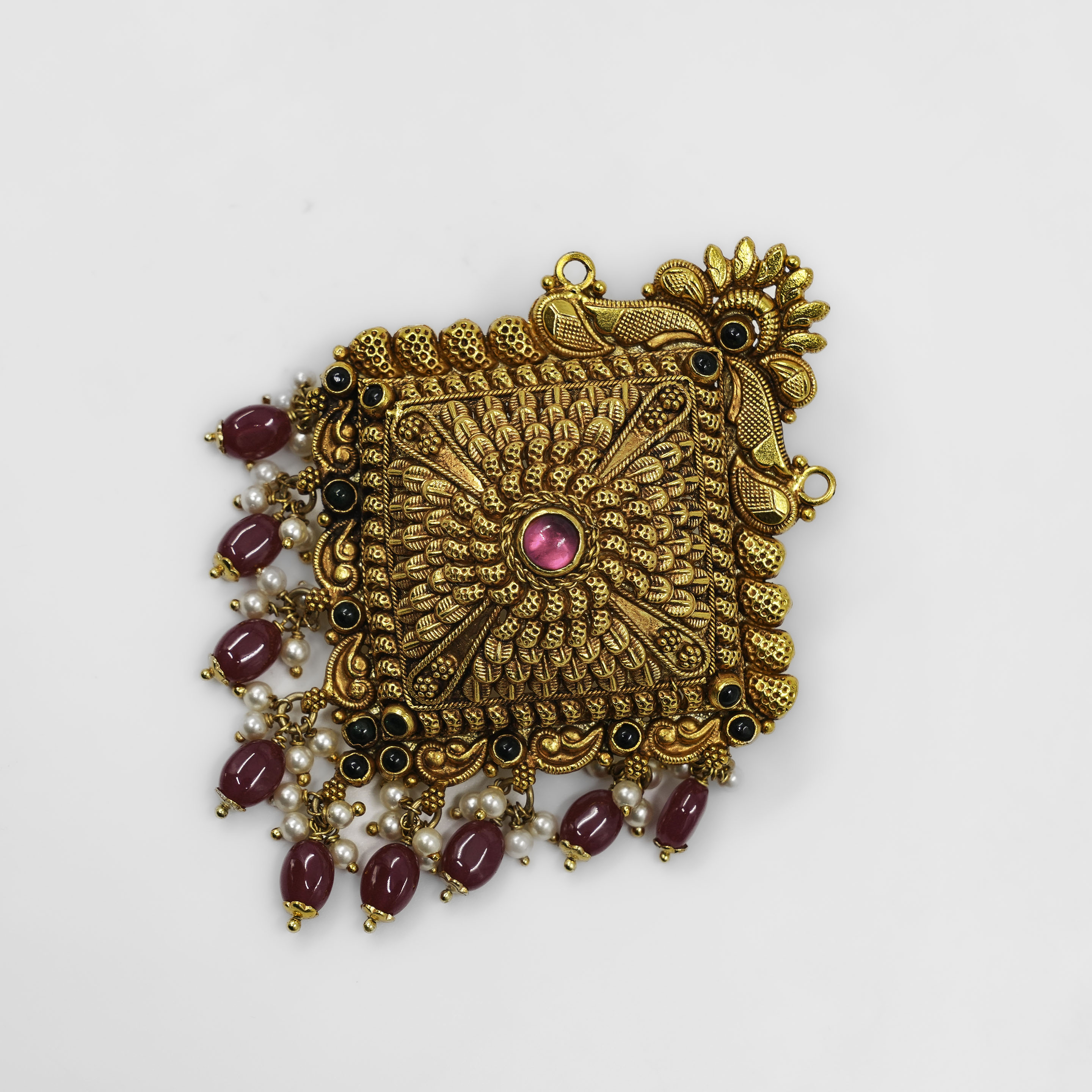 Ornate silver pendant necklace with gemstone accents, ideal for festive occasions and cultural events. Buy from Raag Silver Jewellery in Hyderabad.