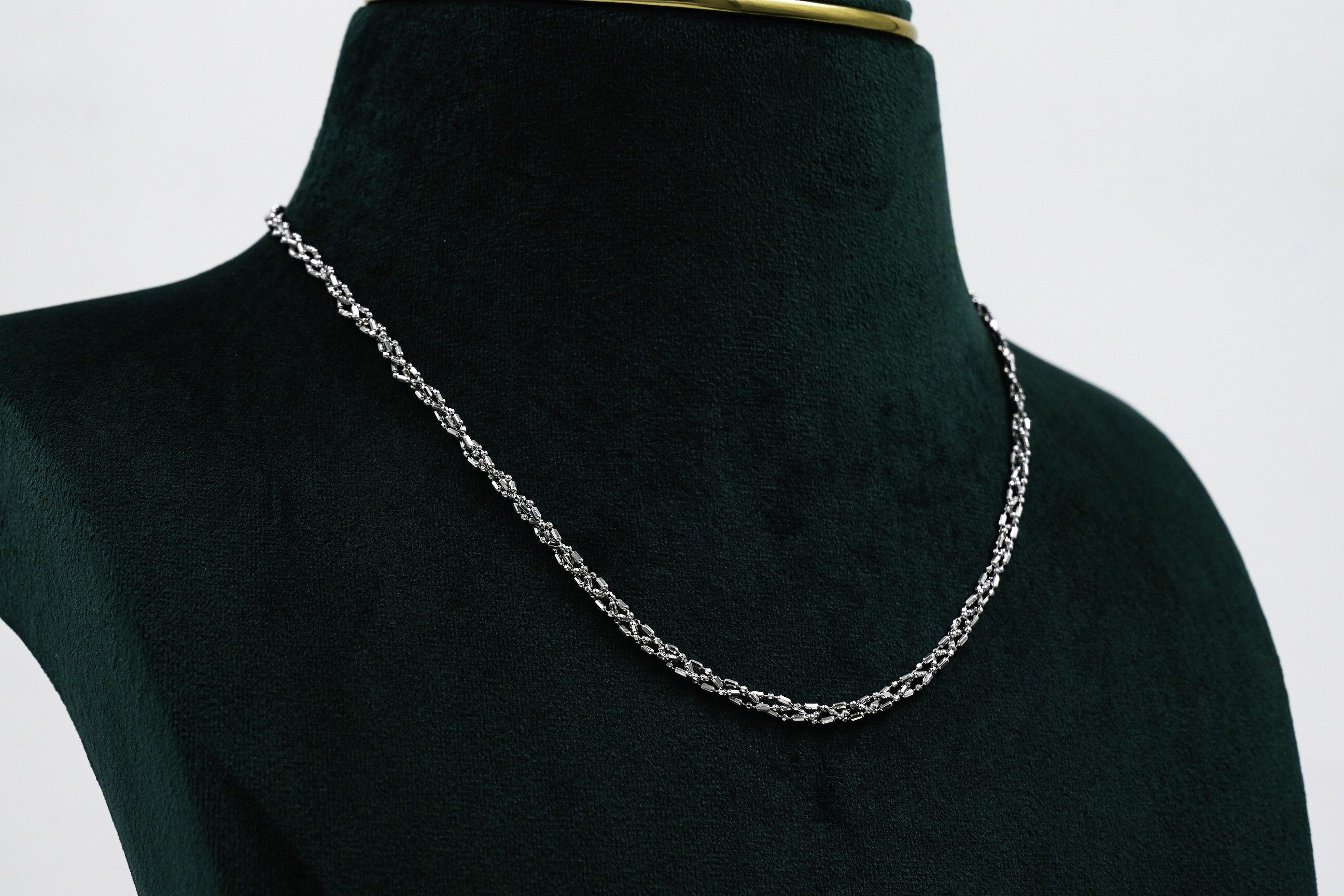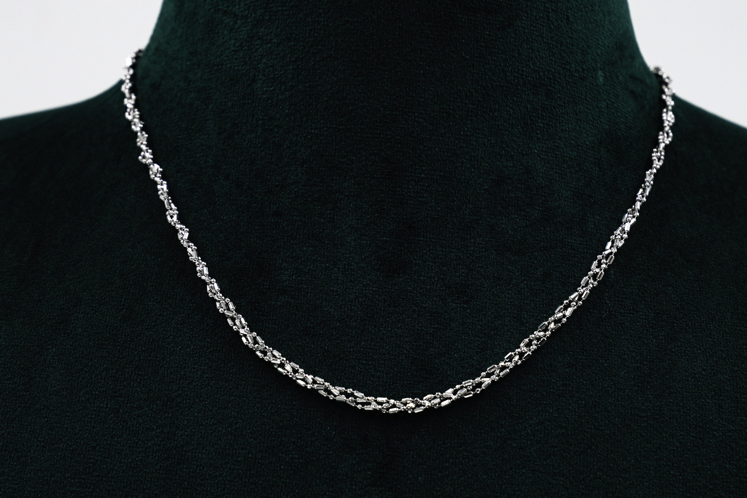 Classic silver rope chain necklace, a timeless accessory suitable for everyday wear or special occasions. Buy Silver Rope Chain from Raag Silver Jewellery in Hyderabad.