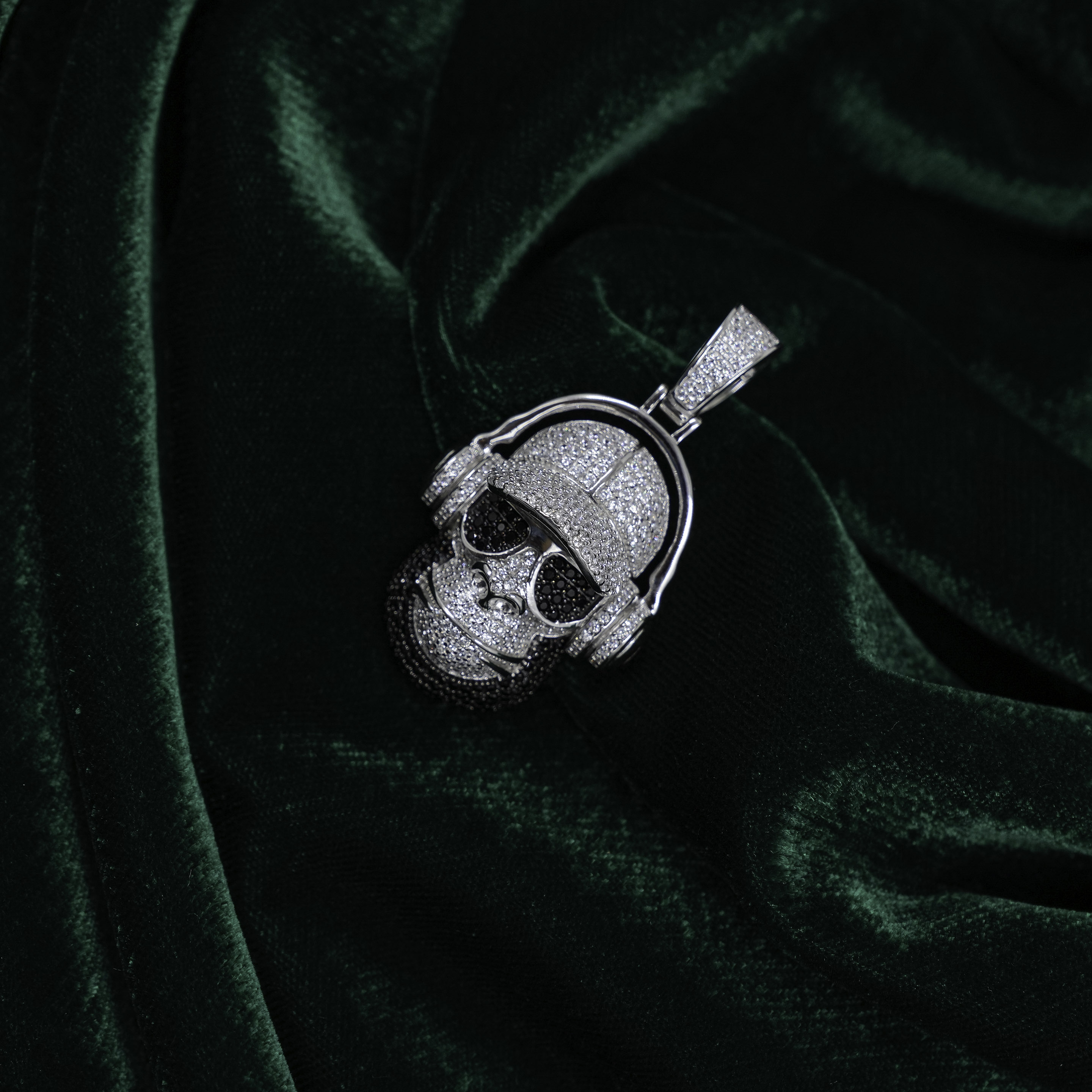 Silver Skull Design With Headphones Rhodium Finish Pendant