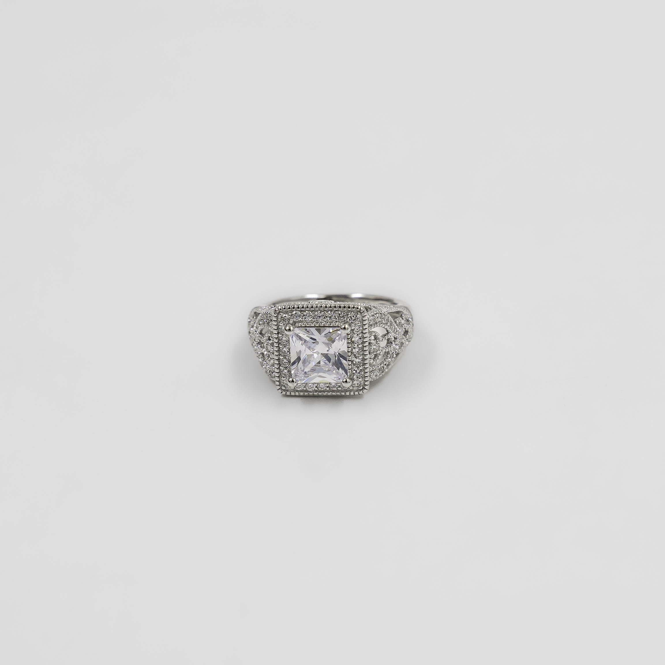 Silver Jewellery Square Cut Cubic Zirconia Sterling Silver Ring Set