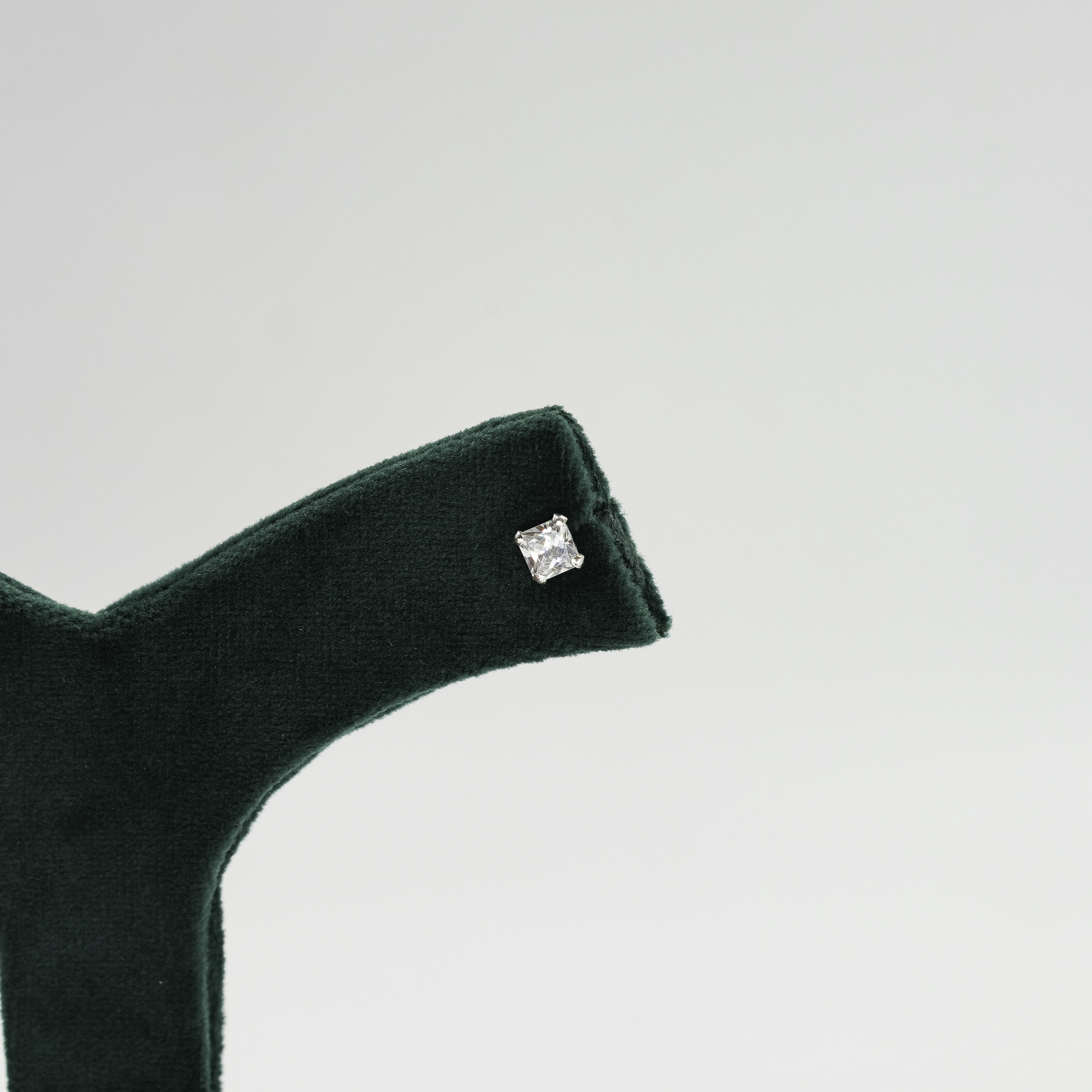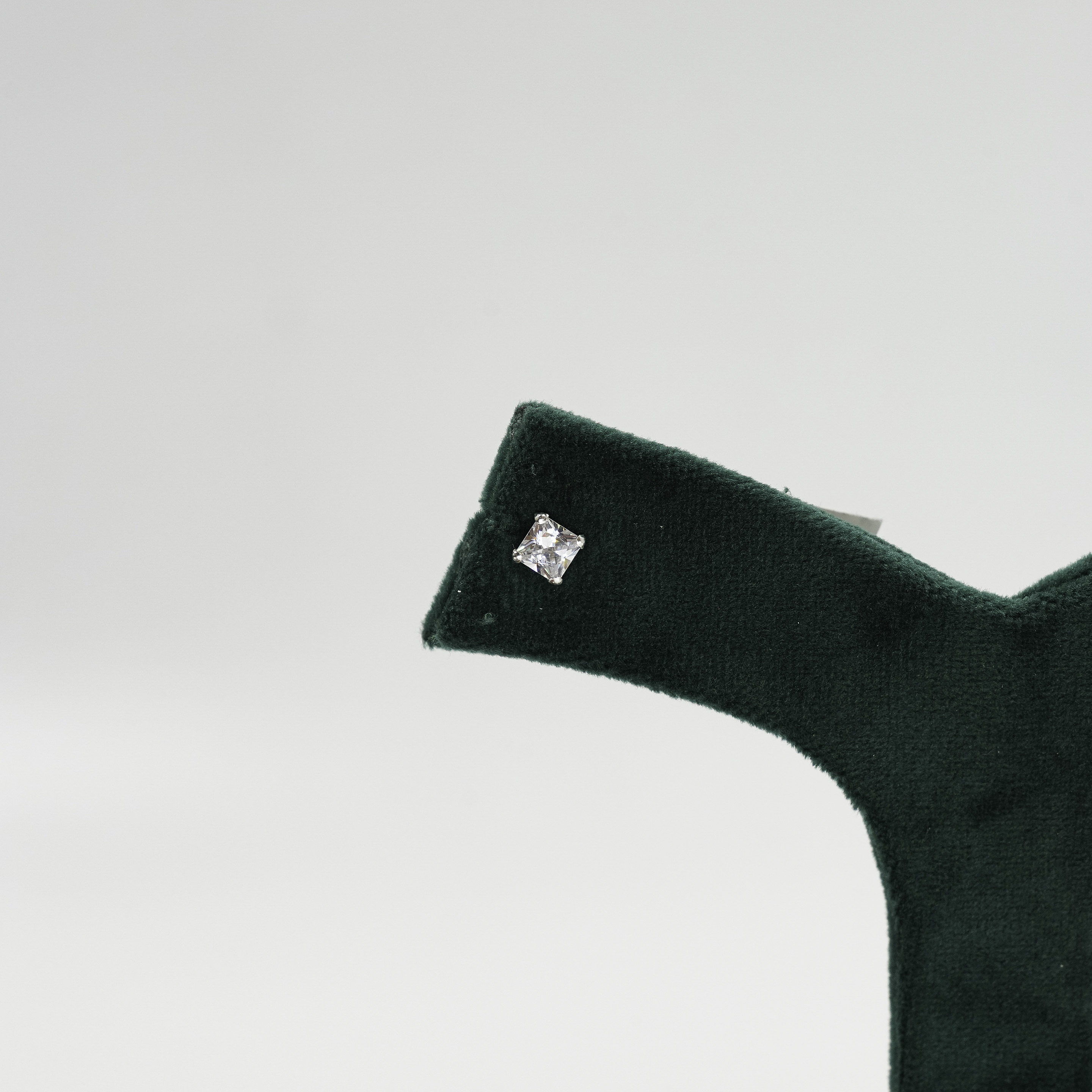 Classic silver stud earrings with square cubic zirconia, perfect for everyday wear or special occasions. Buy silver stud earrings from Raag Silver Jewellery in Hyderabad.