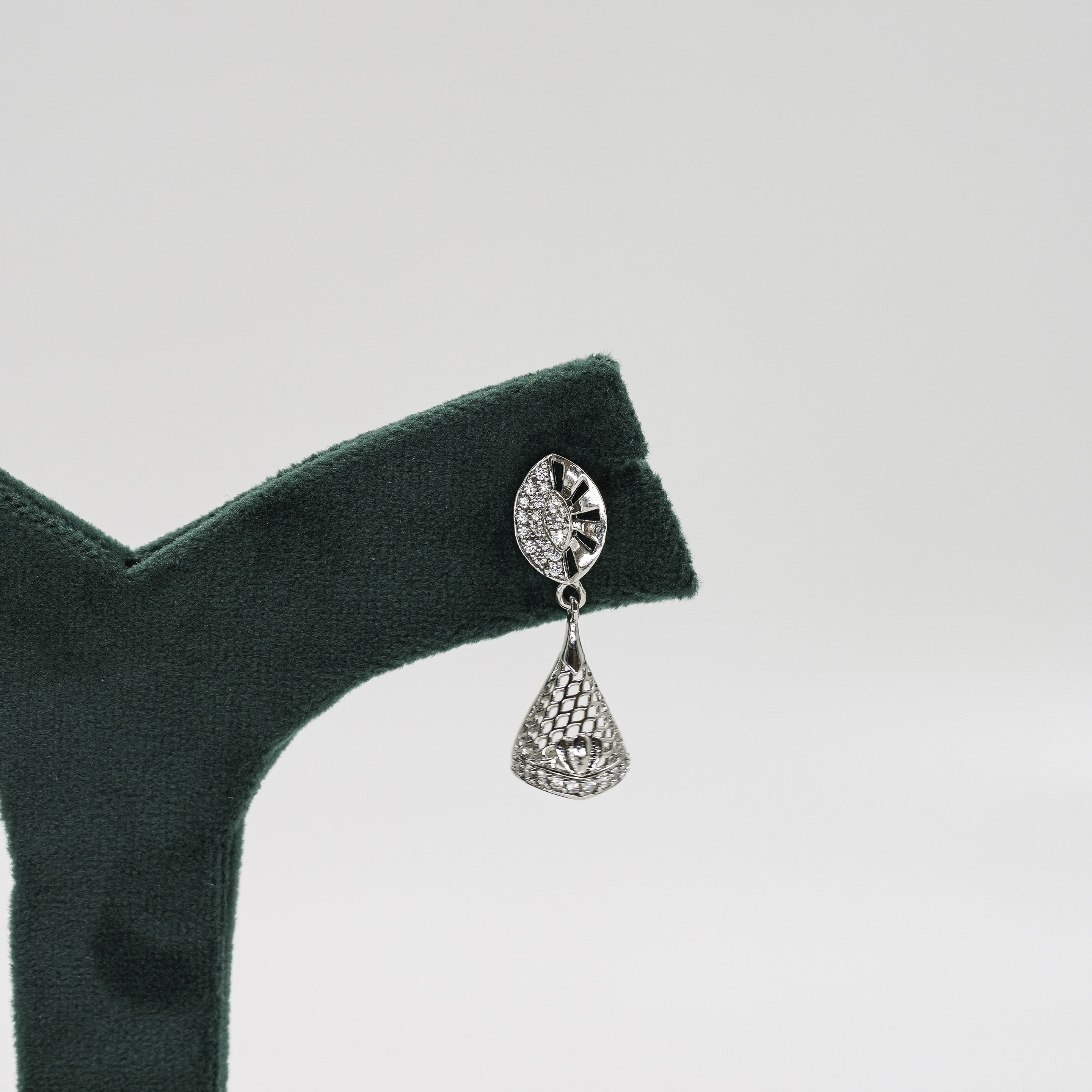 Elegant silver stud earrings with intricate detailing, perfect for daily wear or special occasions. Buy Silver Stud Earrings from Raag Silver Jewellery in Hyderabad.