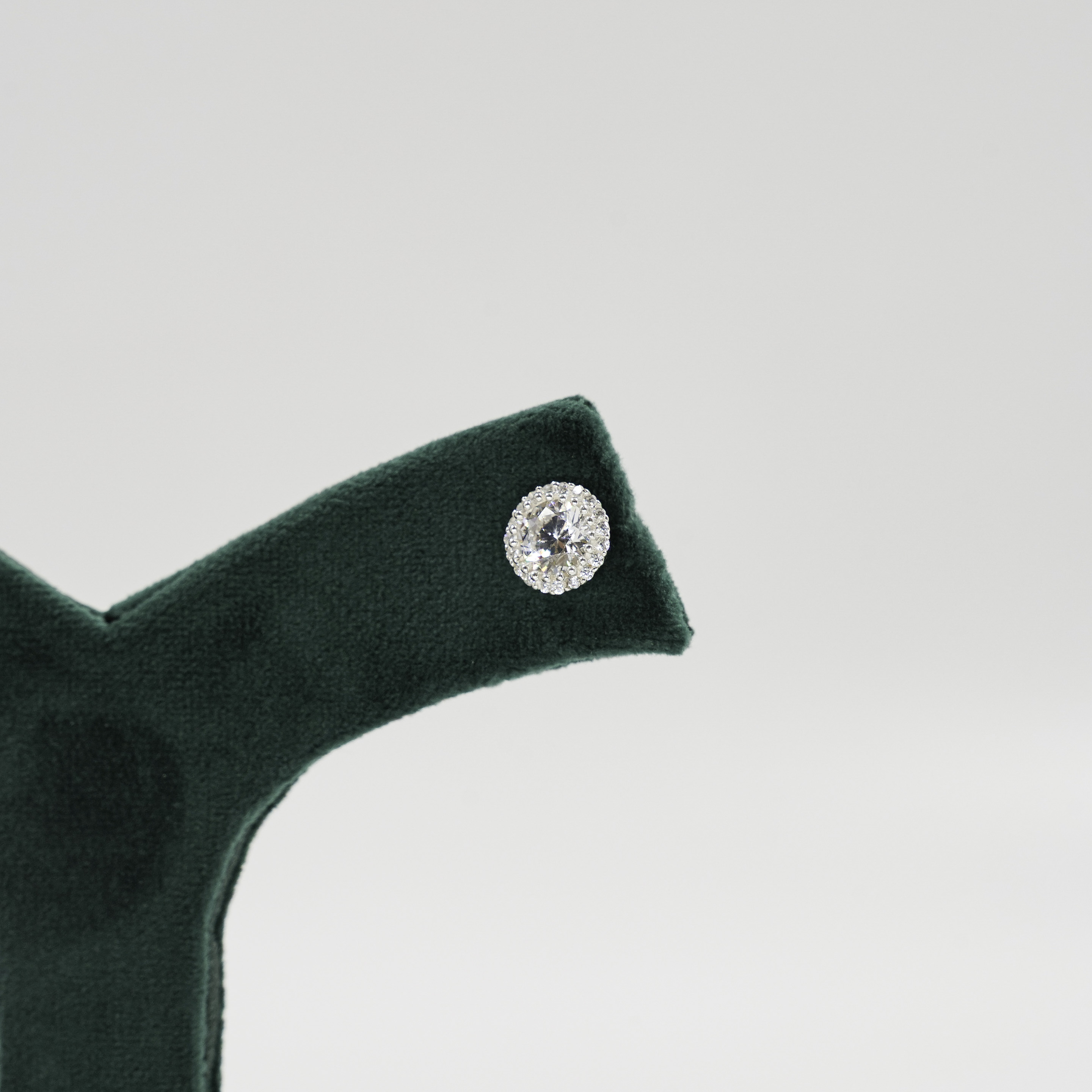 Elegant silver stud earrings with a geometric design, perfect for everyday wear or special occasions. Buy silver stud earrings from Raag Silver Jewellery in Hyderabad.